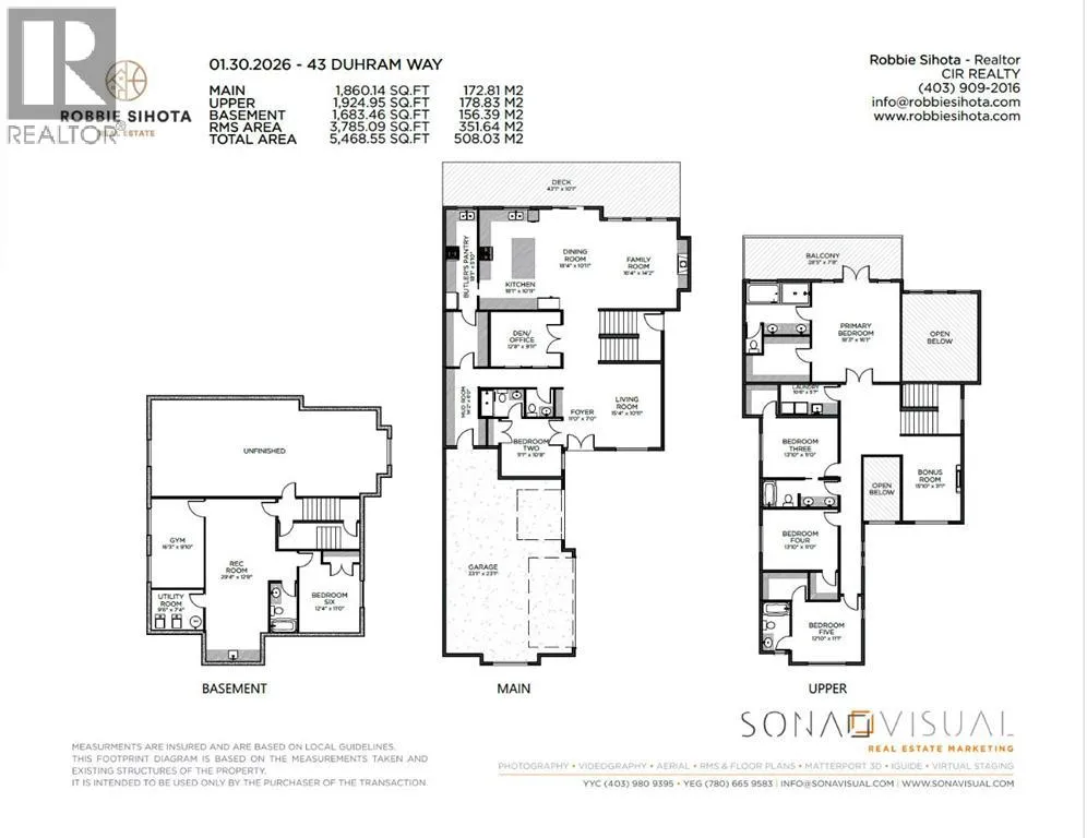 Welcome to 43 Duhram Way, an extraordinary custom residence offering just under 3,800 square feet of beautifully designed living space. Featuring four bedrooms upstairs, a spacious bonus room, and a full bedroom on the main level complete with its own ensuite, this home is ideally suited for multigenerational living or accommodating guests in comfort and privacy. Perfectly positioned on a premium lot with a walking path running alongside the property, the home enjoys added openness, increased natural light, and a rare sense of separation from neighbouring houses.From the moment you step into the spacious foyer, you are welcomed by refined architectural detail and impressive scale. The main level showcases a seamless open concept layout featuring a private den or office, a generously sized bedroom, and an elegant living area designed to impress. The living room is anchored by a dramatic tray ceiling with an open to below design and a stunning floor to ceiling fireplace that extends through the vertical space, creating a breathtaking focal point and true architectural presence. The chef inspired kitchen is complemented by a fully equipped spice kitchen, offering additional prep space and functionality while maintaining a clean and refined main kitchen presentation. Expansive windows fill the home with natural light.Step outside to one of the propertyâs most remarkable features, a sprawling double deck designed for elevated outdoor living. This expansive outdoor space offers exceptional versatility for entertaining, relaxing, and hosting on a grand scale, with the added benefit of the open pathway beside the home creating a more expansive and airy outdoor experience.Upstairs, luxury continues. The primary retreat features an elegant tray ceiling, private balcony, and spa inspired ensuite, creating a serene escape. Additional bedrooms provide generous accommodations for family or guests, while the vaulted ceiling in the bonus room adds impressive volume and charact er, making it the perfect secondary lounge or media space. Open to below architectural elements enhance the sense of airiness and connection throughout the upper level.The lower level presents a blank canvas with substantial square footage and includes a separate entrance, offering excellent potential for a future legal suite or private secondary living space, subject to municipal approval. Whether designed for extended family, multigenerational living, or added income potential, this feature adds long term flexibility and value.With six bedrooms above grade, multiple living zones, dedicated office space, a spice kitchen, oversized triple garage, separate entrance, and a premium side walking path location that enhances privacy and space, this home blends luxury, positioning, and long term opportunity in a way few properties can.A rare opportunity to own a home that stands out not only for its design, but for its superior lot placement and future potential. (id:27476)