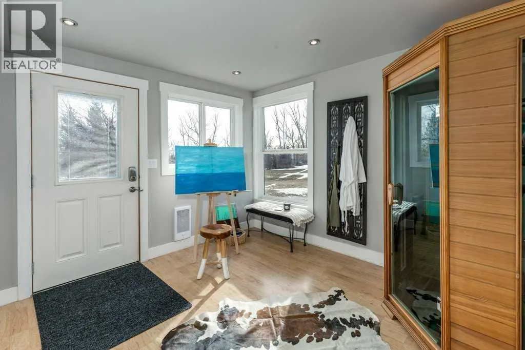 OPEN HOUSE SUNDAY, FEB 15 1-3 & MONDAY, FEB 16 3-5 || Experience the best of acreage living just minutes from Calgary city limits on this picturesque 4.28-acre property featuring a beautifully updated home full of character. The unique split-level design offers three bedrooms on the main level, including a spacious primary suite complete with a luxurious ensuite showcasing heated floors, a soaker tub, double sinks, and abundant built-in storage. Vaulted ceilings and hardwood flooring enhance the main living areas, while the sunken family room creates a warm and inviting space with a gas fireplace and direct access to the outdoors.The nicely updated kitchen features stainless steel appliances, ample prep space, and flows seamlessly into a stunning dining areaâideal for entertaining. Step outside to enjoy morning sunrises and evening sunsets from two spacious decks overlooking a park-like setting with mature landscaping and beautifully treed grounds. The property features mature apple trees, a fire pit for cozy gatherings, and expansive green space to relax, play, or entertain, offering the perfect blend of natural beauty and outdoor living.The lower level offers exceptional flexibility with a large flex room currently used as a home gym, office area, studio/sauna space, laundry, and a 3-piece bathroom. One level down, enjoy the ultimate family movie and recreation area complete with a cozy wood-burning stoveâan ideal retreat for quiet evenings or family movie nights.Perfect for horse enthusiasts or hobby farmers, the property includes a fenced paddock with shelter and automatic waterer, a round pen, and room to grow. A double detached garage is conveniently located near the home, complemented by an impressive 1,943 sq ft heated shop with office spaceâideal for hobbies, storage, or a home-based business. An idyllic tree-lined driveway and a large garden plot further enhance the peaceful, private setting.Located minutes from The Golf Club at Delacour Crossing, this move-in-ready country home offers exceptional value. Delacour is more than just a quiet rural communityâitâs a place where people connect. The Delacour Store serves as a local hub for everyday essentials and friendly conversations, while the Delacour Pony Club and Community Hall bring residents together through youth programs, events, gatherings, and celebrations that foster a strong sense of community. Recent updates include a new roof, fascia, and eavestroughs (2025). A rare opportunity to enjoy space, privacy, and refined acreage living so close to the city. (id:27476)