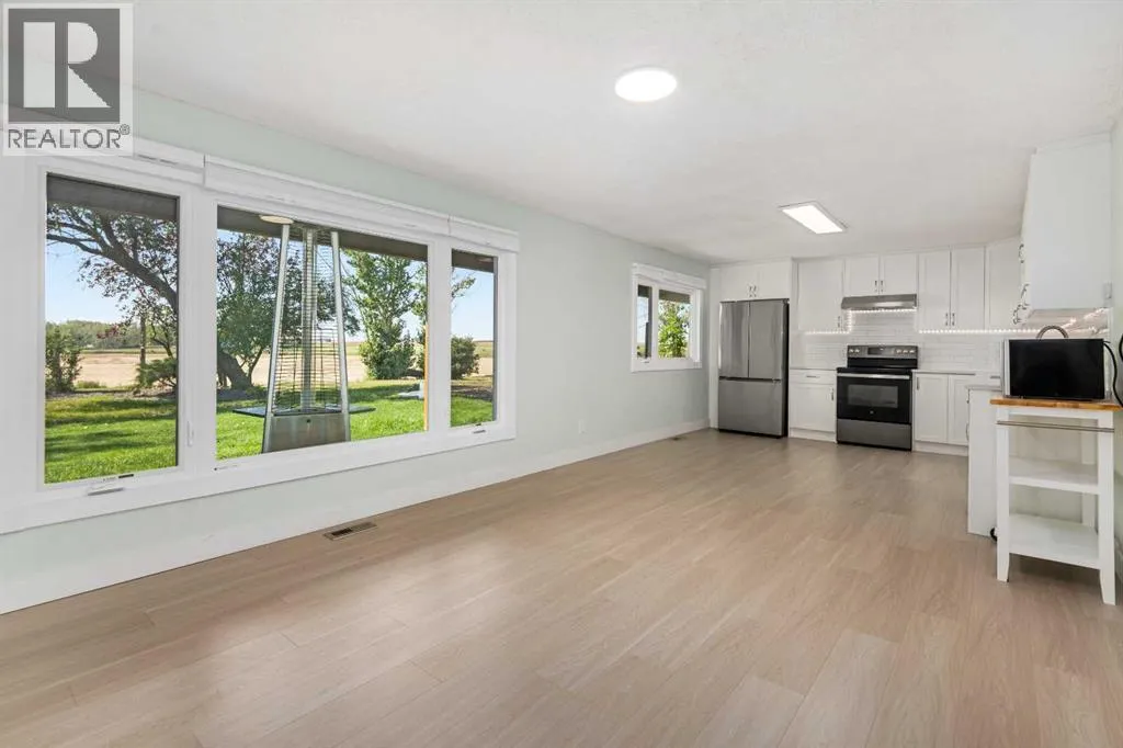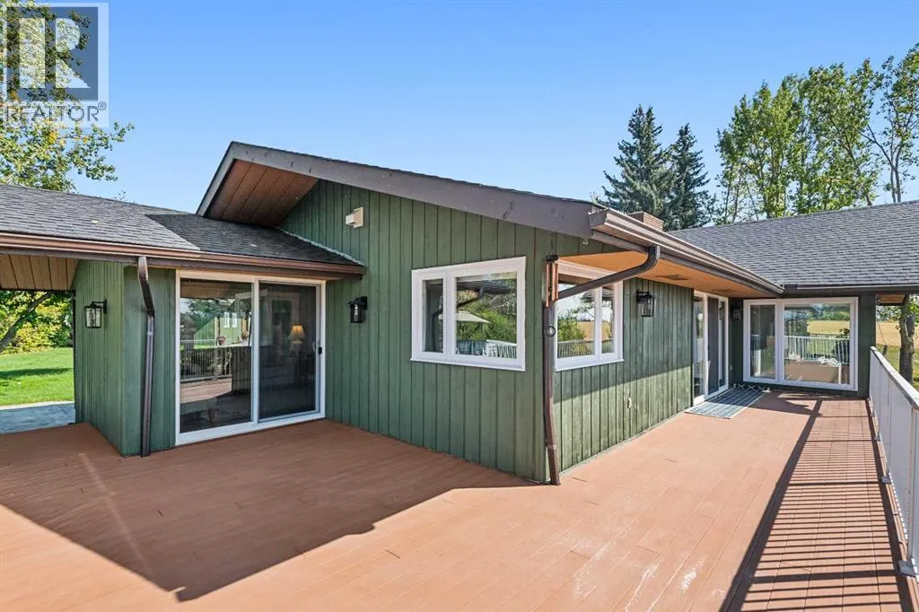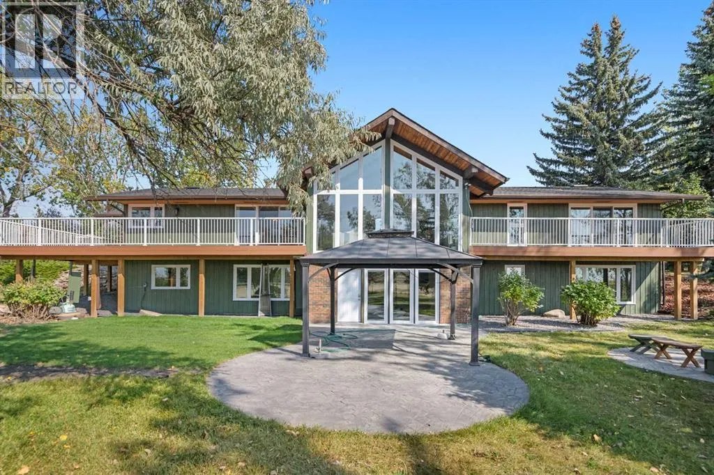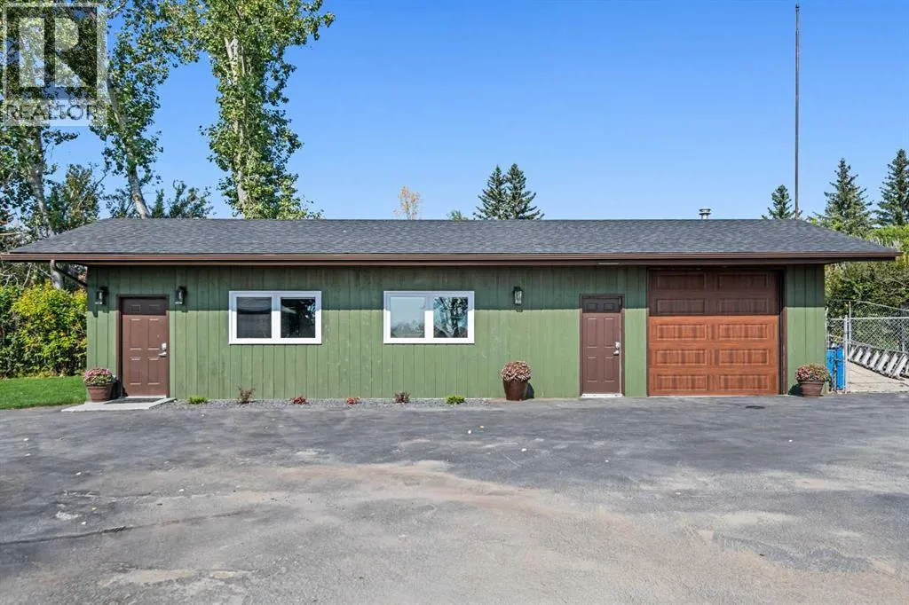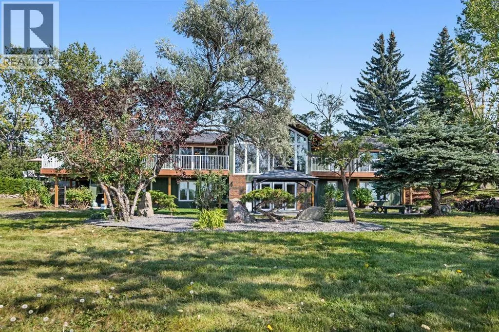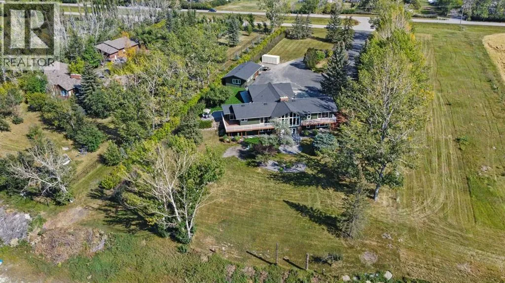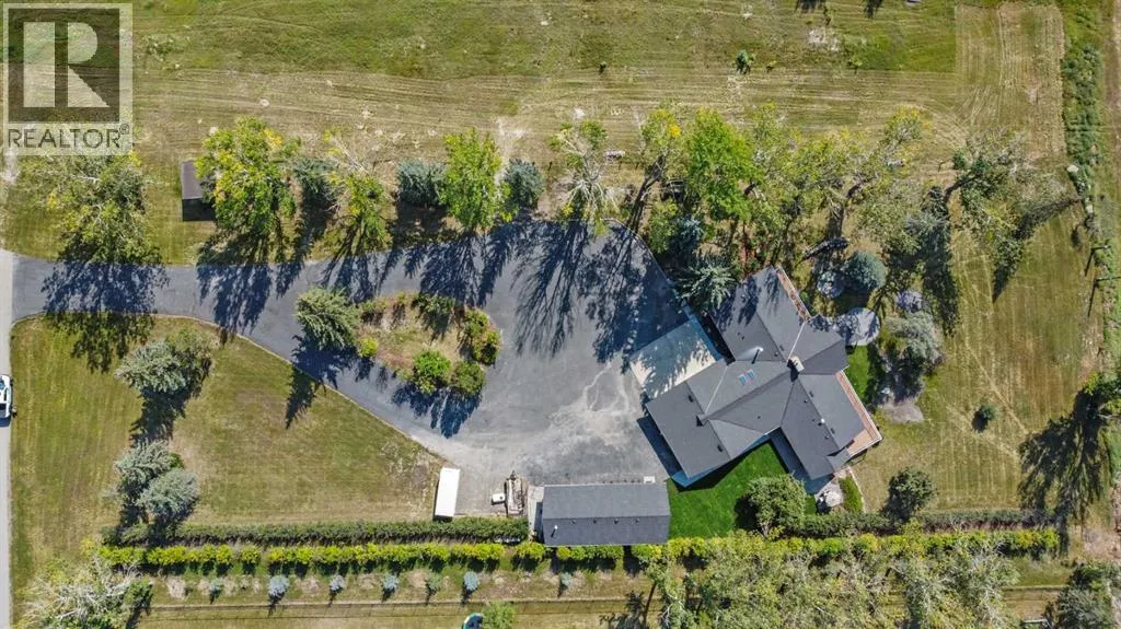 This is an exceptional home that we are proud to present that has outstanding quality product throughout which you can just relax and enjoy for many years to come! Located in Exclusive Georgian Estates on just over 2 acres and offers you so much privacy and incredible views, NE of Calgary off of Country Hills Blvd and under 4 km to Stoney Trail. This is a west backing walkout bungalow with a newly created 3 Bedroom basement suite with separate entry (illegal), or use for present or extended family. It has a triple attached garage, and also has a newly renovated separate shop/garage that has a new office and gym space, and could also be developed into a separate suite by connecting roughed in plumbing and adding a sewer line to the septic system, with a heated single garage and work bench. The bungalow main level has 3 bedrooms, 2 1/2 bathrooms, central living room with high beam vaulted ceiling that provides an incredible west facing view. The primary bedroom also has a separate sliding door to the deck. This leads into the dining room and then the updated kitchen with a modern flair and newer appliances, plus a sink with a great view! There is a casual family room off of the kitchen that could also be a casual eating area. Also a large laundry room, and several exits. The lower walkout level also has 3 bedrooms, bathroom, large kitchen and dining area, and also a large central living room with walkout access to the backyard. A newer stacker laundry unit is in the mechanical room, easy access. There is a large gazebo out back, and a huge yard area, nicely maintained. A long list of upgraded product includes: 2023: new 2,000 gallon septic tank, carpet. And in 2024: Triple Pane Windows; Asphalt Shingles, Full Width Deck installed from the footings up; Shop reno'd with a new furnace, an office and open area plus a single bay garage; Concrete Walkway and Front Entry; New Blinds; New Insulated Garage Doors; Exterior Lights; Tile; New Kitchen Downstairs; Appliances with 2 fridges, oven, 2 washer/dryers, 2 dishwashers, landscaping, carpet, interior and exterior painting, and driveway maintenance. In 2025: 2 new hot water tanks; reinforced eaves troughs and new downspouts. Lot's of storage in the basement and also a separate storage area in the attached garage. Two furnaces, one for each level. Parking? Definitely not a shortage here. A long paved driveway with a wide area for parking a lot of shiny vehicles. There is also a side RV parking area with a 220V plug in. There is a water co-op with an annual fee of $1600. The pictures are great but this really is a must see home. Come take a look! (id:27476)