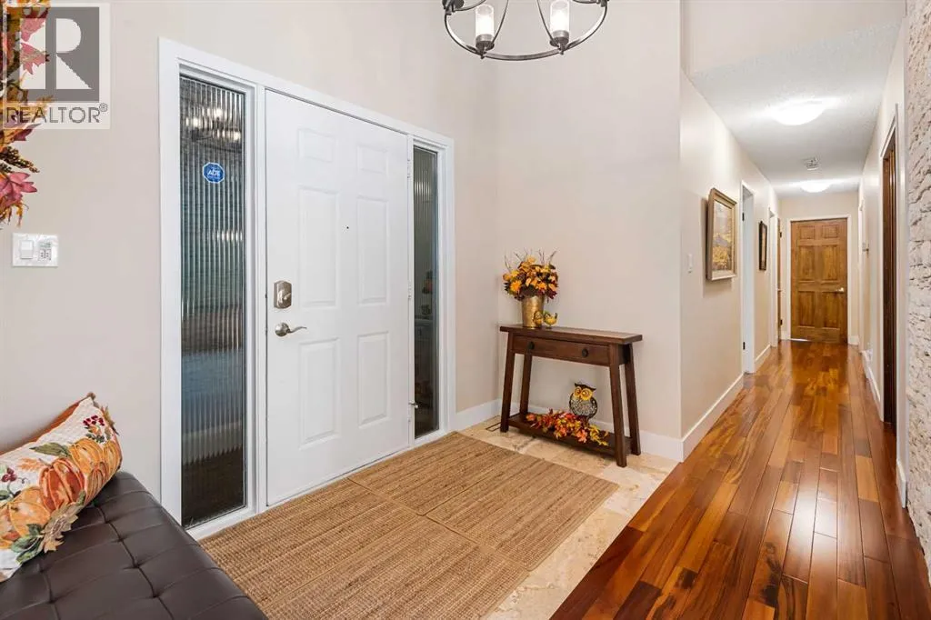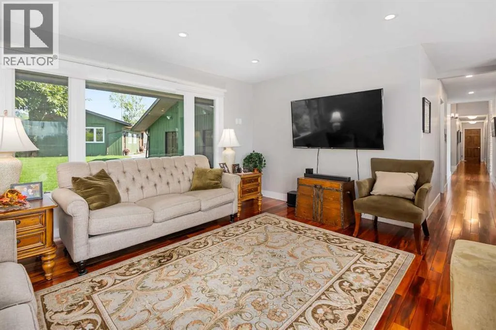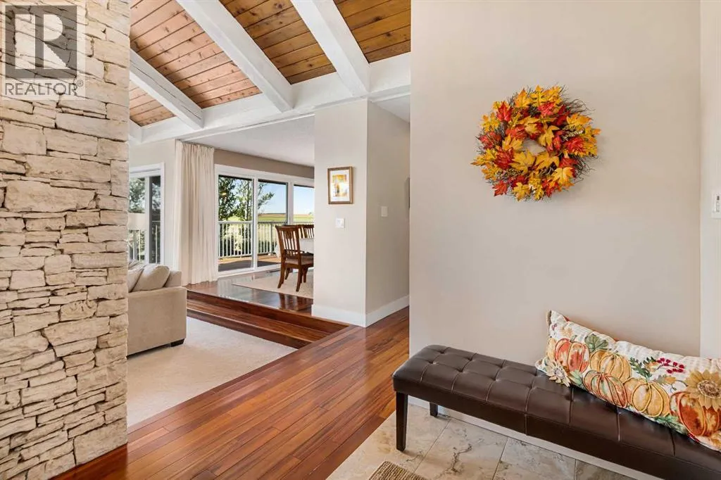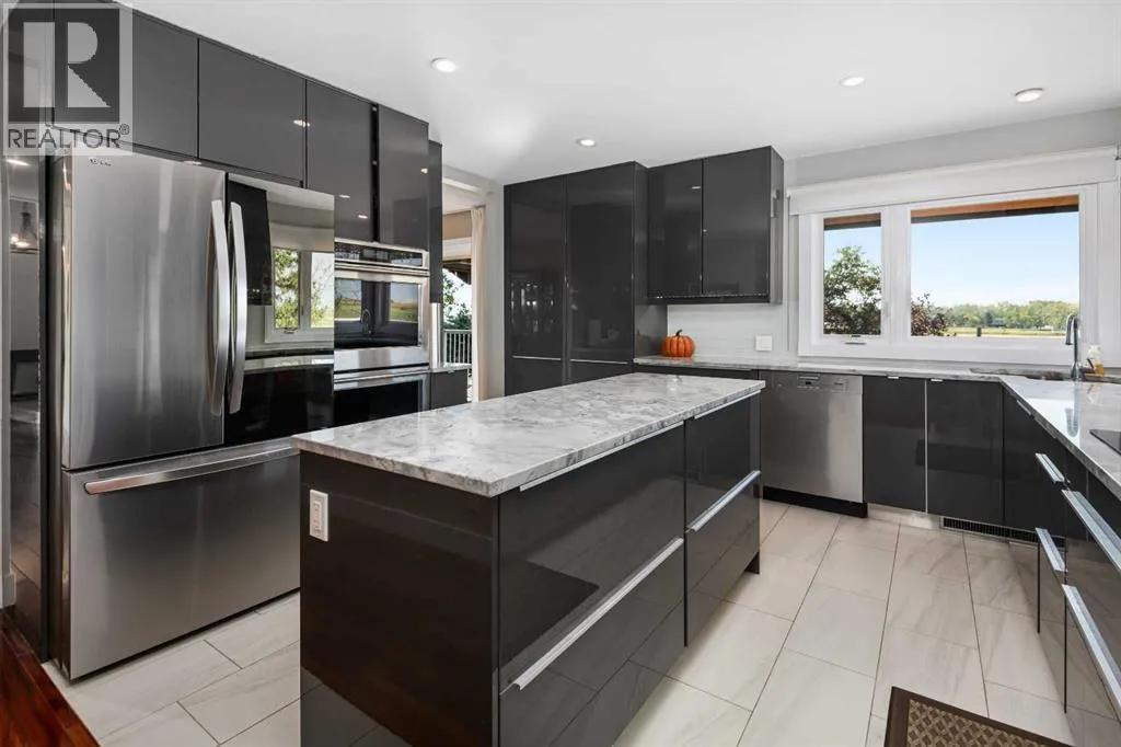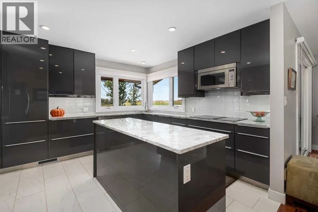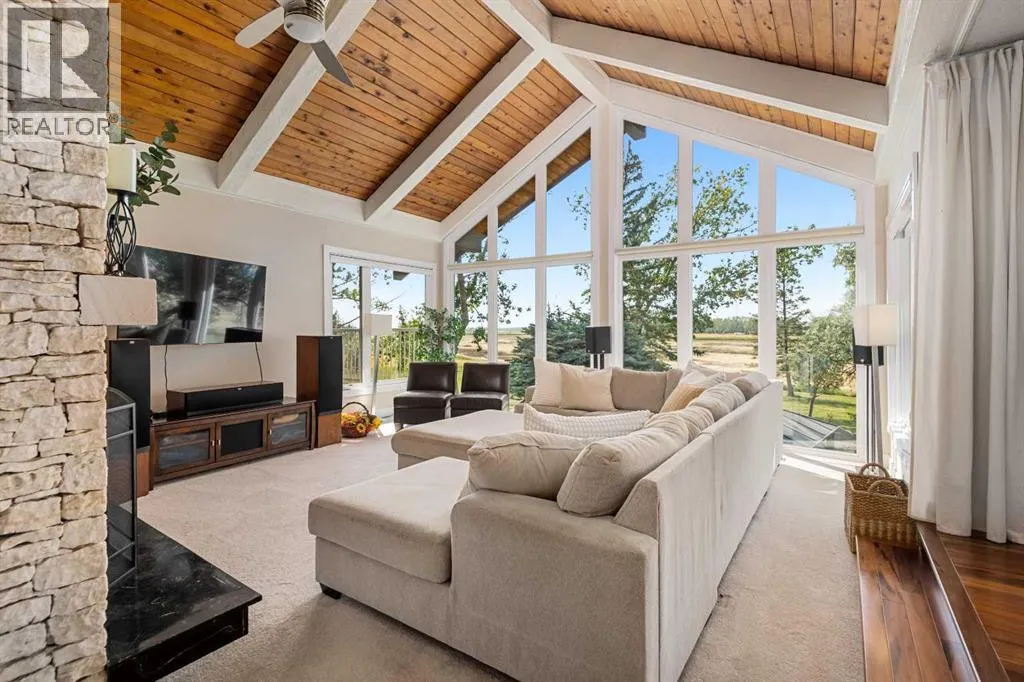 This is an exceptional home that we are proud to present that has outstanding quality product throughout which you can just relax and enjoy for many years to come! Located in Exclusive Georgian Estates on just over 2 acres and offers you so much privacy and incredible views, NE of Calgary off of Country Hills Blvd and under 4 km to Stoney Trail. This is a west backing walkout bungalow with a newly created 3 Bedroom basement suite with separate entry (illegal), or use for present or extended family. It has a triple attached garage, and also has a newly renovated separate shop/garage that has a new office and gym space, and could also be developed into a separate suite by connecting roughed in plumbing and adding a sewer line to the septic system, with a heated single garage and work bench. The bungalow main level has 3 bedrooms, 2 1/2 bathrooms, central living room with high beam vaulted ceiling that provides an incredible west facing view. The primary bedroom also has a separate sliding door to the deck. This leads into the dining room and then the updated kitchen with a modern flair and newer appliances, plus a sink with a great view! There is a casual family room off of the kitchen that could also be a casual eating area. Also a large laundry room, and several exits. The lower walkout level also has 3 bedrooms, bathroom, large kitchen and dining area, and also a large central living room with walkout access to the backyard. A newer stacker laundry unit is in the mechanical room, easy access. There is a large gazebo out back, and a huge yard area, nicely maintained. A long list of upgraded product includes: 2023: new 2,000 gallon septic tank, carpet. And in 2024: Triple Pane Windows; Asphalt Shingles, Full Width Deck installed from the footings up; Shop reno'd with a new furnace, an office and open area plus a single bay garage; Concrete Walkway and Front Entry; New Blinds; New Insulated Garage Doors; Exterior Lights; Tile; New Kitchen Downstairs; Appliances with 2 fridges, oven, 2 washer/dryers, 2 dishwashers, landscaping, carpet, interior and exterior painting, and driveway maintenance. In 2025: 2 new hot water tanks; reinforced eaves troughs and new downspouts. Lot's of storage in the basement and also a separate storage area in the attached garage. Two furnaces, one for each level. Parking? Definitely not a shortage here. A long paved driveway with a wide area for parking a lot of shiny vehicles. There is also a side RV parking area with a 220V plug in. There is a water co-op with an annual fee of $1600. The pictures are great but this really is a must see home. Come take a look! (id:27476)