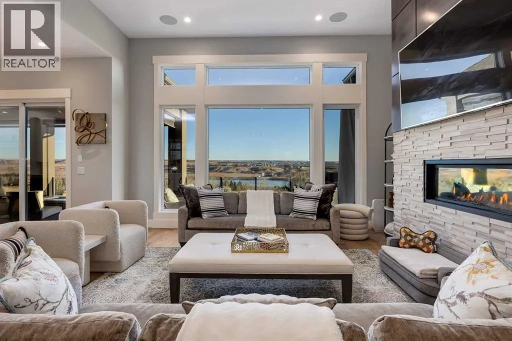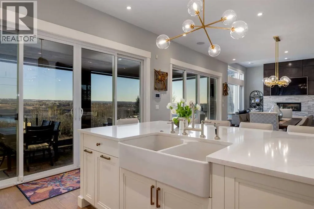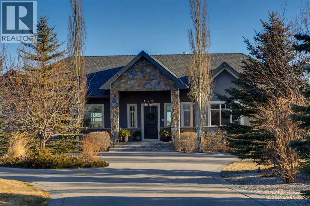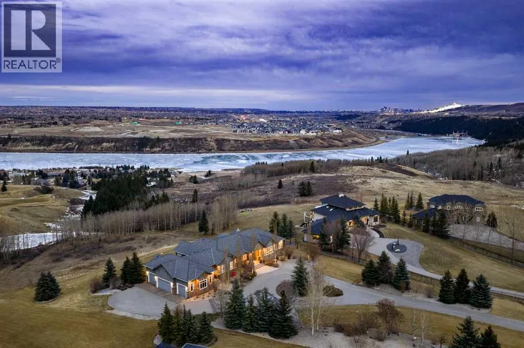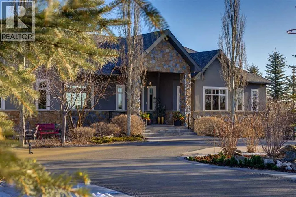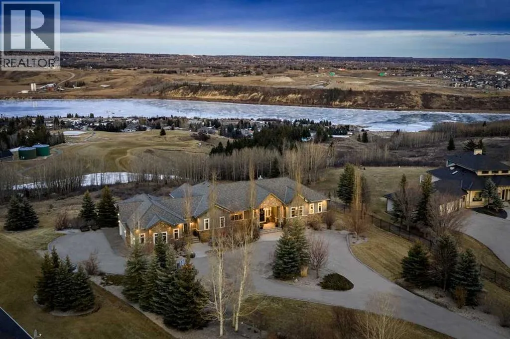 Set high on the escarpment in North Springbank is the most beautiful bungalow with unobstructed views of the city skyline, Bow River, the Springbank Links golf course, the mountains to the West and the breathtaking valley set below. Extensively renovated in 2022 and 2024, this property features over 2800 SF on the main level, over 400 SF on the outdoor living room deck, and another 2400 SF on the lower-level walk-out. The designer kitchen is gorgeous and has a beautiful butlerâs pantry with a full wet bar and wine fridge. The living room is open to the dining room and kitchen areas and overlooks the stupendous views. The primary suite encompasses the entire SE wing of the home and has the most luxurious ensuite showcasing a gold framed shower, freestanding bathtub and waterfall vanities. The lower level features a games room, media area, home gym and three large bedrooms, each with their own ensuites and walk-in closets. The yard is professionally landscaped with mature trees and extensive garden areas. The oversized four car garage features a second mud room. This is a very special property in a unique location at the end of a private cul-de-sac and is within 10 minutes to local and private schools, shopping and recreational facilities. (id:27476)