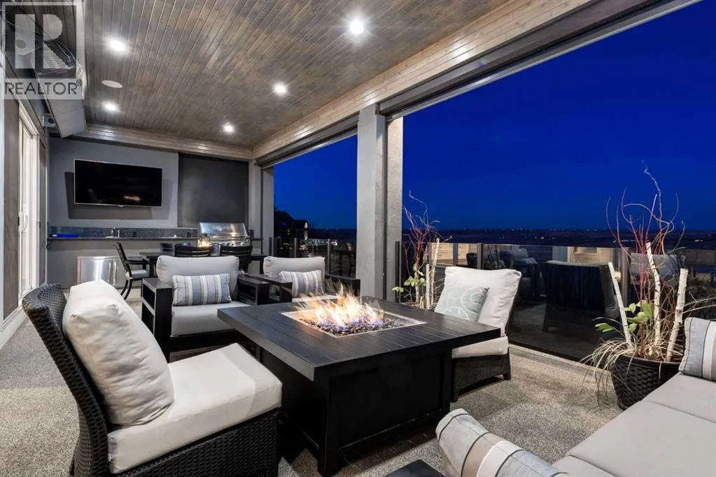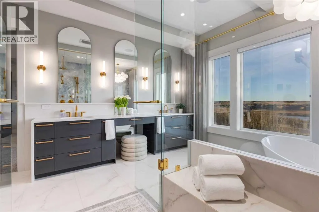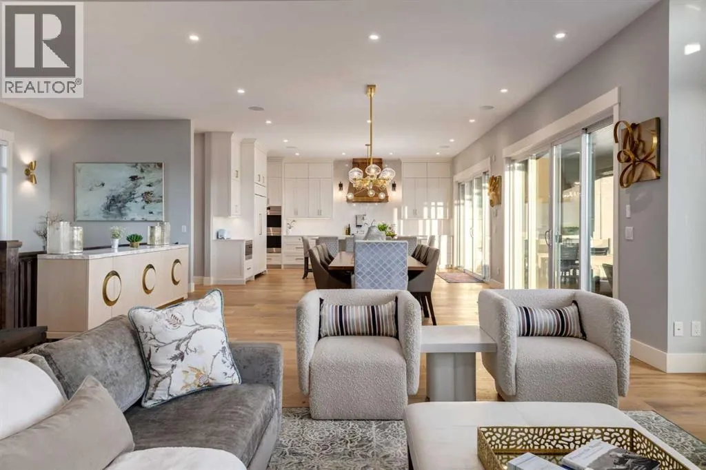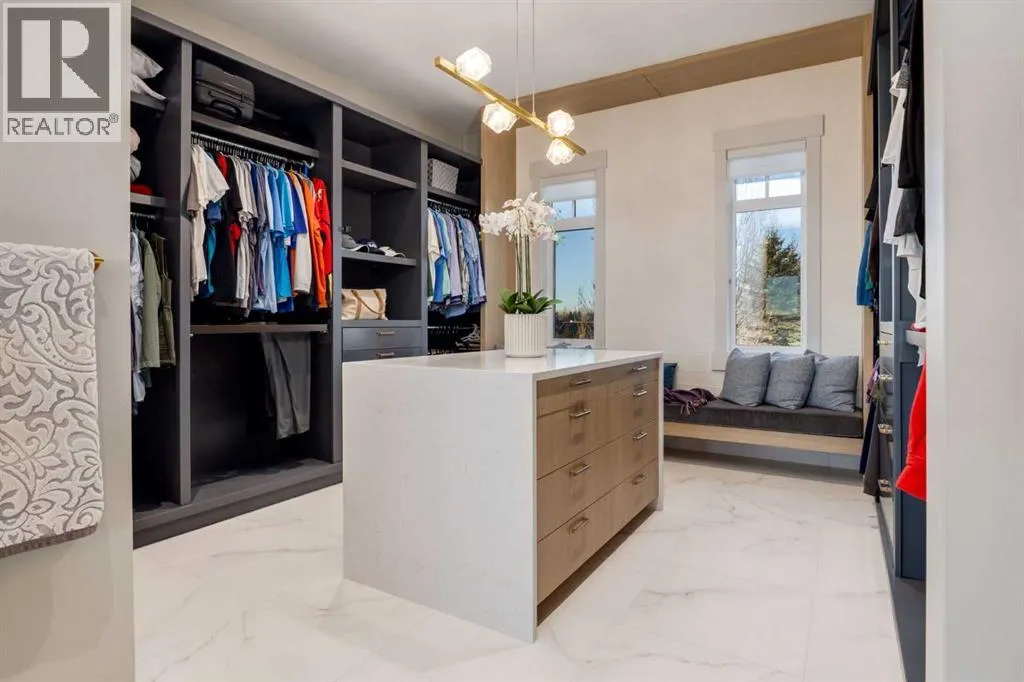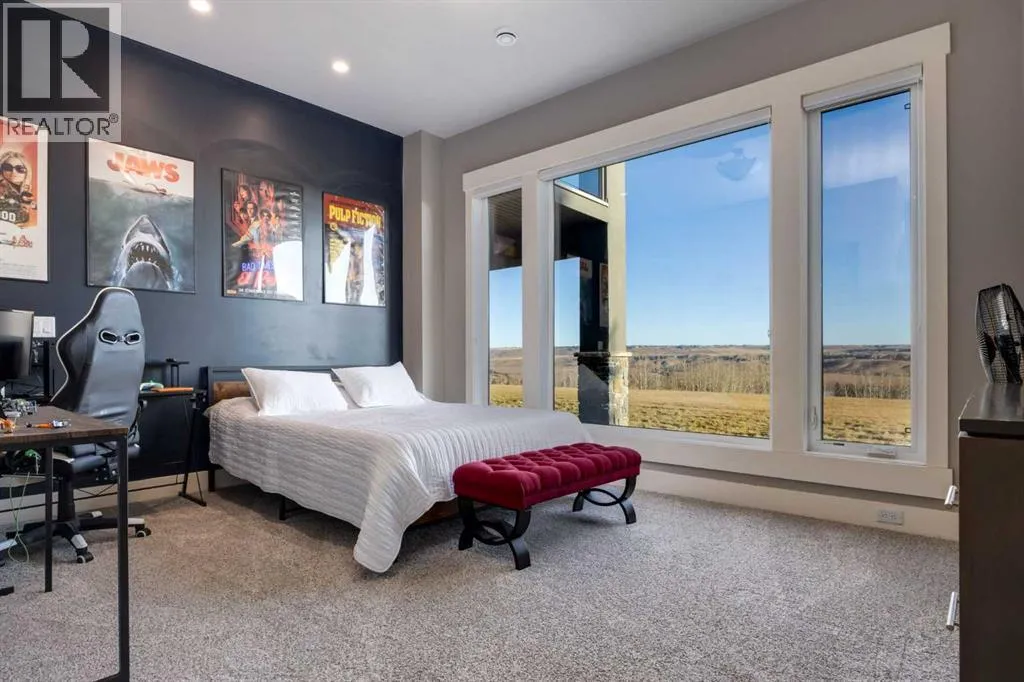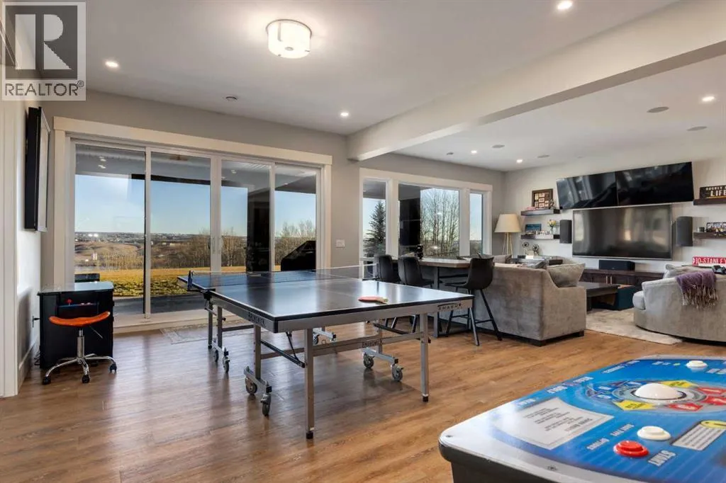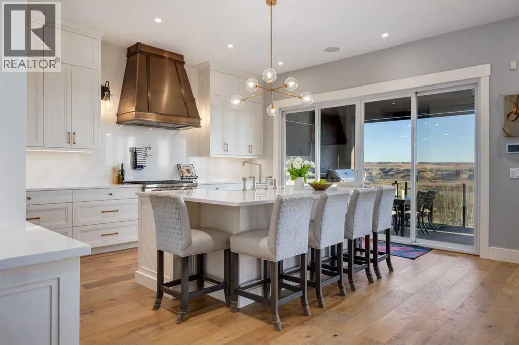 Set high on the escarpment in North Springbank is the most beautiful bungalow with unobstructed views of the city skyline, Bow River, the Springbank Links golf course, the mountains to the West and the breathtaking valley set below. Extensively renovated in 2022 and 2024, this property features over 2800 SF on the main level, over 400 SF on the outdoor living room deck, and another 2400 SF on the lower-level walk-out. The designer kitchen is gorgeous and has a beautiful butlerâs pantry with a full wet bar and wine fridge. The living room is open to the dining room and kitchen areas and overlooks the stupendous views. The primary suite encompasses the entire SE wing of the home and has the most luxurious ensuite showcasing a gold framed shower, freestanding bathtub and waterfall vanities. The lower level features a games room, media area, home gym and three large bedrooms, each with their own ensuites and walk-in closets. The yard is professionally landscaped with mature trees and extensive garden areas. The oversized four car garage features a second mud room. This is a very special property in a unique location at the end of a private cul-de-sac and is within 10 minutes to local and private schools, shopping and recreational facilities. (id:27476)