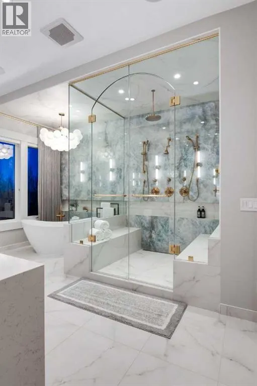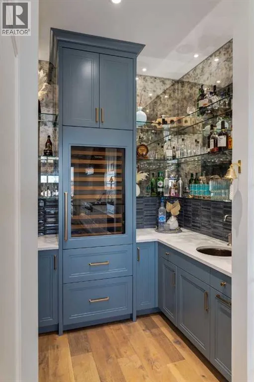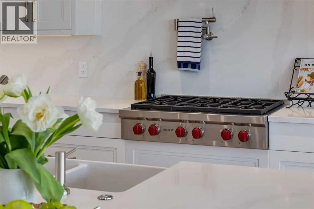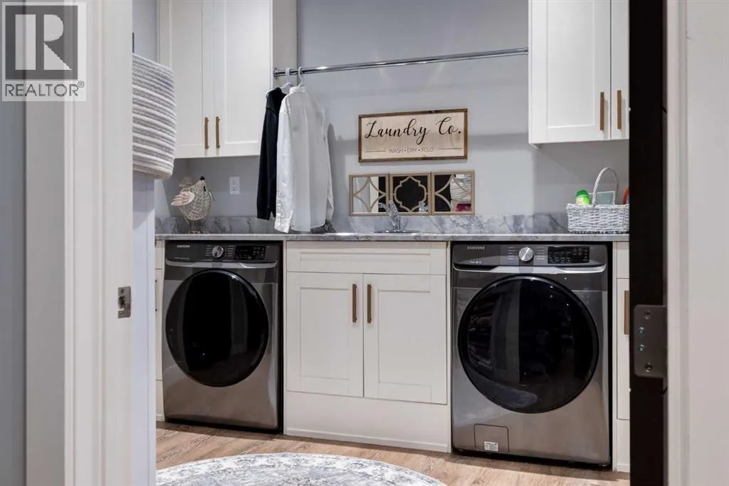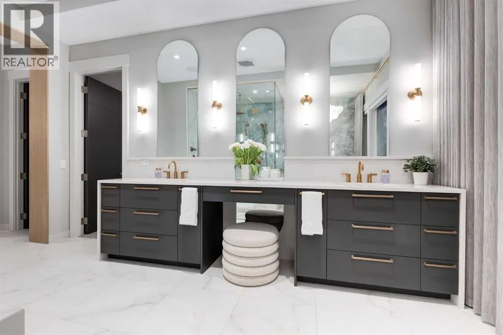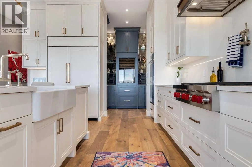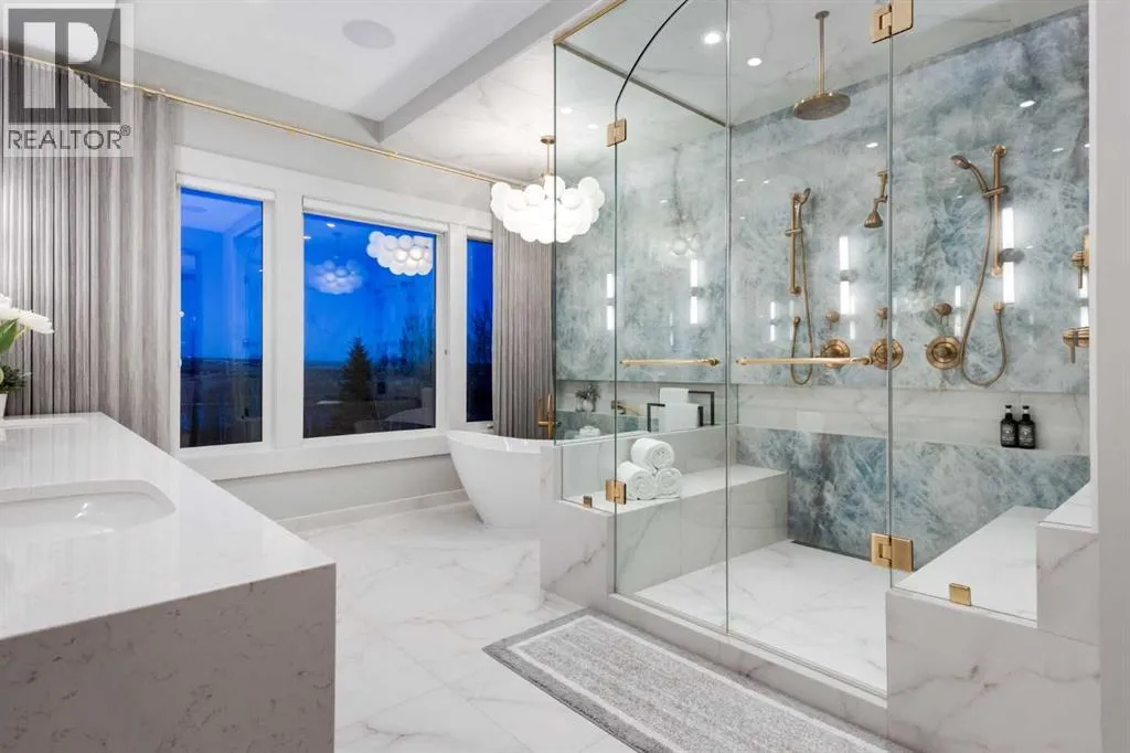 Set high on the escarpment in North Springbank is the most beautiful bungalow with unobstructed views of the city skyline, Bow River, the Springbank Links golf course, the mountains to the West and the breathtaking valley set below. Extensively renovated in 2022 and 2024, this property features over 2800 SF on the main level, over 400 SF on the outdoor living room deck, and another 2400 SF on the lower-level walk-out. The designer kitchen is gorgeous and has a beautiful butlerâs pantry with a full wet bar and wine fridge. The living room is open to the dining room and kitchen areas and overlooks the stupendous views. The primary suite encompasses the entire SE wing of the home and has the most luxurious ensuite showcasing a gold framed shower, freestanding bathtub and waterfall vanities. The lower level features a games room, media area, home gym and three large bedrooms, each with their own ensuites and walk-in closets. The yard is professionally landscaped with mature trees and extensive garden areas. The oversized four car garage features a second mud room. This is a very special property in a unique location at the end of a private cul-de-sac and is within 10 minutes to local and private schools, shopping and recreational facilities. (id:27476)