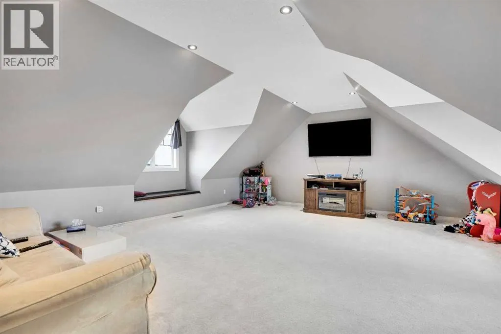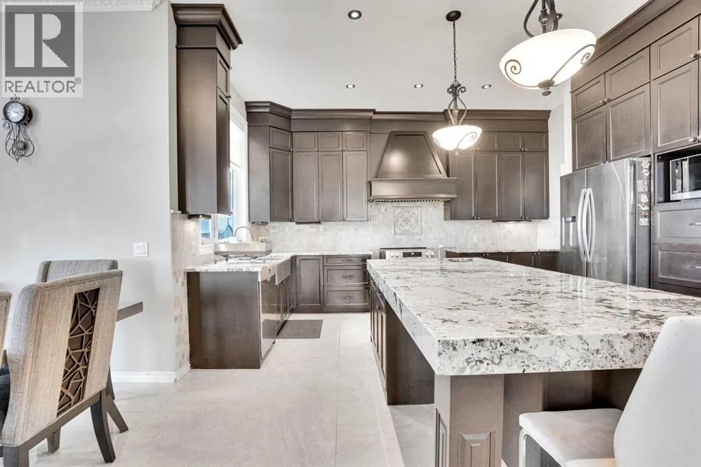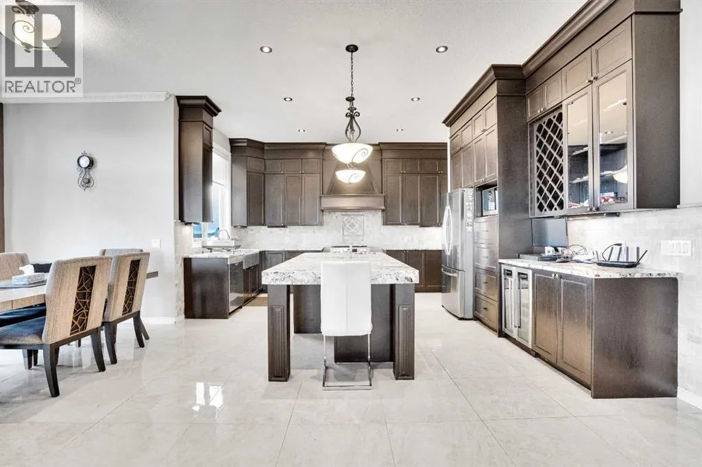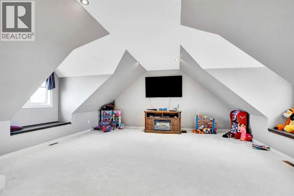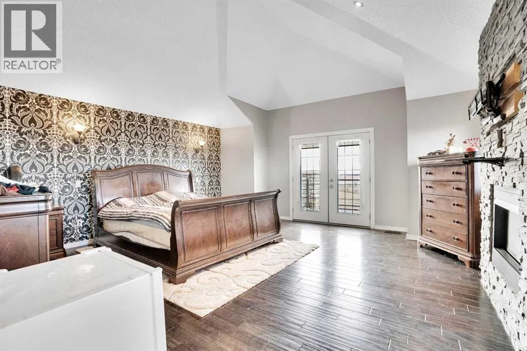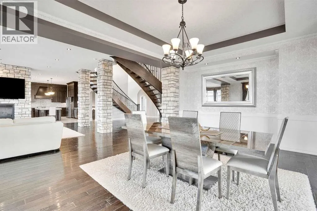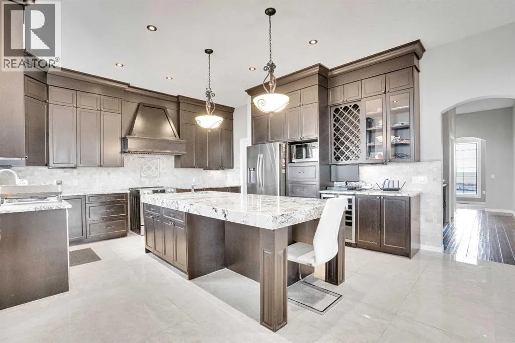 ?Welcome to this extraordinary custom-built estate offering over 7,000 sq ft of developed living space across three levels, including 4,682 sq ft above grade, all set on a beautifully positioned 4-acre parcel with a private gated driveway and a 4-car garage. Combining luxury, scale, and serenity, this remarkable property delivers peaceful country living just minutes from Calgary and Boulder Creek Golf Course. A grand double staircase and soaring open-to-below ceilings create a stunning first impression in the expansive foyer. The open-concept main floor showcases rich hardwood flooring, oversized windows framing panoramic views, and seamless flow designed for both entertaining and everyday living.? The chef-inspired kitchen features full-height cabinetry, stainless steel appliances, granite countertops, a hidden built-in range hood, wine cooler, built-in wine rack, and a large centre island with bar seating and bar sink. A walkthrough pantry connects directly to the mudroom and main-floor laundry for exceptional functionality. The bright dining nook and formal dining room both open through French doors to the massive north-facing deck, creating effortless indoor-outdoor living. The inviting living room is anchored by a double-sided gas fireplace shared with the kitchen, adding warmth and ambiance. A main-level office/den provides the perfect work-from-home space.? Upstairs, youâll find three spacious bedrooms and a large family room with lofted ceilings that enhance the homeâs grandeur. The primary suite is a private retreat featuring a west-facing balcony with mountain views. The luxurious 5-piece ensuite offers a deep soaking tub set against a wall of windows, a tiled steam shower with bench seating, dual vanities, a private water closet, and a custom walk-in closet with built-in organization. Bedrooms two and three share a well-designed 5-piece bathroom with dual sinks and a separate shower/tub and toilet areaâideal for family living.? The bright walkout basement offers an additional 2,347 sq ft of space, is PAINT READY and fully developed featuring a recreation area, home theatre, gym, or additional bedrooms, 2 full bathrooms.? This one-of-a-kind estate blends breathtaking views, expansive living spaces, and refined finishes in a highly desirable location just minutes from the city. A rare opportunity to own a truly remarkable home that must be experienced to be fully appreciated. (id:27476)