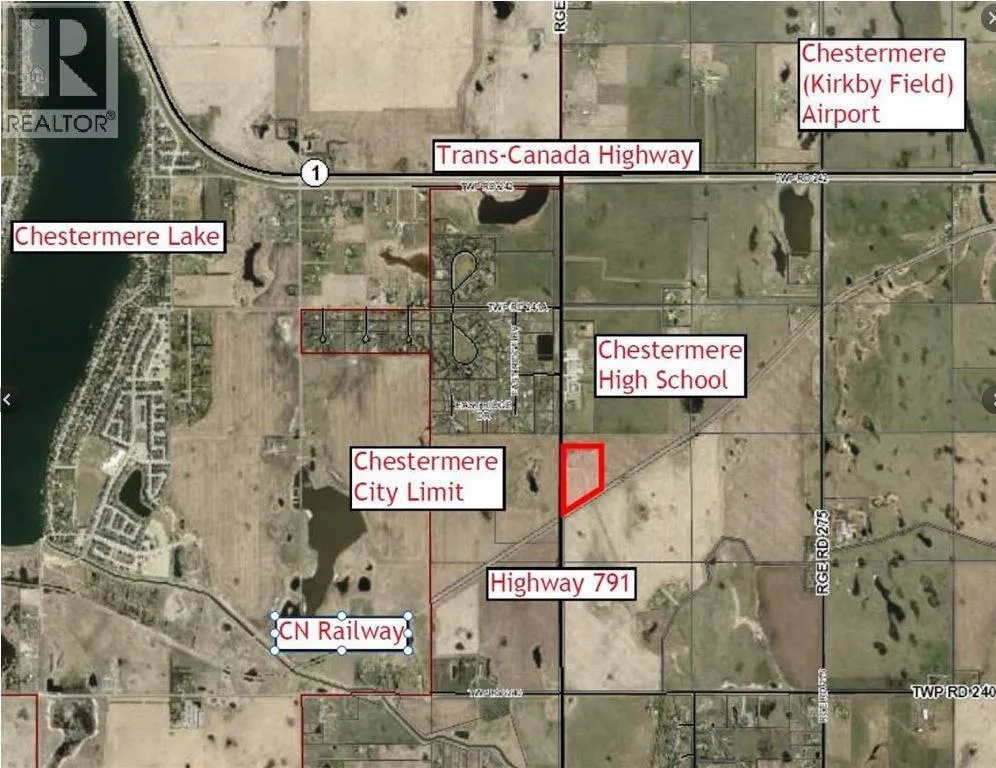 CENTRAL TO EXISTING INFRASTRUCTURE, HIGHWAYS, and future growth. Located adjacent to CHESTERMERE HIGH SCHOOL - Less than 1km east of Chestermere - 1.7km south of Trans-Canada Highway - 6.5km east of Calgary - and 12.5km west of the future De Havilland Field. Access to this land is DIRECT FROM HIGHWAY 791. There is bush along the north boundary and a rail line along the southeast. There are 19.99 ACRES of mostly farmed land. The clearing for the old homestead and farmyard is ideal for immediate use. There is a WIDE RANGE OF LAND USE OPTIONS (subject to approvals). This is a unique opertunity while Chestermere is growing and development in this area is increasing. (id:27476)