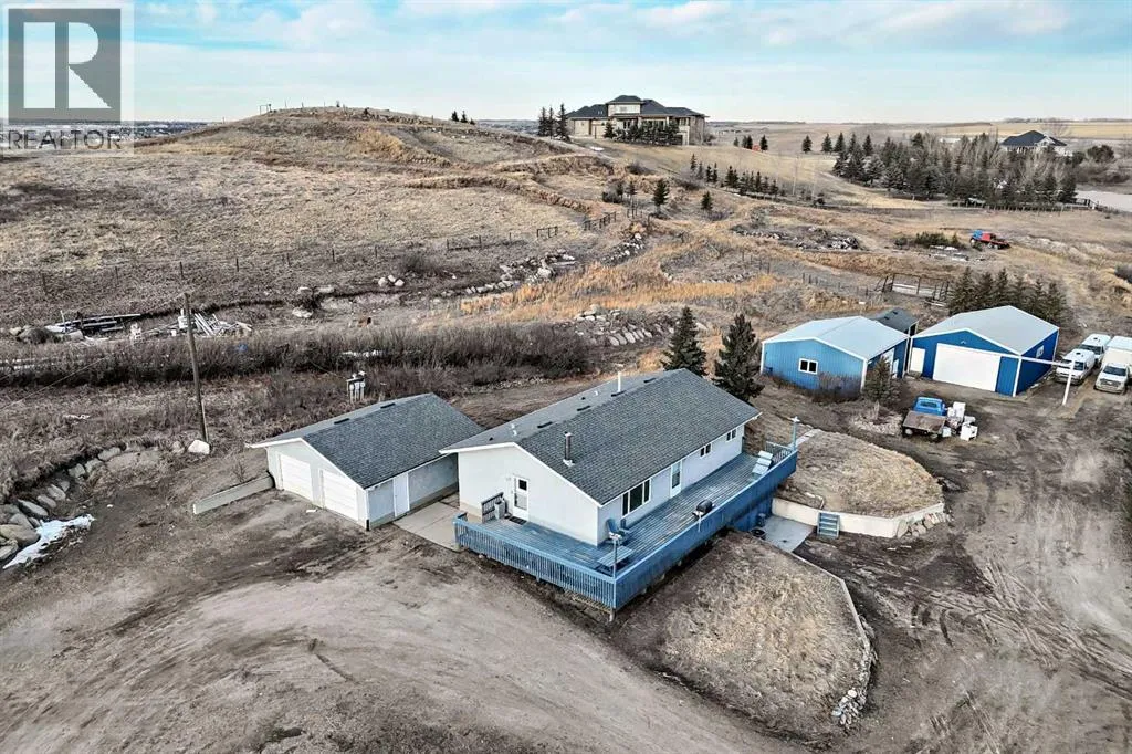This recently renovated property, featuring over $100K in upgrades, sits on 9.75 acres of private land, a rare find in this highly sought after area. Perfect for investors, developers, or buyers seeking privacy and space, this acreage offers endless possibilities. Large parcels like this rarely come to market.The property includes a main dwelling, a detached 2-car garage adjacent to the home, and workshops at the rear, providing ample space for vehicles, equipment, or hobbies. Inside, youâll find newly finished kitchens, fully renovated bathrooms, new vinyl flooring, fresh paint, and modern pot lighting throughout.The basement features a 1-bedroom illegal suite, complete with a fully equipped kitchen and renovations consistent with the main home, ideal for rental income or extended family.With R-RUR zoning, this property offers flexibility for a variety of uses. There is the potential to subdivide the property into four parcels, subject to approval from Rocky View County, making it an attractive opportunity for developers. The expansive land also provides endless opportunities for parking, storage, or outdoor projects.Location highlights:Quick access to QE2 and Deerfoot Trail for easy commuting to Calgary and Airdrie7 minutes to Costco, 6 minutes to CrossIron Mills, and 16 minutes to YYC AirportDonât miss this rare chance to own a fully updated, versatile property with space, privacy, and long term potential in one package. (id:27476)