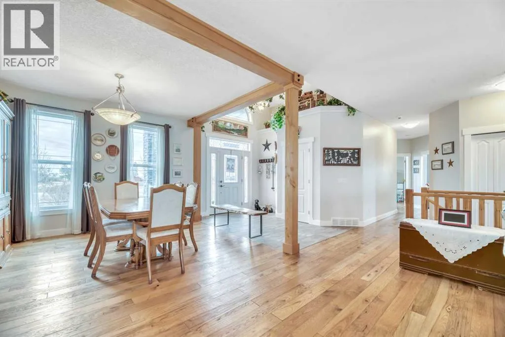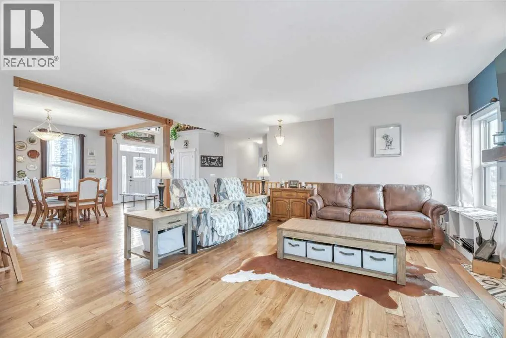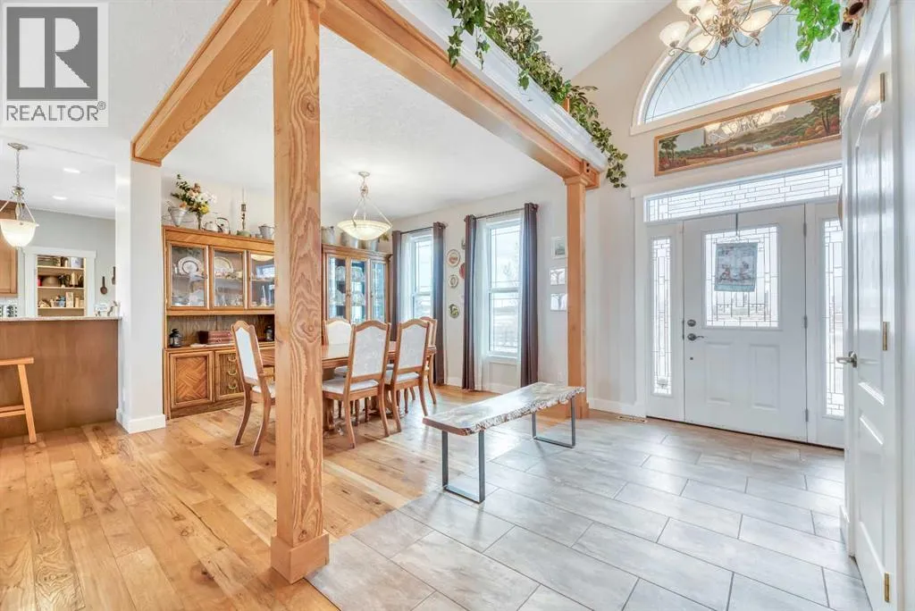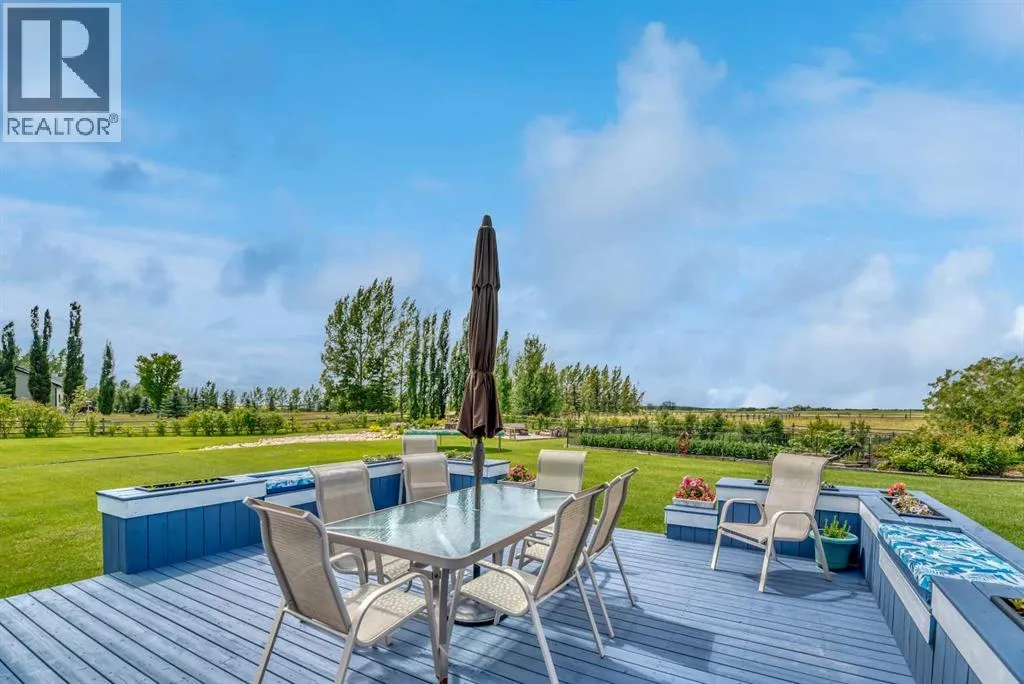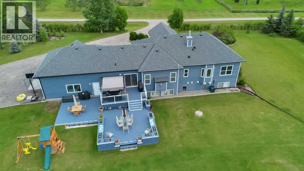 The acreage buyers wait years for, has just hit the market!Located in one of the most sought-after country residential pockets, you are only 4 minutes to Calgary and 3 minutes to Stoney Trail â the rare balance of peaceful living without sacrificing convenience.This fully developed bungalow offers 5 bedrooms and a layout designed to feel open, bright, and effortless. 9' ceilings and solid timber beam details create warmth the moment you walk in. The custom updated kitchen anchors the home with quartz counters, maple cabinetry, newer appliances, and a butlerâs pantry that actually works for real life â storage, prep space, and organization where you need it. The living area gathers around the gas fireplace while large windows frame the mountain views.The primary retreat is spacious and private with built-in closet organizers and a spa-inspired ensuite featuring a large walk-in shower and double sinks. Downstairs, the finished basement adds a massive family room, wet bar, full bathroom, and flexible space for guests, teens, or multi-generational living.Step outside and the property becomes something special.A massive two-level back deck with glass railing and built-in planters overlooks the manicured yard, mature trees, water feature, gardens, and firepit area. The property is perimeter fenced with classic 3-rail fencing and cross-fenced for animals, complete with shelter and a chicken coop. A fenced dog run and kennel keeps pets secure while still giving them space.For hobbyists, business owners, or horse enthusiasts â the outbuildings deliver. The impressive shop features packed gravel with interlocking floor frames for durability and function, plus a rear barn with two stalls and tack room creating true year-round versatility.Strong well water, upgraded mechanical, and careful maintenance mean this home is ready to be enjoyed, not worked on.This is the rare acreage where location, usability, and lifestyle all meet.Not just land.A place you build a life around. (id:27476)