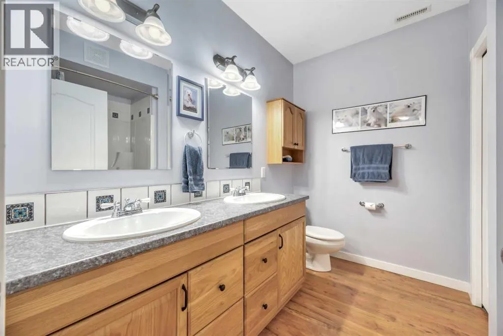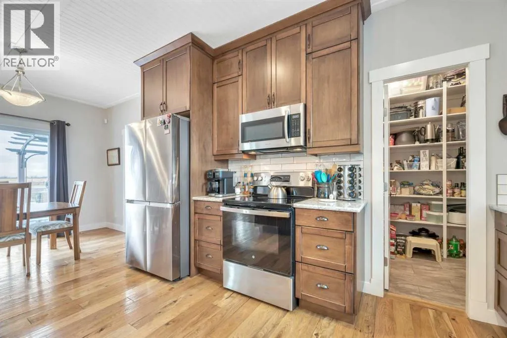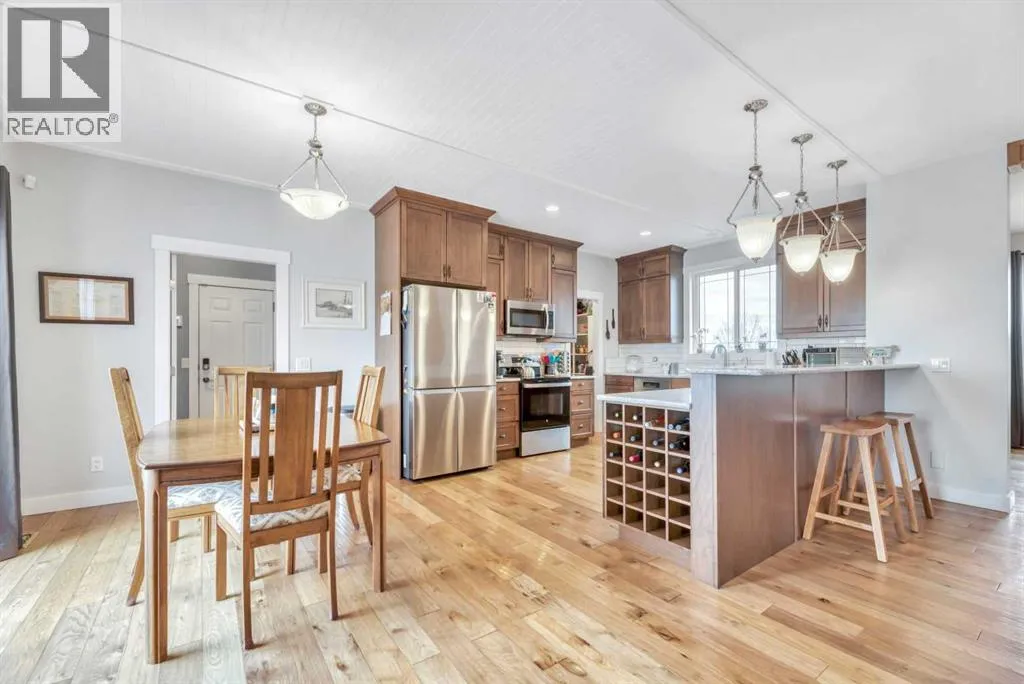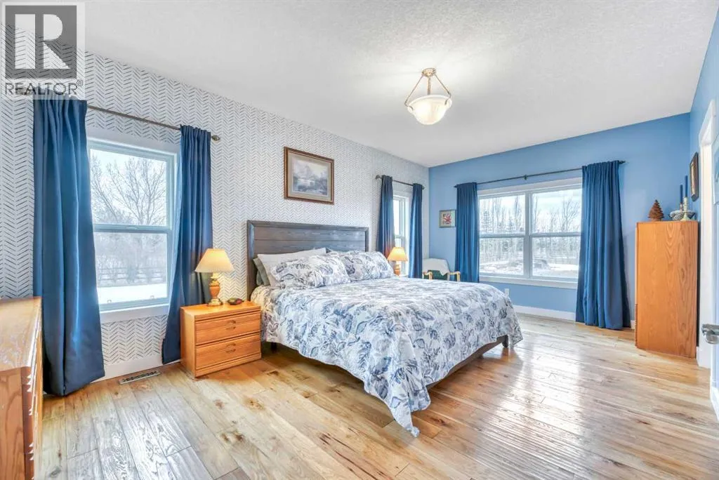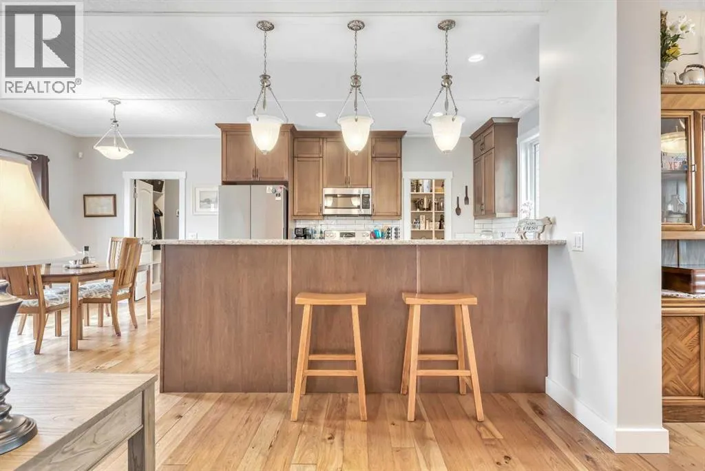 The acreage buyers wait years for, has just hit the market!Located in one of the most sought-after country residential pockets, you are only 4 minutes to Calgary and 3 minutes to Stoney Trail â the rare balance of peaceful living without sacrificing convenience.This fully developed bungalow offers 5 bedrooms and a layout designed to feel open, bright, and effortless. 9' ceilings and solid timber beam details create warmth the moment you walk in. The custom updated kitchen anchors the home with quartz counters, maple cabinetry, newer appliances, and a butlerâs pantry that actually works for real life â storage, prep space, and organization where you need it. The living area gathers around the gas fireplace while large windows frame the mountain views.The primary retreat is spacious and private with built-in closet organizers and a spa-inspired ensuite featuring a large walk-in shower and double sinks. Downstairs, the finished basement adds a massive family room, wet bar, full bathroom, and flexible space for guests, teens, or multi-generational living.Step outside and the property becomes something special.A massive two-level back deck with glass railing and built-in planters overlooks the manicured yard, mature trees, water feature, gardens, and firepit area. The property is perimeter fenced with classic 3-rail fencing and cross-fenced for animals, complete with shelter and a chicken coop. A fenced dog run and kennel keeps pets secure while still giving them space.For hobbyists, business owners, or horse enthusiasts â the outbuildings deliver. The impressive shop features packed gravel with interlocking floor frames for durability and function, plus a rear barn with two stalls and tack room creating true year-round versatility.Strong well water, upgraded mechanical, and careful maintenance mean this home is ready to be enjoyed, not worked on.This is the rare acreage where location, usability, and lifestyle all meet.Not just land.A place you build a life around. (id:27476)
