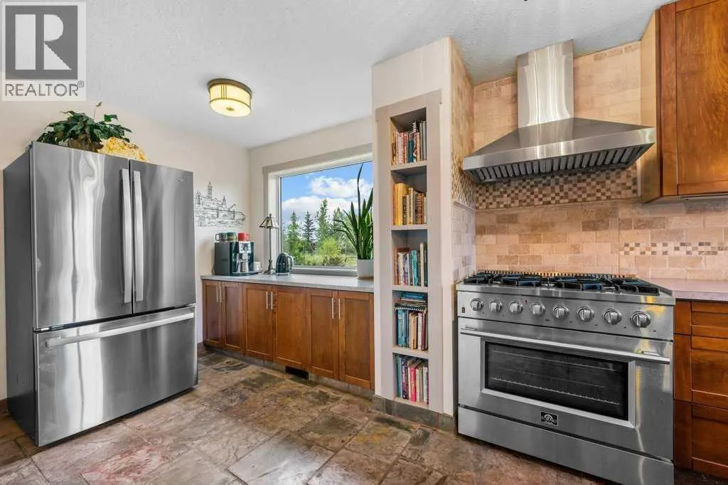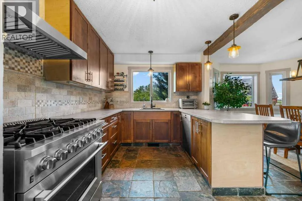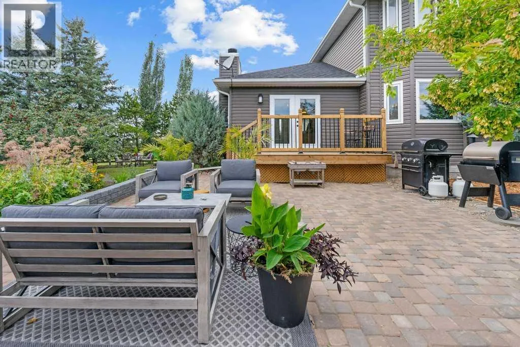 Welcome to this remarkable 24-acre hobby farm tucked away on a private road along the WID Canal, perfectly blending country living with modern comfort and ideal for horse enthusiasts, hobby farmers, or anyone seeking a lifestyle defined by space, privacy, and connection to the land. Horse lovers will appreciate the impressive 38â x 30â barn complete with power, five stalls, a tack and feed room with water hydrant, and a spacious loft, plus a large equipment storage shed, while the land is thoughtfully divided into multiple paddocks with auto water and barbless wire for safe and efficient livestock management. The extensively renovated home is filled with natural light and designed for both comfort and style, featuring a spacious living room with fireplace, a large dining area, and a chef-inspired kitchen equipped with a six-burner gas stove, stainless steel appliances, eating bar, and pantry, along with a convenient mudroom/laundry combination and two-piece bath on the main level. Upstairs offers a retreat-like primary suite with ensuite bath, two additional bedrooms, a sitting area, and a fully renovated main bathroom, while the lower level provides added flexibility with a large recreation room, office, and generous storage. Updates include slate flooring on the main level, luxury vinyl plank throughout the upper and lower levels, new siding and shingles (2017), and an attached double garage. Outside, enjoy your own private paradise on 1.5 landscaped acres where mature trees frame a stone patio, hot tub, and pergolasâan ideal setting for relaxing or entertainingâand donât miss the insulated âchicken palaceâ that adds charm and character to this truly special property offering the tranquility, space, and lifestyle of country living at its finest. (id:27476)