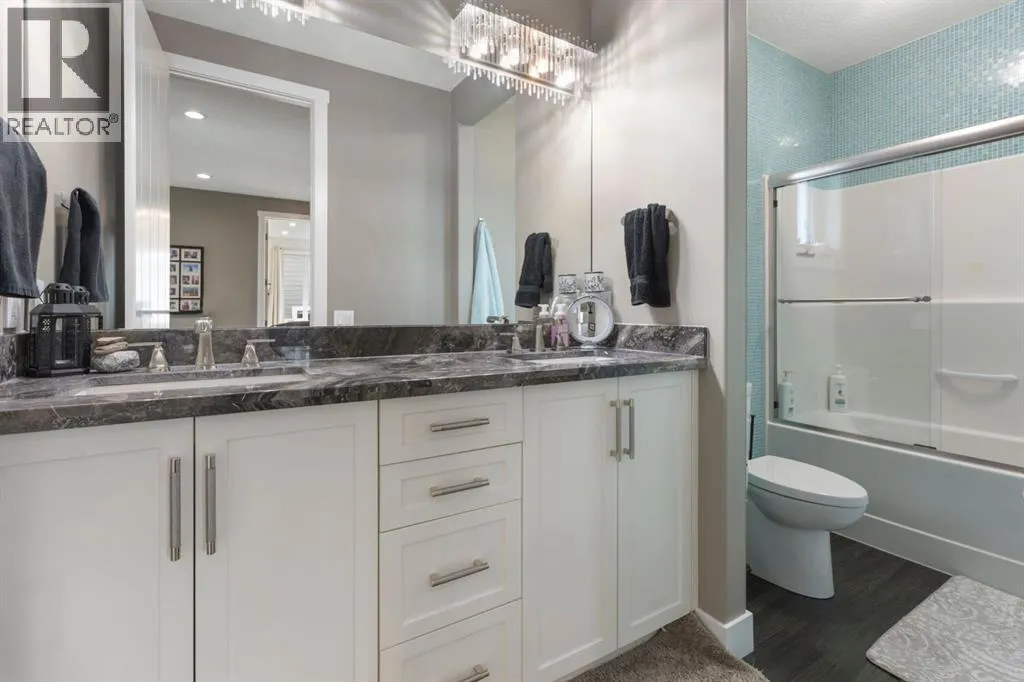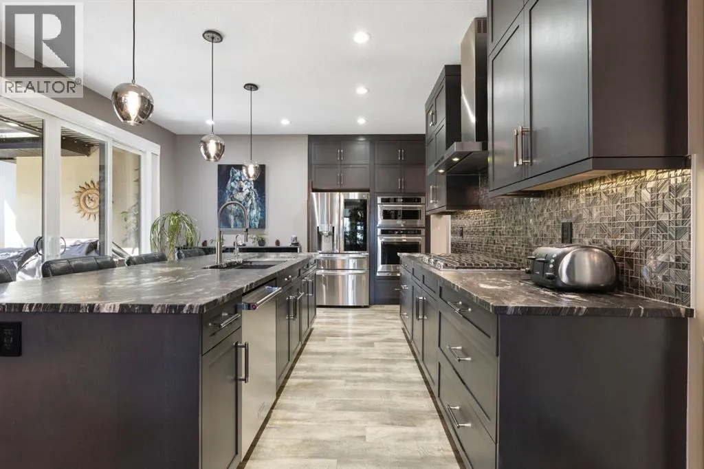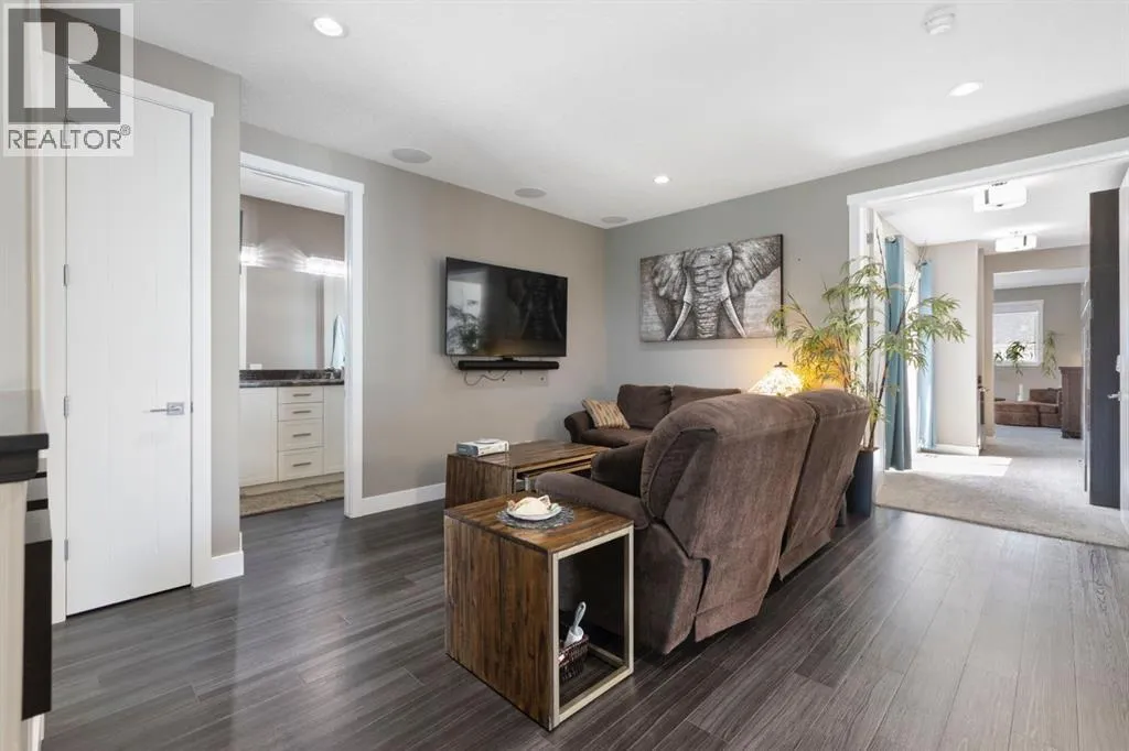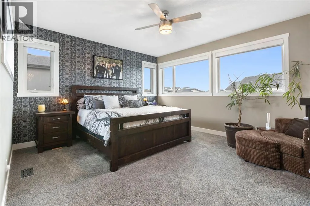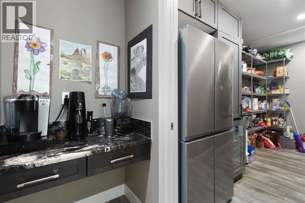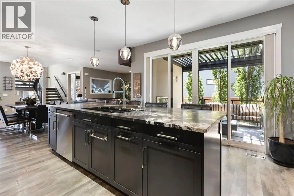 Welcome to this fully loaded luxury home designed with every detail in mind. Offering over 4,000 SF of finished living space, 6 bedrooms, and over $300K in recent upgrades inside and out, this home is truly perfect for a large or growing family. From the oversized heated 3-car garage with epoxy floors to the stunning indoor/outdoor living spaces, this property offers the ideal balance of function, comfort, and lifestyle. The heart of the home is the chef-inspired kitchen featuring leathered granite counters, under-cabinet lighting, high-end stainless steel appliances including a 5-burner gas stove, convection oven, LG fridge with sphere ice maker, microwave, plus a second fridge and wine fridge in the large pantry. A dedicated coffee station makes mornings effortless. The main floor also includes a private office, an expansive living room with a dramatic two-way fireplace, plus laundry with a convenient laundry chute. Upstairs, retreat to the luxurious ownersâ suite with its private balcony, coffee station, custom dressing room, and spa-inspired ensuite with heated floors, marble vanities, oversized glass shower, skylight, and jetted tub. Three additional bedrooms with blackout shades, a full bathroom with double sinks, and a versatile bonus/games room complete the upper level. Remote blinds on front and upper bedroom windows have been add both comfort and privacy. The basement is designed for entertaining and extended family living, a nanny suite or tenant, with a full wet bar (fridge, microwave, dishwasher), second laundry, and a separate entrance. Outdoors, enjoy an automatic 4-season screened-in porch with a louvered roof, gemstone lights, irrigation, raised garden beds, water feature, cushioned turf, and a large storage shed. The low-maintenance yard and side yard access make this space practical as well as beautiful. Additional features include built-in ceiling speakers, water softener, instant hot & cold tap in the kitchen, air conditioning, decorator finish es, and an extra-long driveway with paved alley access. Located minutes from top-rated schools, Bingham Crossing, coffee shops, daycare, and upcoming amenities including a new Costco, Nordic Spa, and the East Harmony Trail extension, this property also offers easy access to downtown Calgary, the Springbank Airport, Calaway Park, and the Rockies. This is more than a homeâitâs a complete lifestyle in Harmony with Lake Access. Book your private showing today and experience all the upgrades and comforts for yourself. (id:27476)