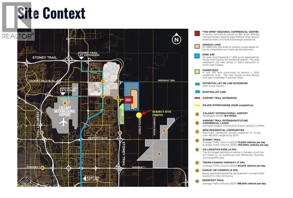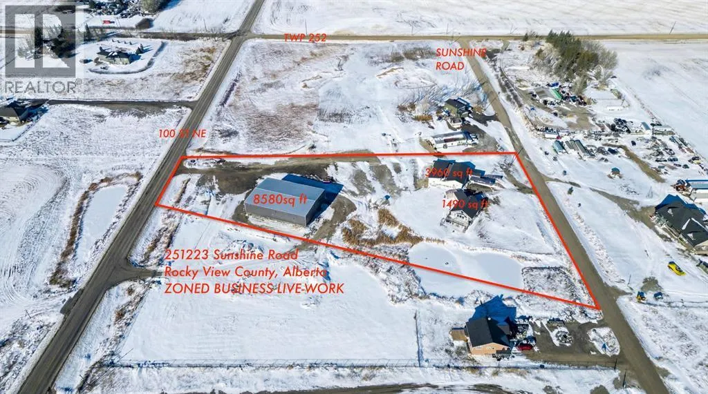**Rare BusinessâLive/Work Opportunity | 3.70 Acres | Fully Built & Ready for Occupancy**An exceptional and increasingly scarce BusinessâLive/Work property located in Rocky View County, positioned kitty-corner to the proposed Omni by Genesis development site. This fully improved B-LWK zoned site offers immediate functionality for owner-users, investors, or growing industrial businesses seeking proximity to Calgary without city constraints.The 3.70-acre parcel is extensively developed and improved with over 16,000 SF of total built area, including a 2023-built, industrial-grade primary warehouse, a secondary warehouse, and a full-size single-family residence, all thoughtfully configured to support live-work operations under Rocky View Countyâs Business-Live/Work District.Primary Warehouse (2023):⢠±8,580 SF rigid steel construction⢠inside eve height 24â center 26.5â ⢠Four (4) 16Hâ x 14âW overhead doors⢠Two-storey office component with staff facilities⢠LED lighting, gas-fired heating, 200-amp serviceSecondary Warehouse:⢠±3,960 SF with multiple overhead doors⢠Heated slab and flexible open layout⢠Ideal for fabrication, storage, trades, or overflow operationsResidential Dwelling:⢠±1,439 SF walkout bungalow plus developed basement⢠Attached double garage⢠Well-separated from industrial operations, providing true live-work functionalityThe site features paved and gravel circulation, ample yard space, separate metering, on-site services, and a professionally constructed drainage pond. Improvements are conventional, functional, and market-relevant, allowing for immediate occupancy with no redevelopment risk or construction delay.Zoning: B-LWK â Business, Live-Work DistrictPermits a broad range of light to medium industrial and commercial uses with integrated residential occupancyâan entitlement that is increasingly difficult to replicate in Rocky View County.Location Highlights:⢠Minutes east of Calgary city limits⢠Direct access via Sunshine Roa d and Range Road 285⢠Strategic positioning within an emerging industrial-commercial corridor⢠Exceptional long-term land-use stability and scarcity valueThis is a turn-key, irreplaceable asset for buyers seeking scale, flexibility, and long-term upside in one of the regionâs most tightly held live-work districts. NOTE that adjacent property is also available MLS#A2289799. (id:27476)