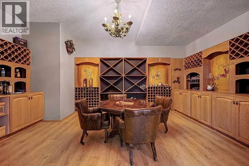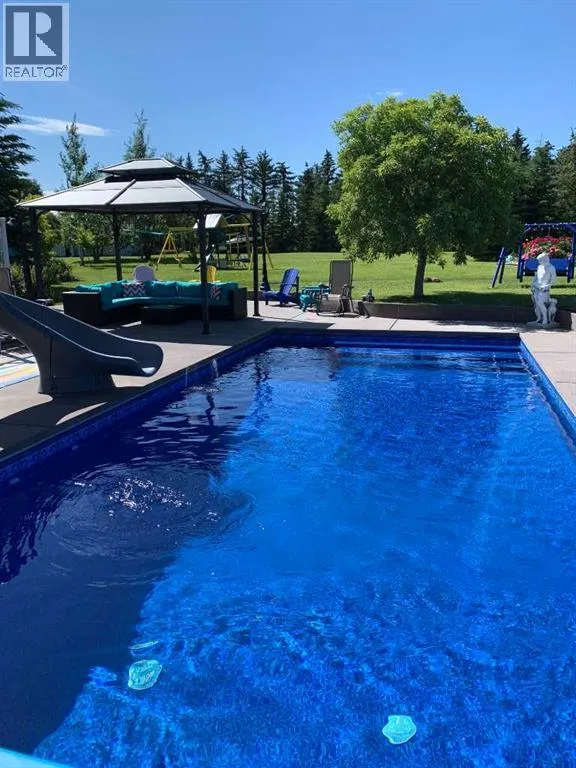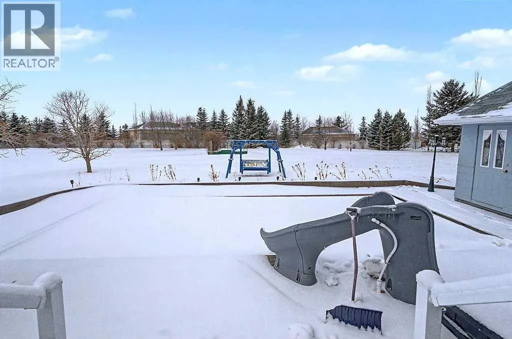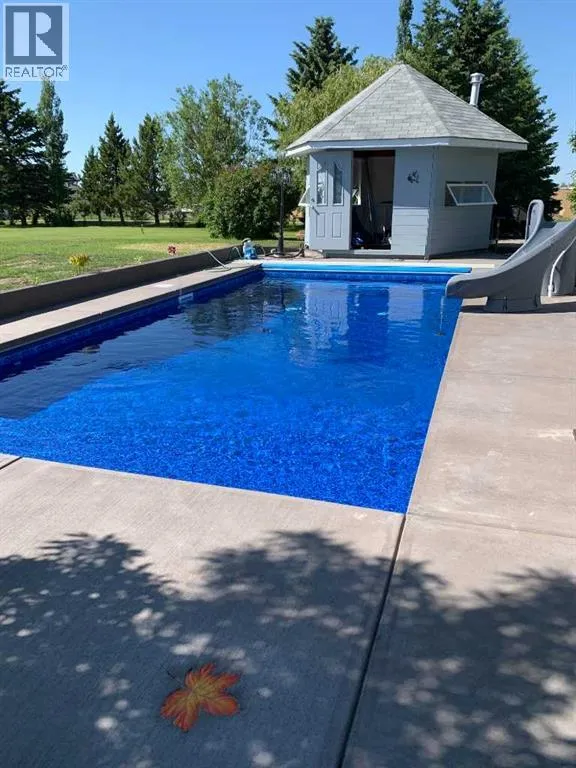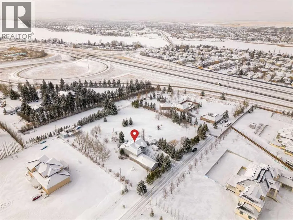 Incredible acreage home conveniently located adjacent to Chestermere Lake on 2.2 private acres. Fully paved access to a large well-appointed bungalow with loft. Private main floor office off of the generous tiled front entry which leads to large living/dining area. Generous, bright spaces feature vaulted ceilings over the dining room separating the living area by an attractive three-sided gas fireplace and opening to a large deck and pool facility. Kitchen features an eat-up breakfast bar, granite counters and warm oak cabinets. Stainless modern appliances and large pantry provide a convenient and attractive workspace, all over warm honey oak hardwood floors throughout the main floor. Main floor primary bedroom boasts a large ensuite bath with jetted soaker tub and large, multi-headed shower. Second bedroom and main floor laundry complete the main floor and the loft area is a great bonus as a craft, hobby room or other get-away. The lower level a great family room, with fireplace, built-in bookcases and entertainment center. A games room and exceptional wine room adjoin. Three additional bedrooms round out the offering, all featuring large bright windows. The home features a wonderful 14' x 30' in-ground pool area off the living/dining rm. The heated pool includes a motorized cover and features a gazebo and pool house. Yard is 2 acres fully irrigated (WRED supplied) and beautifully landscaped. Garage is a mechanics dream with 5 heated stalls and extra room for a workshop. Whole-house water softener and R/O filter for drinking water. Mechanical, heating, A/C and water supply is impeccably maintained. Fabulous property with nothing to do but move in - donât let this one pass you by. (id:27476)
