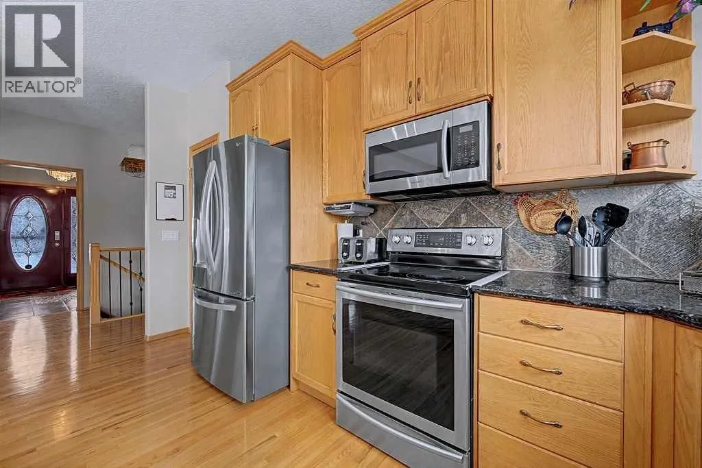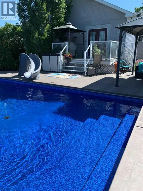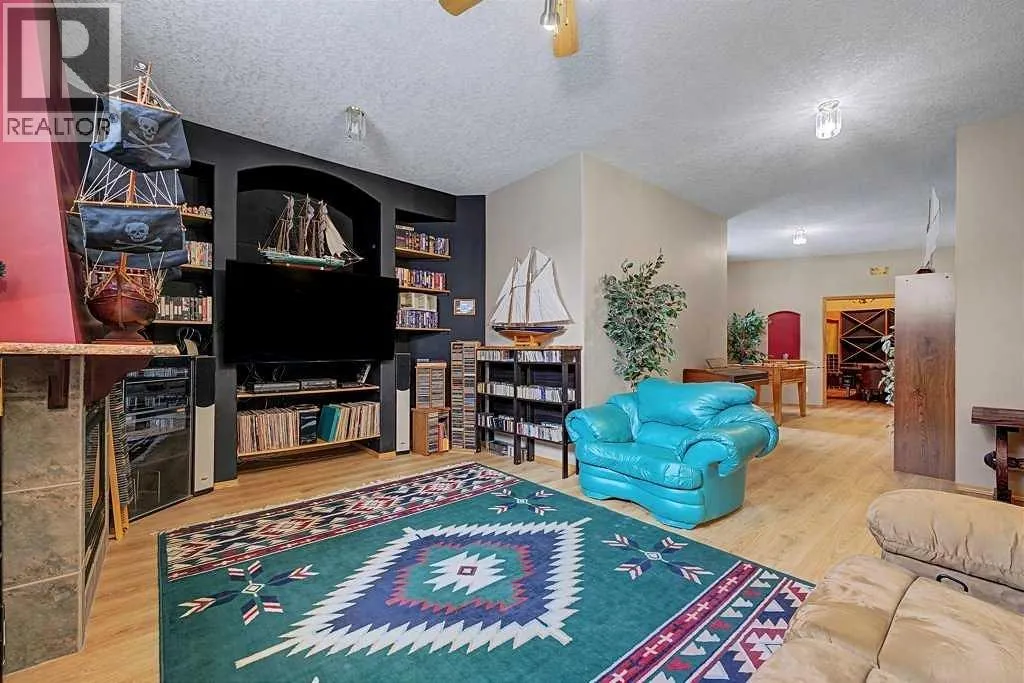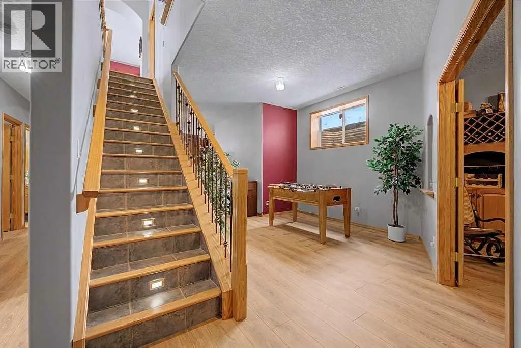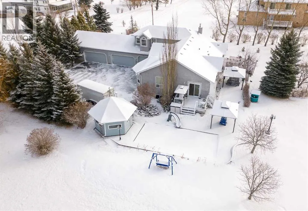 Incredible acreage home conveniently located adjacent to Chestermere Lake on 2.2 private acres. Fully paved access to a large well-appointed bungalow with loft. Private main floor office off of the generous tiled front entry which leads to large living/dining area. Generous, bright spaces feature vaulted ceilings over the dining room separating the living area by an attractive three-sided gas fireplace and opening to a large deck and pool facility. Kitchen features an eat-up breakfast bar, granite counters and warm oak cabinets. Stainless modern appliances and large pantry provide a convenient and attractive workspace, all over warm honey oak hardwood floors throughout the main floor. Main floor primary bedroom boasts a large ensuite bath with jetted soaker tub and large, multi-headed shower. Second bedroom and main floor laundry complete the main floor and the loft area is a great bonus as a craft, hobby room or other get-away. The lower level a great family room, with fireplace, built-in bookcases and entertainment center. A games room and exceptional wine room adjoin. Three additional bedrooms round out the offering, all featuring large bright windows. The home features a wonderful 14' x 30' in-ground pool area off the living/dining rm. The heated pool includes a motorized cover and features a gazebo and pool house. Yard is 2 acres fully irrigated (WRED supplied) and beautifully landscaped. Garage is a mechanics dream with 5 heated stalls and extra room for a workshop. Whole-house water softener and R/O filter for drinking water. Mechanical, heating, A/C and water supply is impeccably maintained. Fabulous property with nothing to do but move in - donât let this one pass you by. (id:27476)