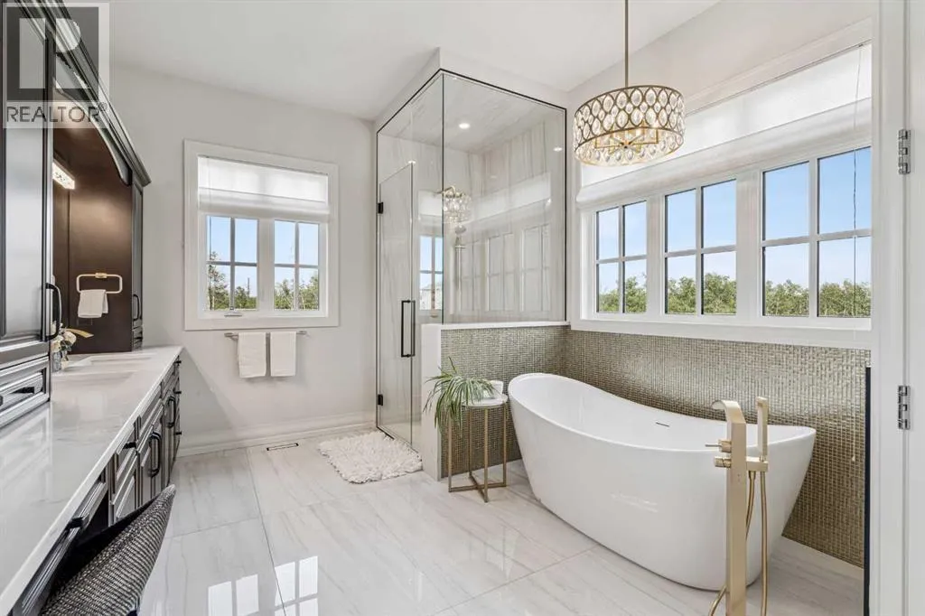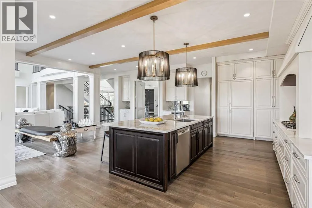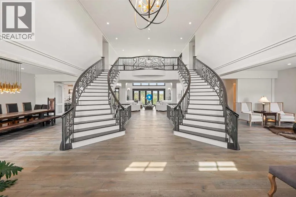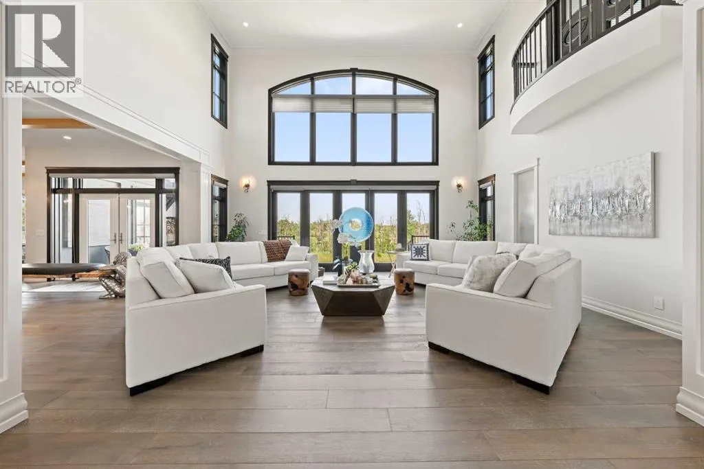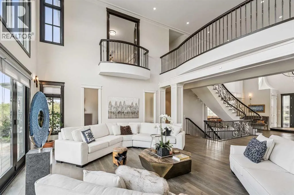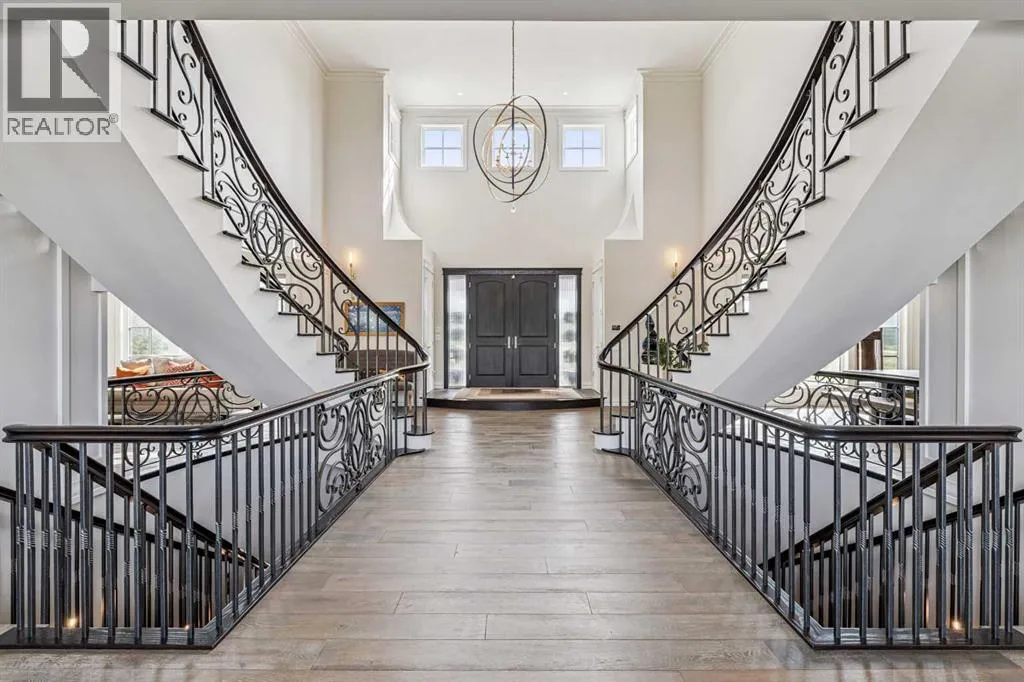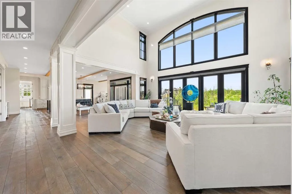 Introducing 19 McKendrick Point, an extraordinary luxury estate in the prestigious Springbank community, set on 2.3 acres and offering nearly 12,000 sq. ft. of exceptional living space. Built in 2020 by Your Property Corp, this custom-designed residence seamlessly blends elegant everyday living with grand-scale entertaining, both indoors and outdoors. Guests are welcomed through a dramatic 20-foot double-height foyer with floor-to-ceiling windows, setting the tone for the refined craftsmanship throughout. The main level features an impressive open-concept family room with panoramic views and direct access to a wraparound deck, perfect for hosting gatherings or enjoying peaceful moments with family.At the heart of the home is a chef-inspired gourmet kitchen featuring custom ceiling-height cabinetry, a large quartz island, and premium appliances including a Miele panelled fridge/freezer, as well as additional Wolf and Bosch appliances. A fully equipped spice kitchen with walk-in pantry provides added convenience for entertaining and everyday cooking. Luxury and comfort continue throughout the home with thoughtful features such as solar-powered blinds, central air conditioning, heated basement floors, ceramic-tiled bathrooms and laundry rooms, and a central vacuum system.The stunning primary retreat offers the ultimate in privacy and relaxation, complete with a gas fireplace, private office, direct deck access, and a spa-inspired ensuite featuring a soaking tub, dual vanities, heated floors, and a spacious walk-in closet with custom built-ins and makeup vanity.Designed for flexibility and family living, the home includes 7+1 ensuite bedrooms, a nanny room with full bathroom, dual mudrooms for convenient garage access, and laundry rooms on both the main and upper floors, with a rough-in for an additional laundry in the basement. The upper-level lounge provides a cozy space for reading, studying, or quiet relaxation.Outside, the property continues to impress with a cozy outdoor fireplace, expansive deck areas, and beautifully landscaped grounds. Car enthusiasts will appreciate the heated seven-car garage with dual-side access, offering exceptional space for vehicles, hobbies, or storage.Modern efficiency features include a solar-vented roof and rain-sensor sprinkler system, adding both sustainability and convenience. Families will appreciate proximity to top private & public schools including Calgary French & International School, Webber Academy, Calgary Academy, F.E. Osborne School, and Olympic Heights School. Recreation and amenities such as WinSport (Canada Olympic Park), Bowmont Park, the Bow River pathways, Calgary Farmersâ Market, and excellent dining and shopping options are all within easy reach. Ideally located just 15 minutes from Downtown Calgary and within easy driving distance to Canmore and Banff, this exceptional estate offers the perfect balance of luxurious country living and convenient city access (id:27476)