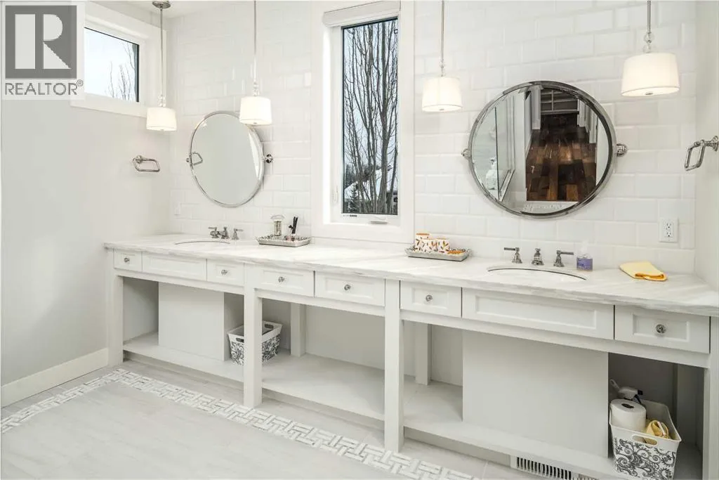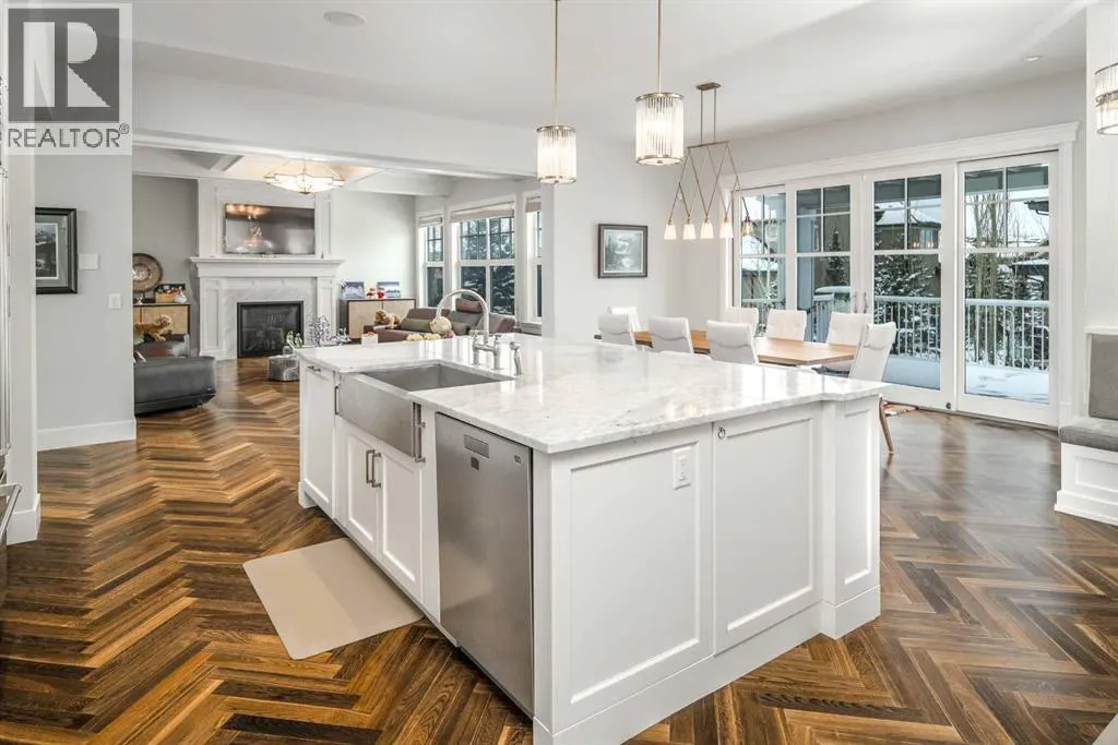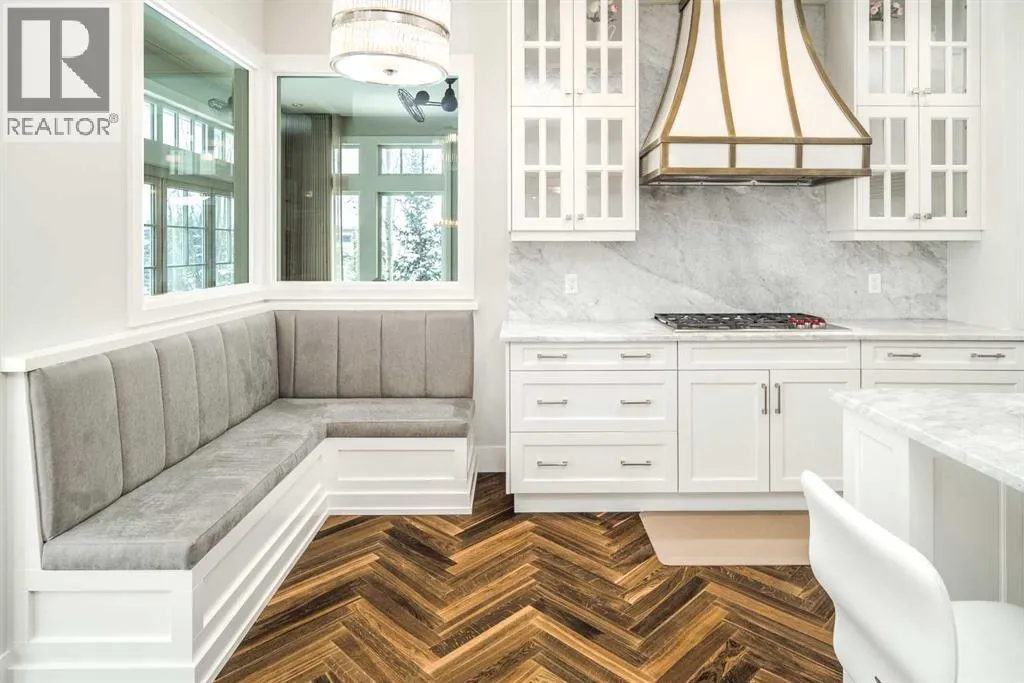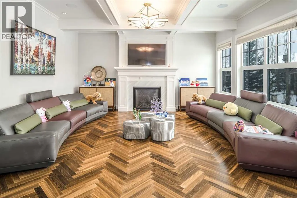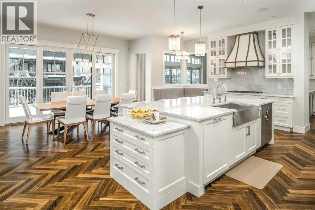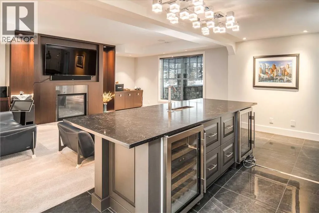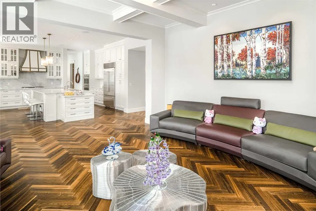 Welcome to this exquisite custom estate home by Wolf Custom Homes, nestled in the prestigious community of Watermark. Boasting over 5,400 sq. ft. of unparalleled craftsmanship and elegance, this former SHOWHOME offers tons of upgrades exemplifies luxury living. The house is in immaculate condition, having been used only occasionally by the owners. From the moment you step inside, you are welcomed by stunning luxury hardwood flooring that flows throughout the main level. The heart of the home is the gourmet chefâs kitchen, featuring beautifully crafted cabinetry, an oversized island with marble countertops, and top-of-the-line appliances, including a Sub-Zero fridge, Wolf gas stove and built-in oven, and an Asko dishwasher. Adjacent to the kitchen, the bright and inviting dining area and living room are adorned with expansive windows, allowing natural light to fill the space. A striking fireplace adds warmth and sophistication to this open-concept layout. For those who love to entertain, a formal dining room and a stunning 4-season sunroom extend onto an expansive, covered balconyâperfect for year-round enjoyment. A spacious main-floor office, complete with custom-built desk and shelving, offers the ideal work-from-home setup. A thoughtfully designed mudroom with a built-in bench and ample storage ensures effortless organization. Upstairs, retreat to the lavish primary suite, where a spectacular walk-in closet with custom spa-like 5-piece ensuite. Indulge in the free-standing soaker tub, oversized glass-enclosed shower, and dual vanities. Two additional generously sized bedrooms, each with its own walk-in closet and private 4-piece ensuite, provide ultimate comfort. A large bonus room and a convenient upper-floor laundry room complete this level. The fully developed walk-out basement, enhanced with in-floor heating, extends the homeâs luxurious appeal. It boasts a spacious entertainment area with a fully equipped wet bar, a modern fitness room, an additional bedroom, and a beautifully appointed four-piece bathroom. Step outside to your private backyard oasis, where breathtaking views, lush landscaping, and elegant decorative LED system (10K value) and garden lighting (6K) create the perfect setting for entertaining or quiet evenings under the stars. Located in the exclusive estate community of Watermark, this home provides the tranquility of country living with the convenience of city amenities just minutes away. Enjoy scenic pathways, parks, playgrounds, and the renowned Central Plaza with a pavilion, picnic areas, firepit, sports courts, and lush green spaces. Experience the pinnacle of luxuryâbook your private showing today! (id:27476)