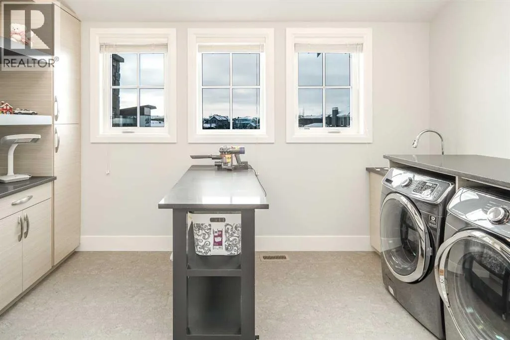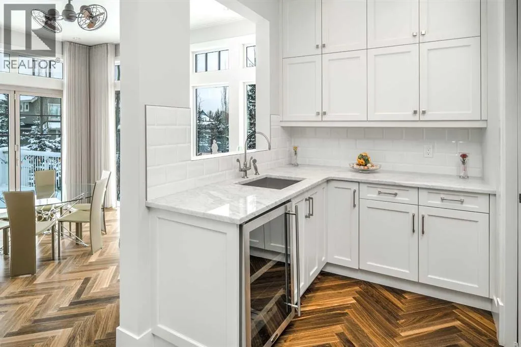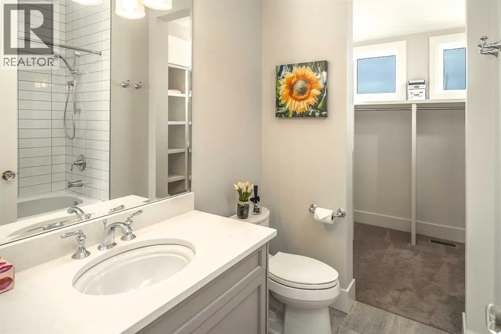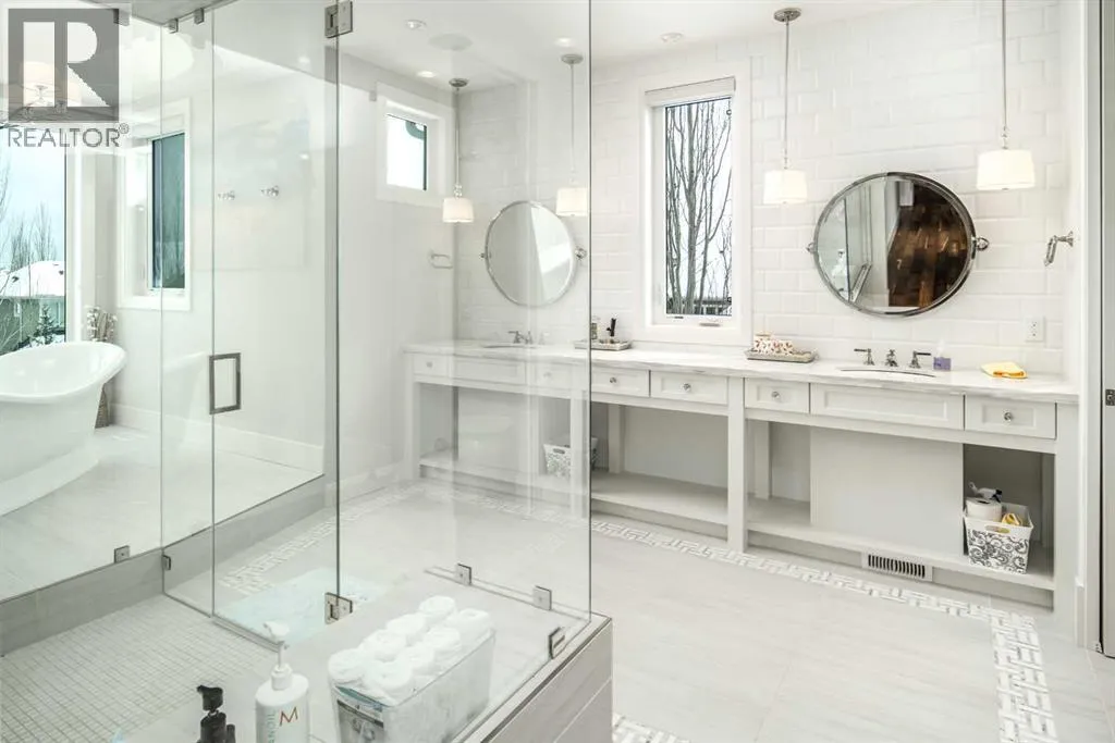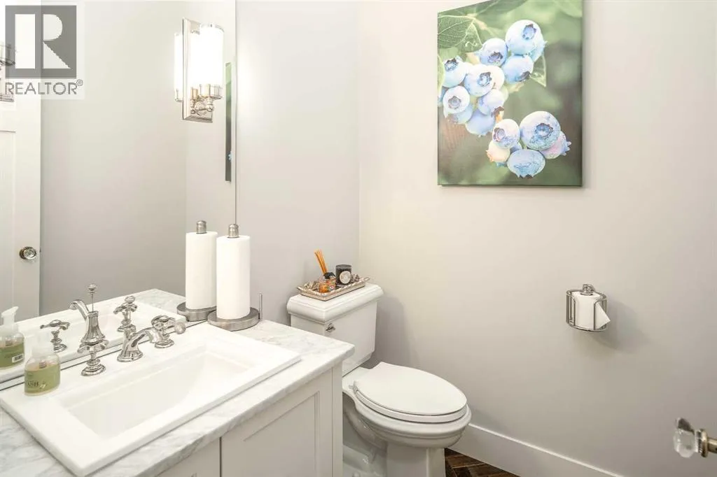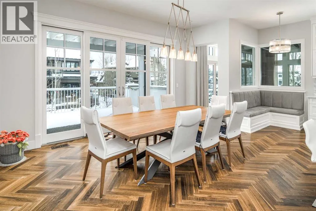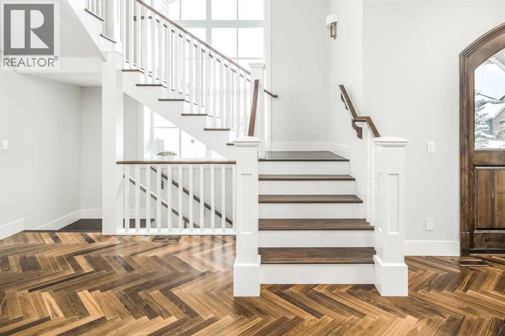 Welcome to this exquisite custom estate home by Wolf Custom Homes, nestled in the prestigious community of Watermark. Boasting over 5,400 sq. ft. of unparalleled craftsmanship and elegance, this former SHOWHOME offers tons of upgrades exemplifies luxury living. The house is in immaculate condition, having been used only occasionally by the owners. From the moment you step inside, you are welcomed by stunning luxury hardwood flooring that flows throughout the main level. The heart of the home is the gourmet chefâs kitchen, featuring beautifully crafted cabinetry, an oversized island with marble countertops, and top-of-the-line appliances, including a Sub-Zero fridge, Wolf gas stove and built-in oven, and an Asko dishwasher. Adjacent to the kitchen, the bright and inviting dining area and living room are adorned with expansive windows, allowing natural light to fill the space. A striking fireplace adds warmth and sophistication to this open-concept layout. For those who love to entertain, a formal dining room and a stunning 4-season sunroom extend onto an expansive, covered balconyâperfect for year-round enjoyment. A spacious main-floor office, complete with custom-built desk and shelving, offers the ideal work-from-home setup. A thoughtfully designed mudroom with a built-in bench and ample storage ensures effortless organization. Upstairs, retreat to the lavish primary suite, where a spectacular walk-in closet with custom spa-like 5-piece ensuite. Indulge in the free-standing soaker tub, oversized glass-enclosed shower, and dual vanities. Two additional generously sized bedrooms, each with its own walk-in closet and private 4-piece ensuite, provide ultimate comfort. A large bonus room and a convenient upper-floor laundry room complete this level. The fully developed walk-out basement, enhanced with in-floor heating, extends the homeâs luxurious appeal. It boasts a spacious entertainment area with a fully equipped wet bar, a modern fitness room, an additional bedroom, and a beautifully appointed four-piece bathroom. Step outside to your private backyard oasis, where breathtaking views, lush landscaping, and elegant decorative LED system (10K value) and garden lighting (6K) create the perfect setting for entertaining or quiet evenings under the stars. Located in the exclusive estate community of Watermark, this home provides the tranquility of country living with the convenience of city amenities just minutes away. Enjoy scenic pathways, parks, playgrounds, and the renowned Central Plaza with a pavilion, picnic areas, firepit, sports courts, and lush green spaces. Experience the pinnacle of luxuryâbook your private showing today! (id:27476)