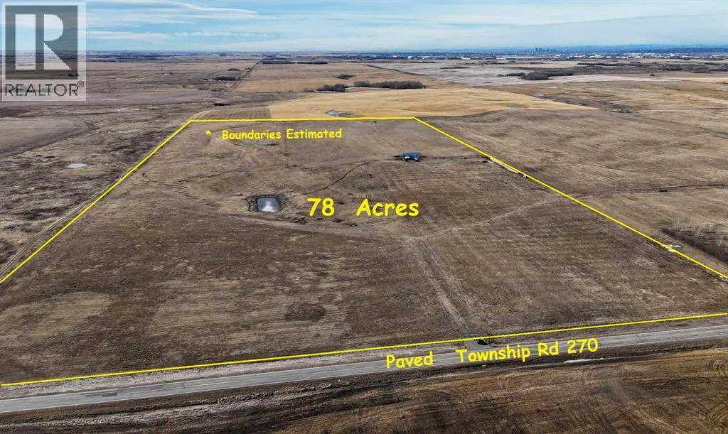 78 Acres with Mountain Views, on Pavement, Minutes to Airdrie, Calgary + CrossIron Mills. Country Quiet, City Close! 78 Acres on PAVED Township Road 270 just east of Airdrie, Alberta. Combination of hay and pasture, with nice elevated building sites with Mountain, City and country views. Ideal for quiet country living and home based business (by permit), A-SML Agricultural, Small Parcel District. 1,300' frontage on Township Road 270. East from Airdrie on Yankee Valley Boulevard/Township Road 270 past Airdrie Airpark and past Range Road 290, first approach east of MD #285079 on south side of the road. Livestock on the property, do not access without permission. GST may apply. (id:27476)