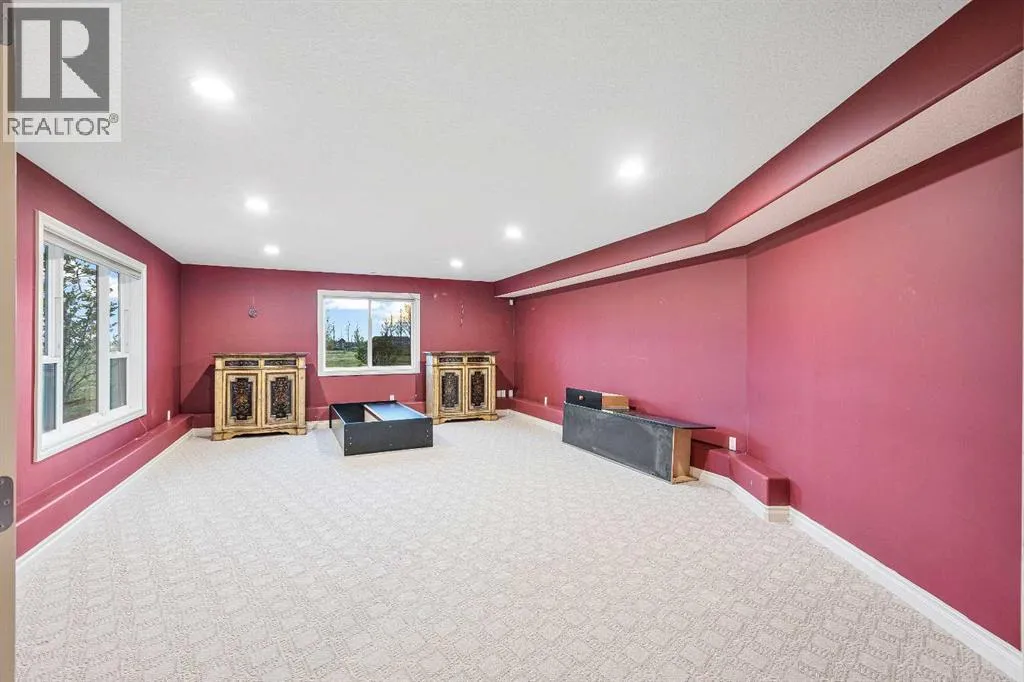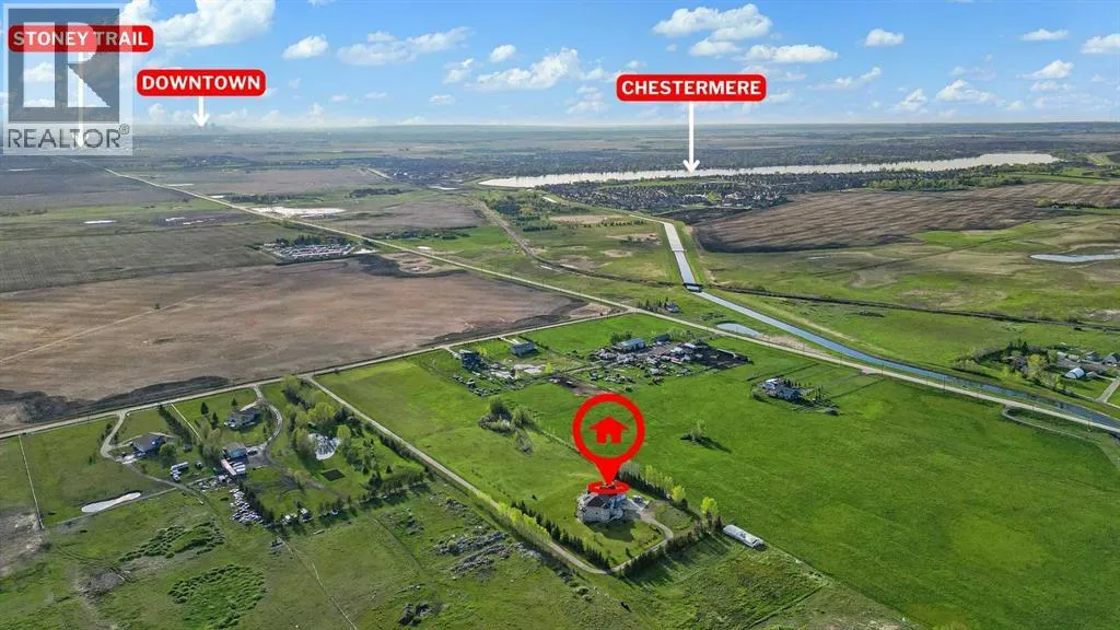 ONE OF A KIND ACREAGE - 20+ ACRE PARCEL (IDEAL FOR SUBDIVISION; SUBJECT TO COUNTY APPROVAL) - 10,800+ SQ FT W 10 BEDROOMS, 6 FULL BATHS & 2 HALF BATHS - WALKOUT BASEMENT WITH A LEGAL SUITE & ILLEGAL SUITE - OVERSIZED TRIPLE CAR GARAGE - OVERSIZED DRIVEWAY - HUGE 46 FT BALCONY & PATIO - TONS OF UPGRADES INCLUDING HIGH CEILINGS, VAULTED CEILINGS, GRANITE COUNTERS, FULL HEIGHT CABINETRY & MORE - MOUNTAIN VIEWS - Main Level offers 2 dining rooms, Oval office, BEDROOM WITH ENSUITE, SUNROOM, living room with Vaulted Ceilings, Spacious Kitchen, family room with fireplace, laundry and half bath - Upper level offers 6 Bedrooms (5 Beds + 1 Den/Bonus) & 3.5 Baths. All bedrooms have direct access to a FULL bath (excluding the Den/Bonus). Of the 6 bedrooms, 1 is the master that comes with a W.I.C & 5 PC ENSUITE! There is also a half bath on the upper level. The walkout basement offers 2 living spaces (1 legal suite & 1 illegal suite) combining for a total of 3 Bedrooms + 1 Media Room (that can also be used as an additional bedroom), 2 kitchen, 2 FULL baths & a rec room and family room! There are lots of amazing features with this property starting with its LOCATION - Just a stone's throw from Chestermere City, approximately few minutes from Chestermere High School & around 25 minutes to Downtown Calgary! In addition to that, this home is on a SUBDIVIDABLE PARCEL (subject to county approval) and with the Illegal and Legal Suite in the basement, you have 2 MORTGAGE HELPERS for your property! (id:27476)
