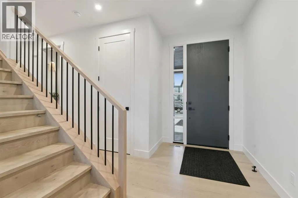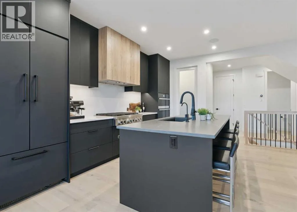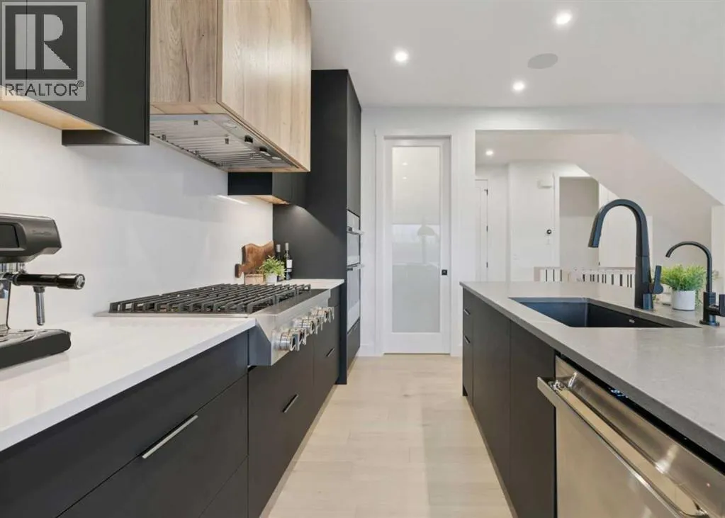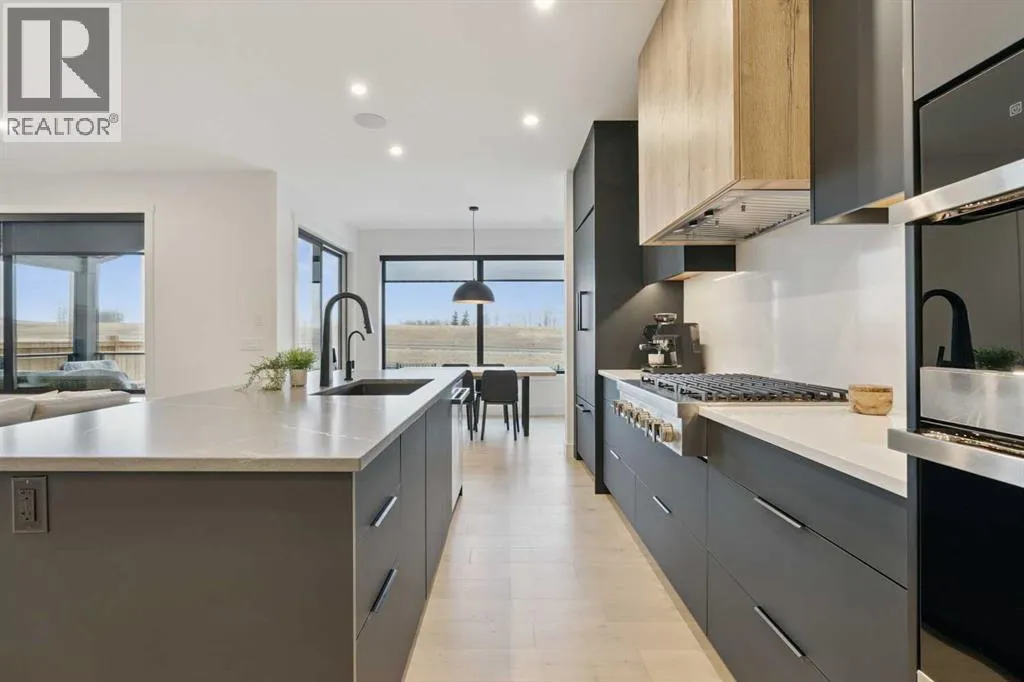 Welcome to this thoughtfully designed 2024-built, 1,975 ft² LIKE-NEW home offering 4 bedrooms, 4 bathrooms, and finished with PREMIUM UPGRADES throughout. The striking kitchen features matte black cabinetry, a matte quartz island, JennAir appliances including an integrated refrigerator, and a sleek modern aesthetic that anchors the main living space. Warm hardwood floors run throughout the home, including the staircase, creating a seamless and elevated feel.The inviting living room is centred around an oversized gas fireplace with a maple mantle and showcases expansive green views that stretch as far as the eye can see. Built-in speakers throughout the home add to the comfortable and modern living experience.Upstairs, the second floor offers a bonus room, two additional bedrooms, and a beautifully appointed five-piece ensuite in the primary retreat featuring a floating double vanity and refined finishes. The laundry room is thoughtfully designed for convenience with access from both the primary walk-in closet and the main hallway.The fully finished basement features impressive 10-foot ceilings, plush carpet, an additional bedroom, and a four-piece bathroom, creating the perfect extension of living space.Outdoor living is equally impressive on this premium lot with a covered composite deck backing onto green space, where a back gate provides direct access to the walking path and gorgeous morning sunrises over the golf course.Additional highlights include power blinds throughout, reverse osmosis water system, central air conditioning, and a water softener. The garage is equally impressive with a 10-foot door, 12-foot ceilings for additional storage, and an EV charger already installed. An aggregate driveway and walkway enhance the homeâs beautiful curb appeal. Ask your agent for a full list of upgrades and features! (id:27476)