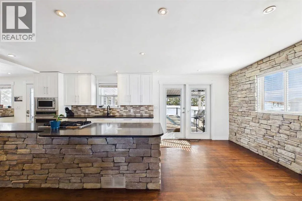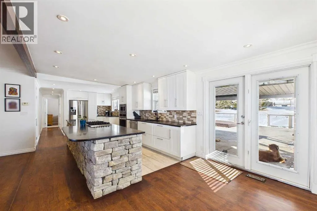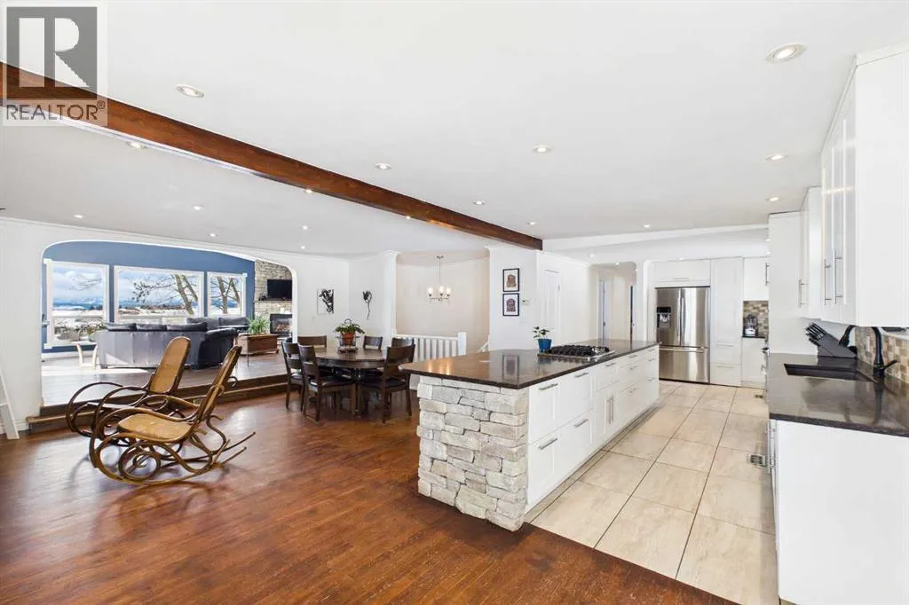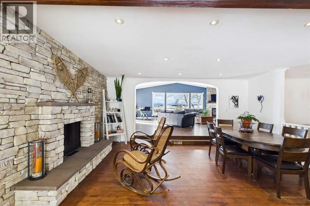 Welcome to an exceptional acreage opportunity offering space, privacy & breathtaking scenery.This beautifully renovated walkout bungalow sits on 8.06 picturesque acres & captures stunning, unobstructed mountain views right from every level of the home. Whether youâre looking for a peaceful country retreat, space for animals, or room for your family to grow, this property offers the perfect blend of comfort, functionality & rural charm. Inside, the home features 6 spacious bedrooms & a thoughtfully updated interior designed for modern living while embracing the warmth of country life. The kitchen speaks for itself with a massive island, quartz counters, tons of cabinetry, pantry & a coffee station area, This kitchen effortlessly blends highend modern utility with the rugged, organic textures of a mountain retreat. The open-concept design is defined by its crisp white cabinetry, dark stone surfaces, and a striking floor-to-ceiling fieldstone feature wall. All the bathrooms have been updated & in convenient locations. Large windows fill the home with natural light &perfectly frame the sweeping mountain views, creating a bright & inviting atmosphere throughout the main living areas. 3 cozy fireplaces bring ambience to every level of this home. 2 wood burning fireplaces and one natural gas fireplace. The layout offers both comfortable everyday living & plenty of space for entertaining family and friends. There are 3 decks to enjoy the outdoor life and views. The walk-out basement provides additional versatile living space with direct access to the outdoors, making it ideal for gatherings, extended family living, a recreation area, media room & a private retreat for guests. With multiple living spaces and generous bedroom sizes, the home offers flexibility to suit a variety of lifestyles. Step outside and experience the true beauty of acreage living. The 8.06-acre parcel offers wide open space, privacy & endless potential for outdoor enjoyment. The property has been home to cows, donkeys & chickens, making it well suited for hobby farming or those who appreciate the charm & rewards of rural life. Thereâs a 20x50ft garden area, gazebo and additional outbuildings. Imagine starting your mornings with coffee while watching the sunrise over the mountains & ending your evenings under expansive prairie skies. With incredible views, room for animals & a beautifully updated home already in place, this property offers a rare opportunity to enjoy the best of country living while still being within reach of nearby amenities. Acreage properties like this are increasingly hard to find offering the perfect combination of land, views & a move-in-ready home. Whether youâre dreaming of a hobby farm, a private family retreat, or simply more space to live and breathe, this remarkable property delivers a lifestyle that is truly special. Roof 15 years old, septic field/tank 2022, furnace 2023, H2O tank 2025 (id:27476)
