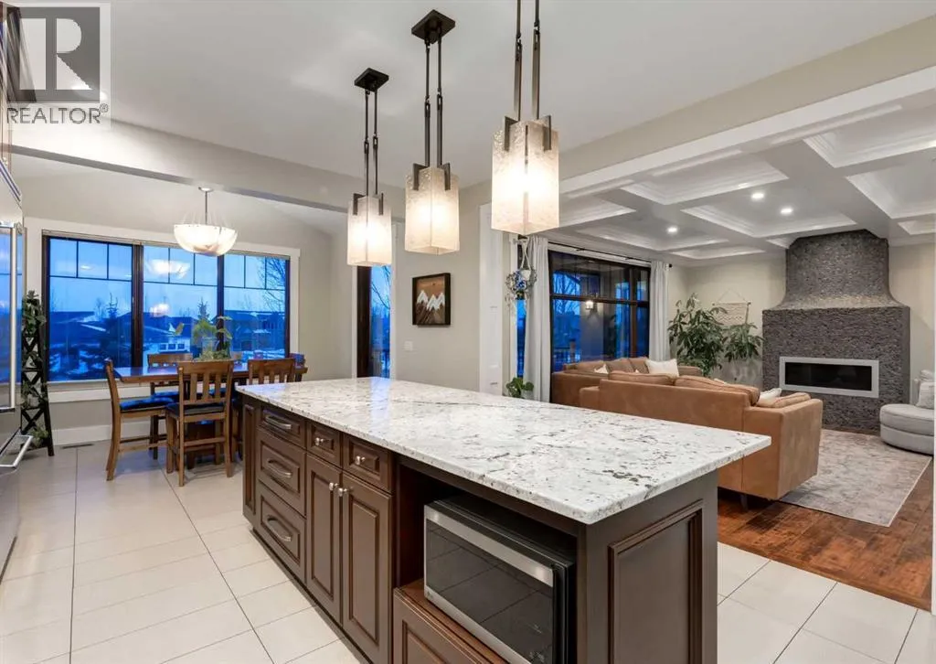 OPEN HOUSE -SATURDAY ,APRIL-4th 2-430PM ...WELCOME TO 130 OCTOBER GOLD WAY ...Estate living unfolds across more than 5,475 sq ft of beautifully developed space on a .36 acre lot backing directly onto in prestigious Elbow Valley West. Timeless architecture, a welcoming front veranda and a heated OVERSIZED QUAD garage create a striking first impression while the surrounding natural landscape establishes privacy and a peaceful setting. Grand 9â ceilings and an open floor plan define the main level where oversized windows stream natural light throughout the interior. Coffered ceilings elevate the living room while a dramatic stone encased fireplace forms a warm focal point designed for relaxed evenings and comfortable gatherings. Culinary creativity is inspired in the chefâs dream kitchen showcasing granite countertops, full height cabinetry, a Viking gas range and an oversized centre island that naturally becomes the hub for conversation and casual meals. Windows wrap the breakfast nook and frame views of the greenspace beyond while providing direct access to the upper deck for effortless indoor and outdoor living. Elegant dinners and celebrations find their place in the formal dining room where tray ceilings, designer lighting and corner windows enhance the atmosphere. Organization is simplified by a mudroom with built in storage while a fully enclosed den with wainscotting, built ins and corner windows establishes a refined home office. Upper level spaces continue the thoughtful design with a comfortable loft for reading or relaxing and a large bonus room that adapts easily for media, study or play. Rest and recharge within the private primary retreat where a two-sided fireplace brings warmth to both the bedroom and the spa inspired ensuite while soaking in the deep tub. Dual sinks, an oversized shower and a custom walk in closet support daily comfort. Two additional bedrooms each include built in desk areas and walk in closets while sharing a 5-piece Jack and Jill e nsuite. Laundry is also conveniently located on this level. The fully finished walkout basement expands the living space with a generous recreation area centred around a full height stone fireplace with built ins creating an inviting setting for movies and games. Entertaining is effortless thanks to a wet bar while a versatile flex room offers space for hobbies, fitness or creative pursuits. Two additional bedrooms and a 3 piece bathroom provide excellent accommodation for family or guests. Outdoor living continues with an upper deck overlooking the green space and a covered patio below that extends the usable space into every season. Pathways, parks and a nearby pickleball court support an active lifestyle while proximity to several premier golf courses, Aspen amenities and Bragg Creek delivers exceptional convenience within an extraordinary natural setting. Estate scale, refined finishes and an extraordinary natural backdrop combine to deliver a private retreat just minutes from Calgary. (id:27476)