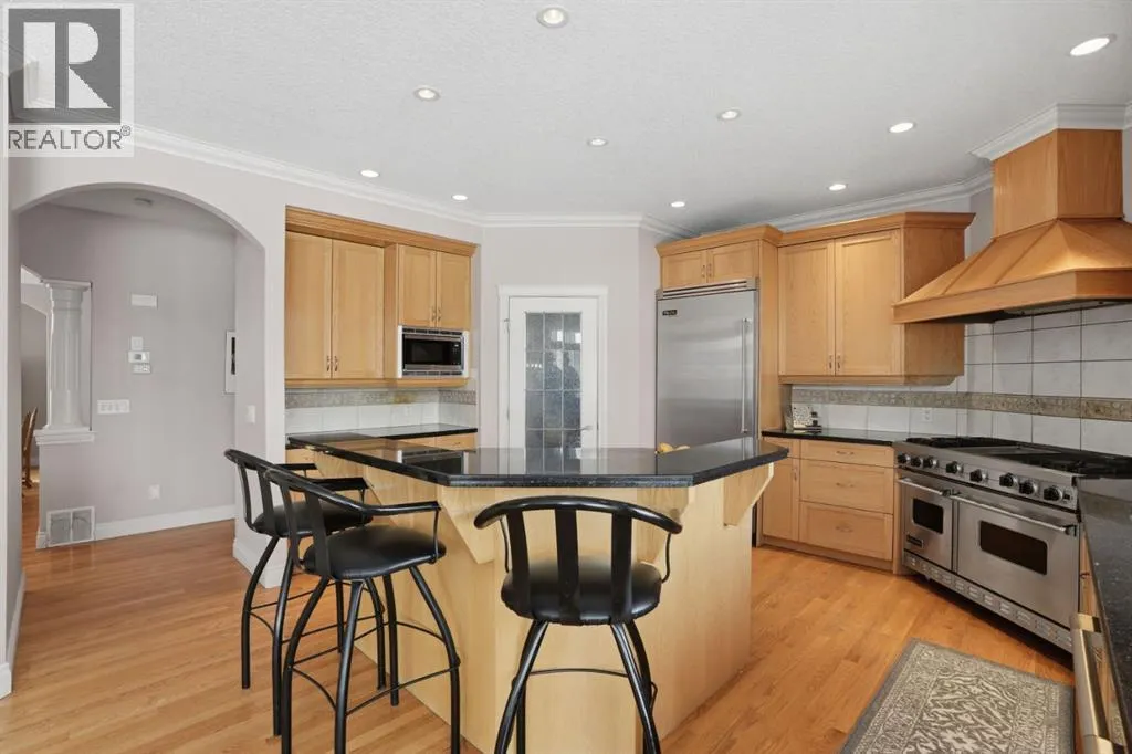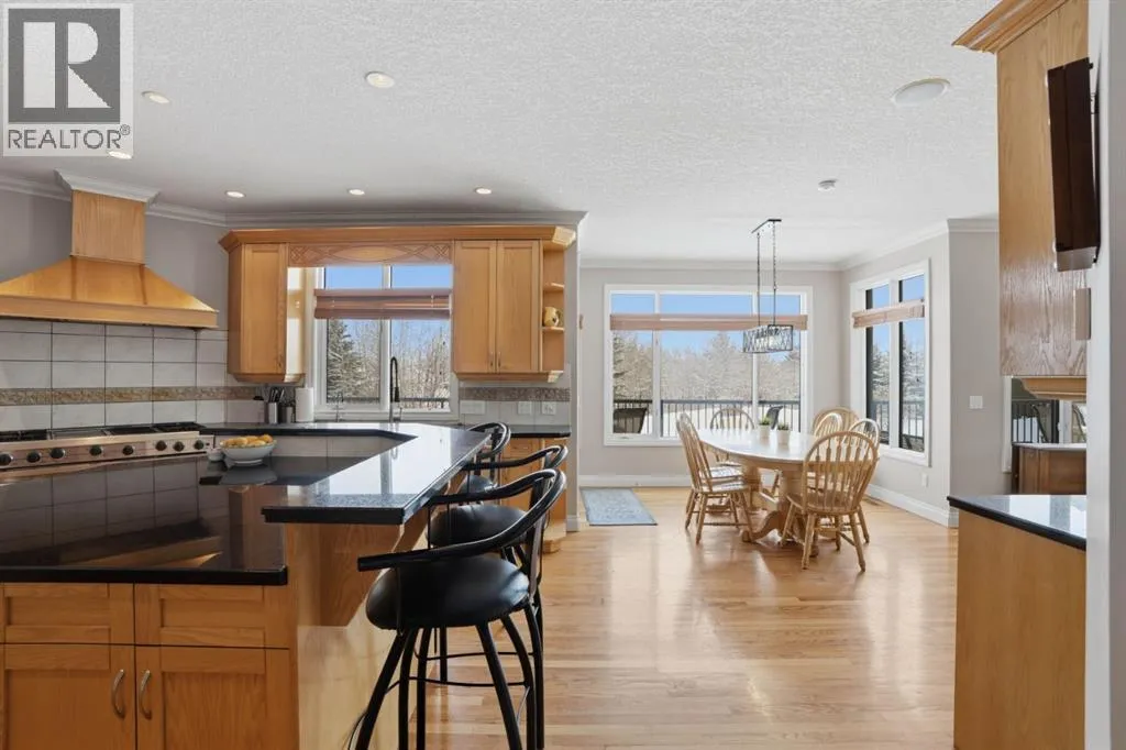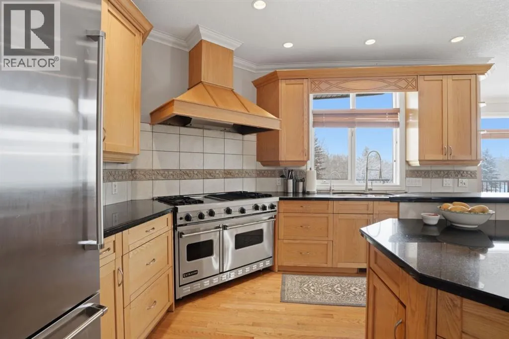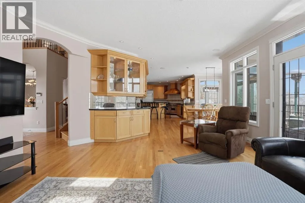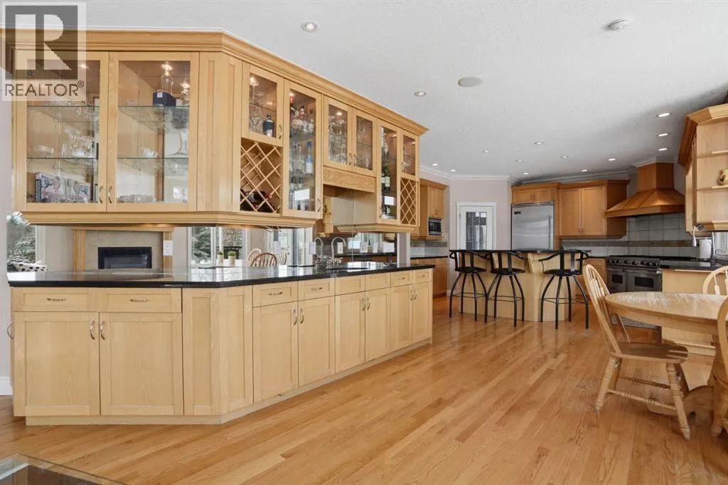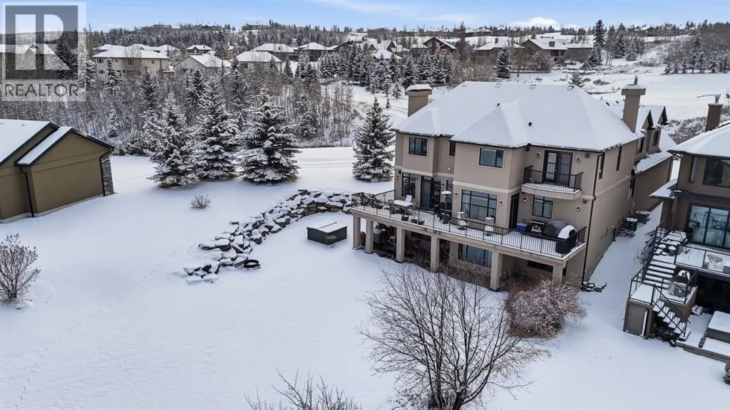 Welcome to 327 Rodeo Ridge in the prestigious golf course community of Springbank Links. This spectacular 7-bedroom estate home is nestled on a stunning private, treed lot, offering the rare combination of acreage-style privacy with significantly less upkeep, just minutes from Calgary. Thoughtfully designed across three fully finished levels, this exceptional home offers expansive and refined living space ideal for growing families and multi-generational living. The bright open-concept layout showcases rich hardwood flooring, elegant wrought iron railings, two gas fireplaces with stately mantles, and an abundance of natural light throughout. At the heart of the home is a beautifully situated gourmet kitchen featuring granite countertops, warm wood cabinetry, upgraded stainless steel appliances, and numerous built-ins. A convenient walk-through pantry connects seamlessly to the main living areas, while the bright breakfast nook overlooks the peaceful, private backyard. Entertain effortlessly in the formal dining room, gather in the inviting living spaces, or host guests at the main-floor wet bar. A main floor den provides the perfect setting for a private home office. Upstairs, the home offers four spacious bedrooms, including a luxurious primary retreat complete with a spa-inspired 4-piece ensuite featuring a jetted tub. Dual laundry areas on the upper and lower levels provide added everyday convenience. The fully developed walkout basement further enhances the homeâs versatility, featuring a complete mother-in-law suite (illegal), two additional bedrooms, and generous living spaceâperfect for extended family, guests, or independent living arrangements. Additional highlights include a heated triple-car garage, quality craftsmanship throughout, and a mature, beautifully treed setting that offers exceptional privacy, fully landscaped with Hot Tub and Fire pit. Located in the highly sought-after Springbank Links community, residents enjoy championship golf, a pi ckleball court, year-round dining, and winter trail networks for walking, jogging, and cross-country skiing, all within the neighborhood. Families will appreciate the close proximity to Springbank Schools (Kâ12) with bus service available. Springbank High School was ranked in the top 5% of Alberta high schools by the Fraser Institute in 2024, making this an outstanding location for families focused on academic and athletic excellence. Just minutes away, Bingham Crossing offers convenient shopping, dining, and everyday services, while downtown Calgary remains an easy commute, allowing you to enjoy peaceful estate living without sacrificing city accessibility. This is a rare opportunity to own an elegant estate home in one of Springbankâs most prestigious golf course communitiesâwhere privacy, lifestyle, and convenience come together beautifully. (id:27476)