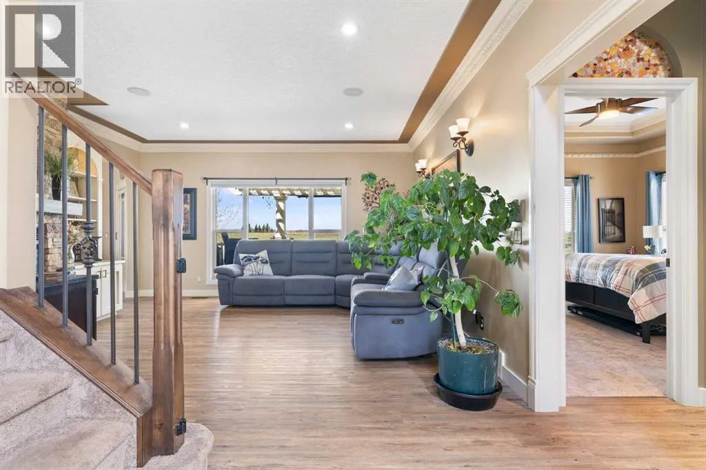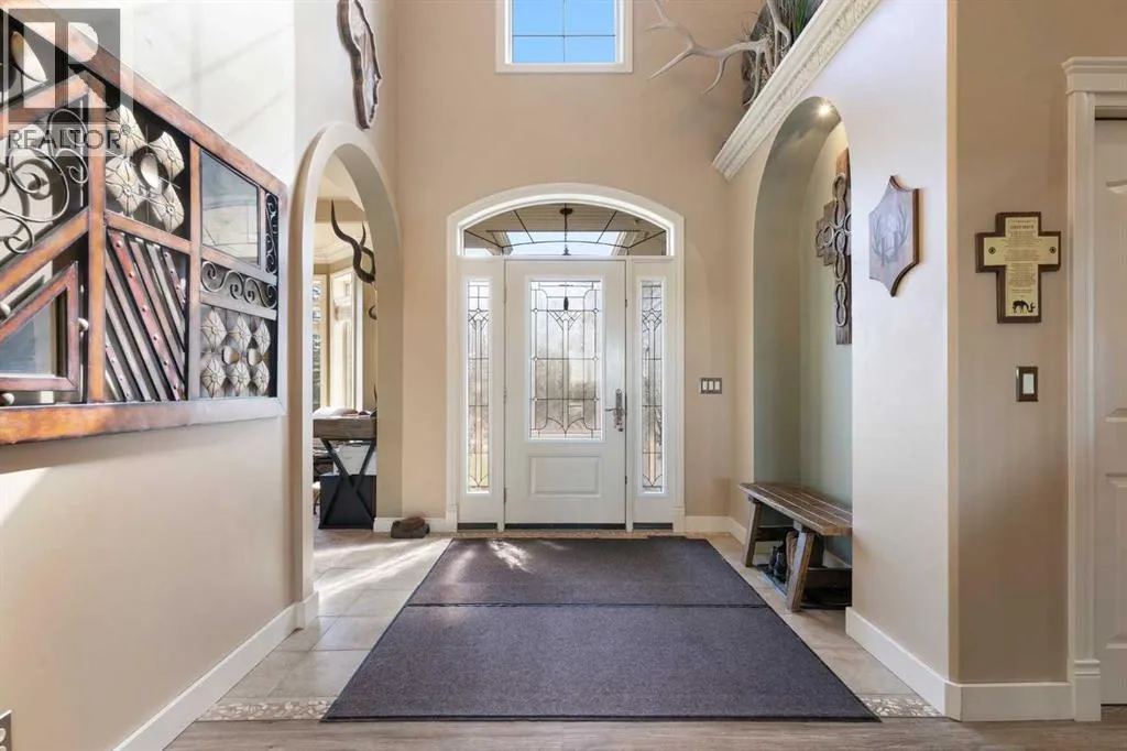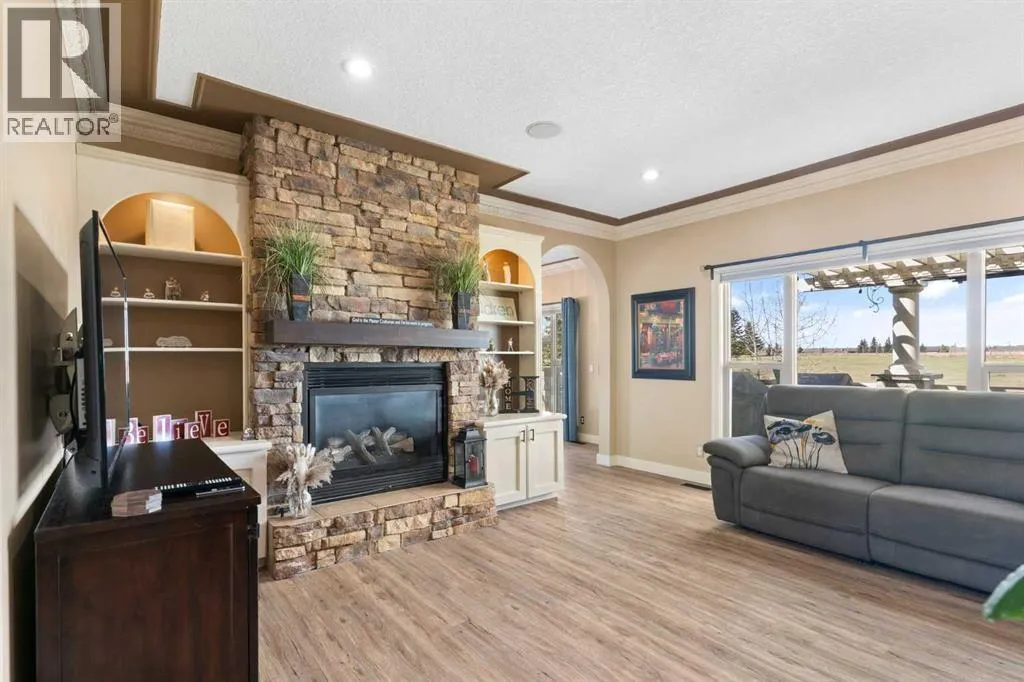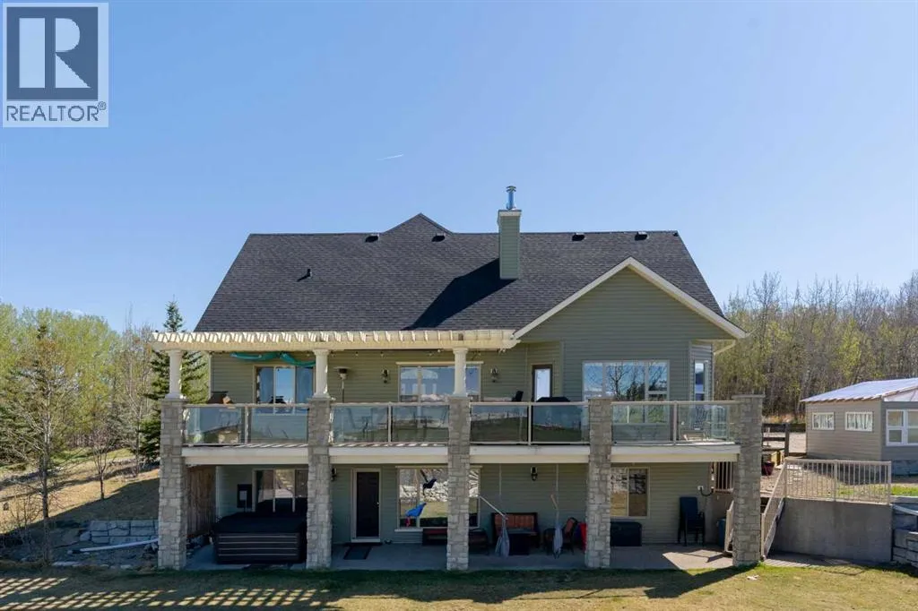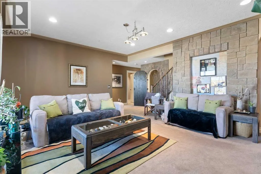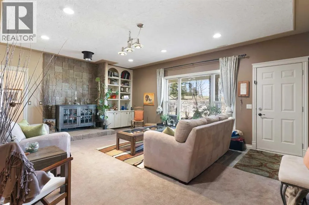 ***OPEN HOUSE THIS SATURDAY, MARCH 28th, FROM 1-3PM*** ** MOUNTAIN VIEWS** BUNGALOW** Welcome to this sensational estate nestled on 2.58 acres, offering breathtaking mountain views from your very own WEST FACING rear deck. From the moment you step inside this home youâre welcomed by a grand entrance featuring soaring ceilings and an abundance of natural light. The main level boasts a spacious mudroom leading to a secondary entrance, a convenient 2-piece powder room, a luxurious primary suite, and meticulous craftsmanship that is immediately apparent with the intricate crown moulding throughout . The primary bedroom features a European-inspired 4-piece ensuite bathroom designed for ultimate comfort and style. The kitchen is a showstopper with a stainless steel refrigerator and dishwasher updated in(2021), a beautiful ceramic tile backsplash, granite countertops, and a new oversized gas range(2024) with exquisite stone surround that is sure to take your breath away. Enjoy meals in the large dining area or step out onto the covered deck for al fresco dining with those highly sought after mountain views. You can also work from home in the beautifully appointed main-level office, complete with a cozy gas fireplace with a stunning hand crafted wood surround. Continuing the theme of comfort and elegance, the main level also features in-ceiling speakers and a sprawling living room anchored by another striking fireplace boasting a natural rock surroundâperfect for entertaining. Upstairs, you'll find two generously sized bedrooms, a full 4-piece bathroom, and a large storage spaceâideal for family living. The walkout basement is a true retreat, highlighted by a dramatic natural rock wall and a unique wooden door leading to your private in-home theatre. Additionally, this level offers three more spacious bedrooms, another 4-piece bathroom, and a massive recreational roomâideal for guests or extended family. The oversized double attached garage is a hobbyistâs dream with in-flo or heating and 40-amp service. Comfort is ensured year-round with air conditioning installed in 2024, a shingle replacement in 2017, and recent furnace upgrades that include a new flame sensor and gas valve and new DuradeK in 2025. This home offers the perfect blend of rustic charm, modern luxury, and functionalityâtruly a must-see. Book your private showing today! (id:27476)