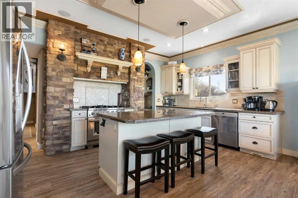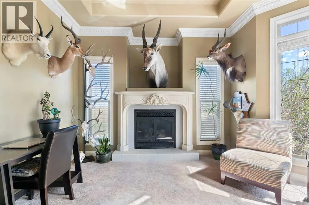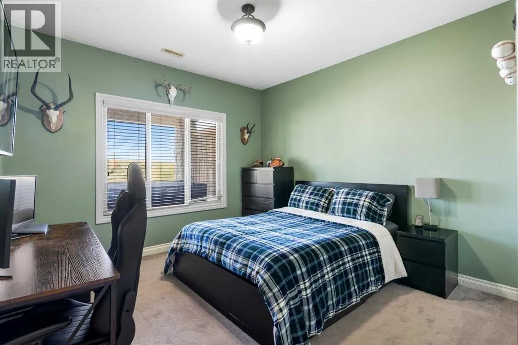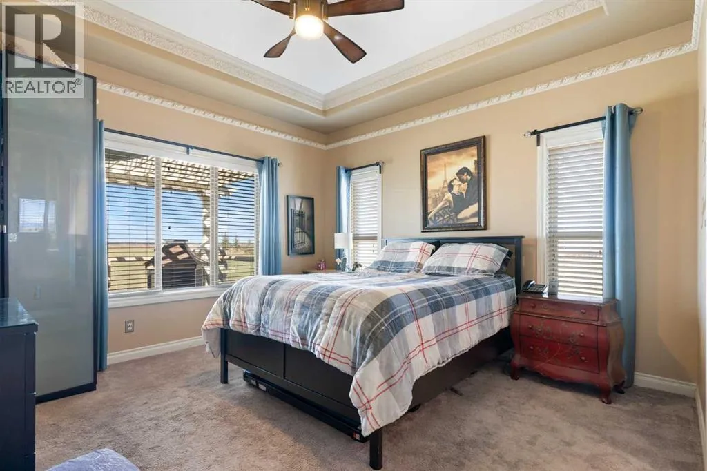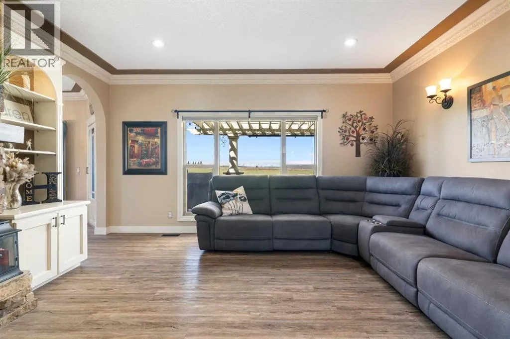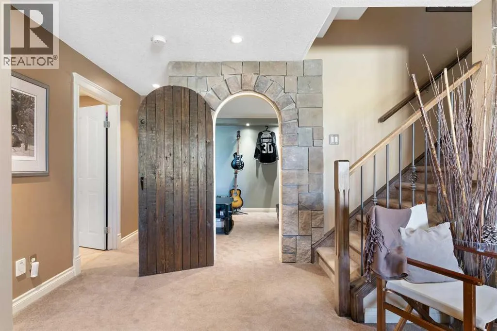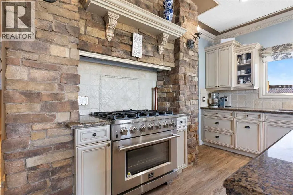 ***OPEN HOUSE THIS SATURDAY, MARCH 28th, FROM 1-3PM*** ** MOUNTAIN VIEWS** BUNGALOW** Welcome to this sensational estate nestled on 2.58 acres, offering breathtaking mountain views from your very own WEST FACING rear deck. From the moment you step inside this home youâre welcomed by a grand entrance featuring soaring ceilings and an abundance of natural light. The main level boasts a spacious mudroom leading to a secondary entrance, a convenient 2-piece powder room, a luxurious primary suite, and meticulous craftsmanship that is immediately apparent with the intricate crown moulding throughout . The primary bedroom features a European-inspired 4-piece ensuite bathroom designed for ultimate comfort and style. The kitchen is a showstopper with a stainless steel refrigerator and dishwasher updated in(2021), a beautiful ceramic tile backsplash, granite countertops, and a new oversized gas range(2024) with exquisite stone surround that is sure to take your breath away. Enjoy meals in the large dining area or step out onto the covered deck for al fresco dining with those highly sought after mountain views. You can also work from home in the beautifully appointed main-level office, complete with a cozy gas fireplace with a stunning hand crafted wood surround. Continuing the theme of comfort and elegance, the main level also features in-ceiling speakers and a sprawling living room anchored by another striking fireplace boasting a natural rock surroundâperfect for entertaining. Upstairs, you'll find two generously sized bedrooms, a full 4-piece bathroom, and a large storage spaceâideal for family living. The walkout basement is a true retreat, highlighted by a dramatic natural rock wall and a unique wooden door leading to your private in-home theatre. Additionally, this level offers three more spacious bedrooms, another 4-piece bathroom, and a massive recreational roomâideal for guests or extended family. The oversized double attached garage is a hobbyistâs dream with in-flo or heating and 40-amp service. Comfort is ensured year-round with air conditioning installed in 2024, a shingle replacement in 2017, and recent furnace upgrades that include a new flame sensor and gas valve and new DuradeK in 2025. This home offers the perfect blend of rustic charm, modern luxury, and functionalityâtruly a must-see. Book your private showing today! (id:27476)