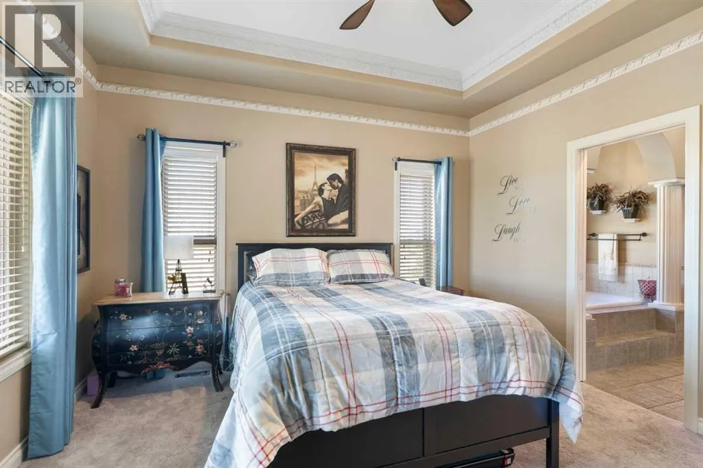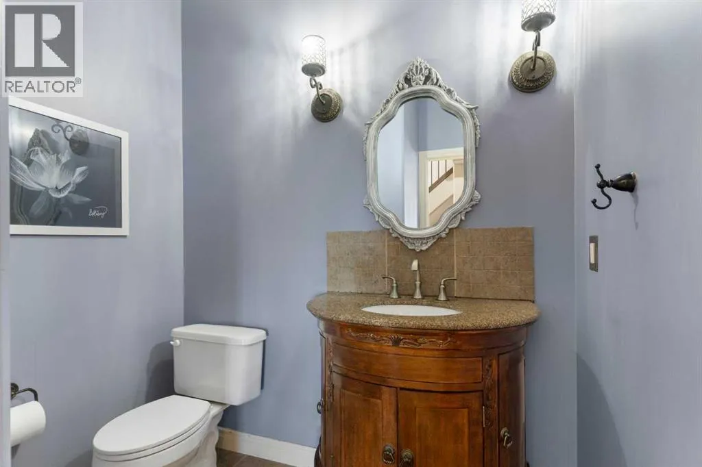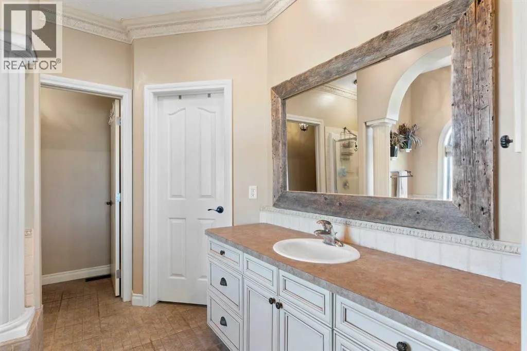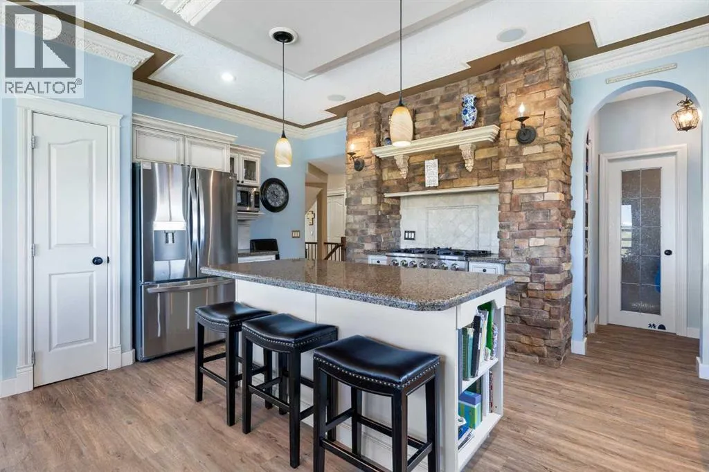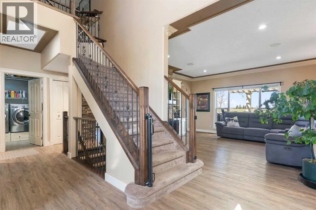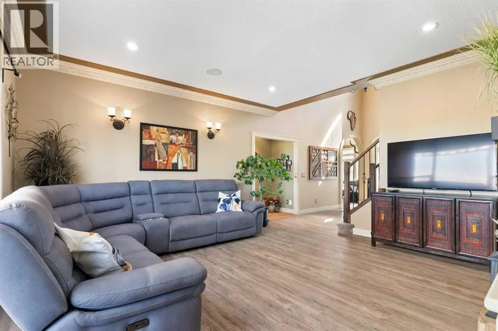 ***OPEN HOUSE THIS SATURDAY, MARCH 28th, FROM 1-3PM*** ** MOUNTAIN VIEWS** BUNGALOW** Welcome to this sensational estate nestled on 2.58 acres, offering breathtaking mountain views from your very own WEST FACING rear deck. From the moment you step inside this home youâre welcomed by a grand entrance featuring soaring ceilings and an abundance of natural light. The main level boasts a spacious mudroom leading to a secondary entrance, a convenient 2-piece powder room, a luxurious primary suite, and meticulous craftsmanship that is immediately apparent with the intricate crown moulding throughout . The primary bedroom features a European-inspired 4-piece ensuite bathroom designed for ultimate comfort and style. The kitchen is a showstopper with a stainless steel refrigerator and dishwasher updated in(2021), a beautiful ceramic tile backsplash, granite countertops, and a new oversized gas range(2024) with exquisite stone surround that is sure to take your breath away. Enjoy meals in the large dining area or step out onto the covered deck for al fresco dining with those highly sought after mountain views. You can also work from home in the beautifully appointed main-level office, complete with a cozy gas fireplace with a stunning hand crafted wood surround. Continuing the theme of comfort and elegance, the main level also features in-ceiling speakers and a sprawling living room anchored by another striking fireplace boasting a natural rock surroundâperfect for entertaining. Upstairs, you'll find two generously sized bedrooms, a full 4-piece bathroom, and a large storage spaceâideal for family living. The walkout basement is a true retreat, highlighted by a dramatic natural rock wall and a unique wooden door leading to your private in-home theatre. Additionally, this level offers three more spacious bedrooms, another 4-piece bathroom, and a massive recreational roomâideal for guests or extended family. The oversized double attached garage is a hobbyistâs dream with in-flo or heating and 40-amp service. Comfort is ensured year-round with air conditioning installed in 2024, a shingle replacement in 2017, and recent furnace upgrades that include a new flame sensor and gas valve and new DuradeK in 2025. This home offers the perfect blend of rustic charm, modern luxury, and functionalityâtruly a must-see. Book your private showing today! (id:27476)
