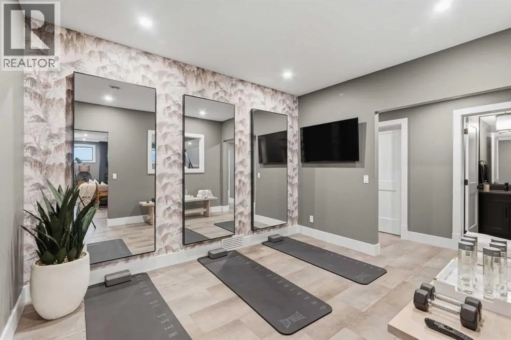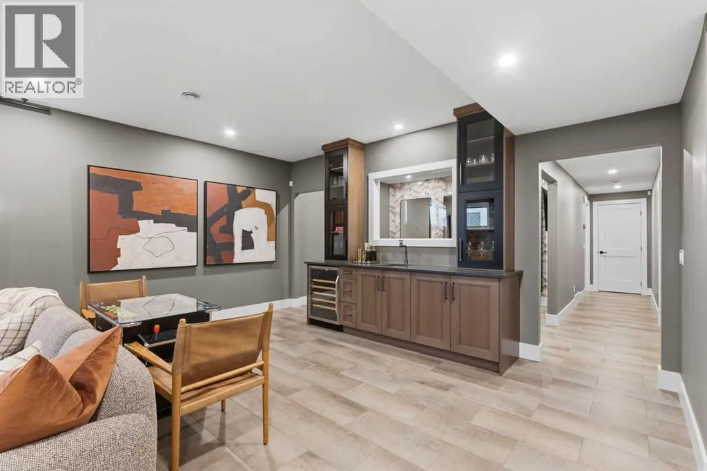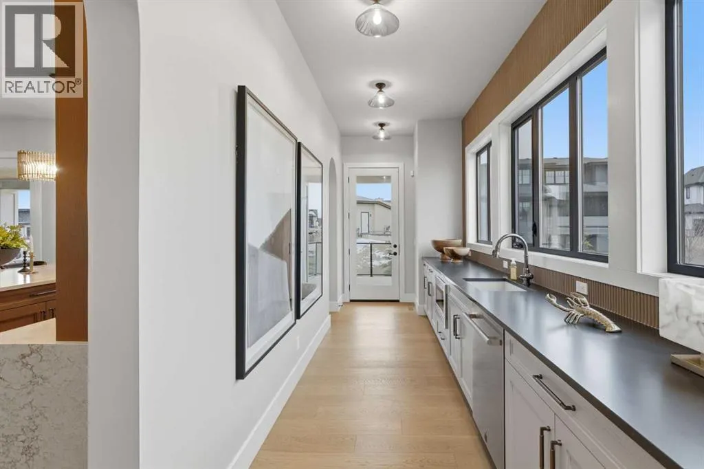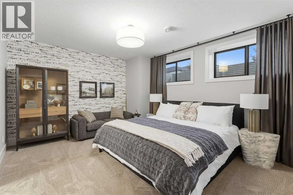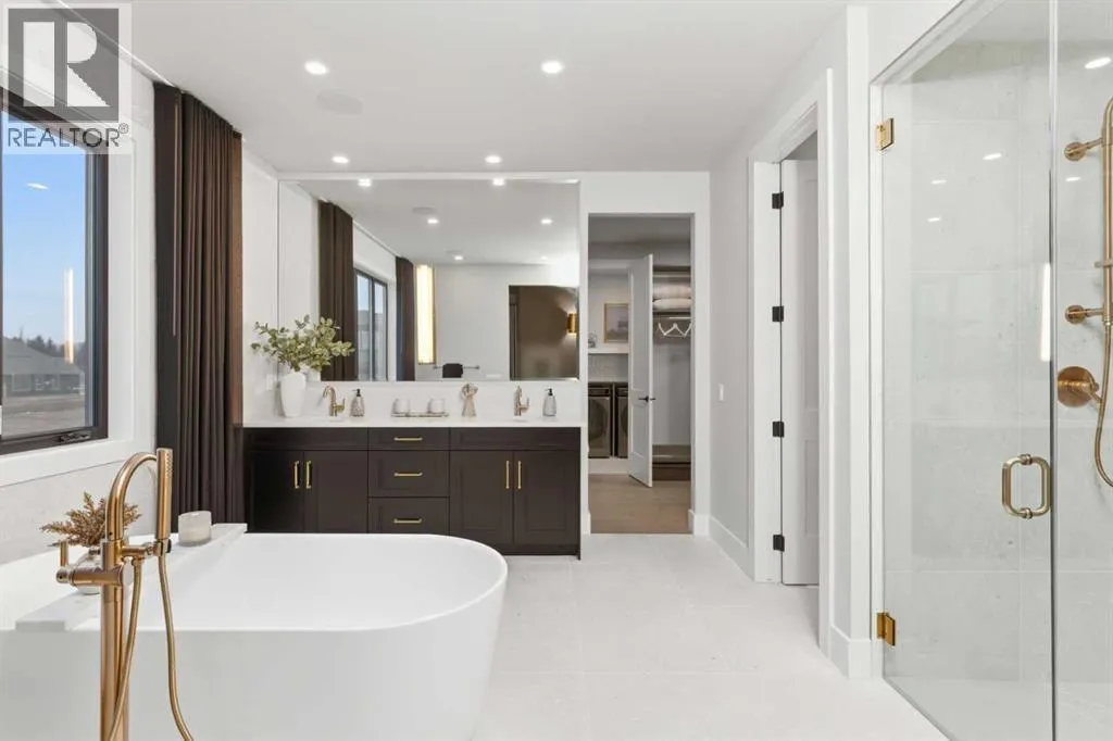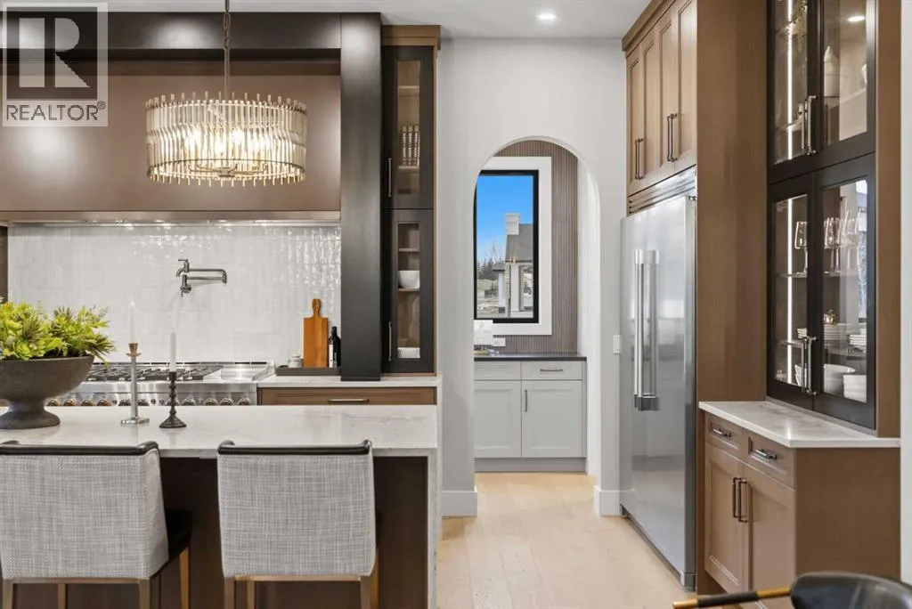A rare opportunity to own a former Crystal Creek LOTTERY HOME in Watermark, offered FULLY FURNISHED and completely turn key, where every detail has been professionally curated and included. Set on a large lot with a sunny south facing backyard, this 5,652 sq ft fully developed luxury home with triple car garage makes an immediate impression. Soaring open to above ceilings, full height windows, and a statement fireplace define the main living space. The main level flows effortlessly through a designer kitchen with oversized island, premium appliances, butlerâs pantry, and an elegant dining area framed by architectural arches and custom lighting, while a private office, functional mudroom, and thoughtful storage round out the floor. Upstairs, the primary retreat feels like a boutique hotel, complete with a spa inspired ensuite with in-floor heating, freestanding tub, oversized shower, fully built out walk in closet, and a private balcony overlooking the south facing yard, a quiet spot for morning coffee or winding down at the end of the day. Additional bedrooms offer their own character and access to ensuites, while the upper lounge overlooks the great room below, creating a bright and open second living space. The fully developed basement is designed for entertaining with a large rec room, bar, gym or flex space, and guest bedroom. Built for comfort and efficiency, this home features dual furnaces, dual A/C units, tankless hot water, HRV system, water softener, audio system, Wi-Fi extenders and full new home warranty coverage for complete peace of mind. Outside, the property features Gemstone lights, is fully landscaped with irrigation system and ready to enjoy from day one. Located just outside Calgary, the prestigious community of Watermark offers estate living with quick access to the city, mountain views, pathways, and a level of privacy that is increasingly hard to find. Homes of this caliber, fully finished and furnished, rarely become available. Book your priv ate showing and experience it in person. (id:27476)