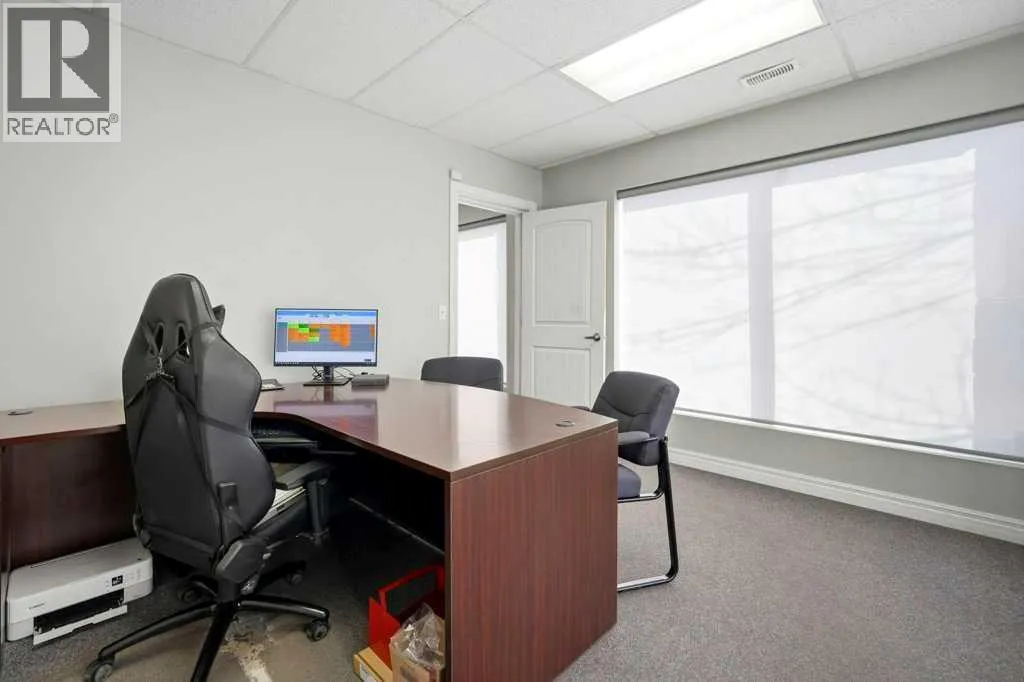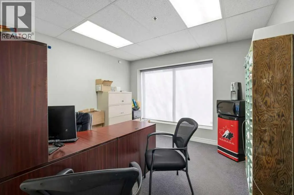 Discover the perfect blend of office, warehouse, and secure outdoor storage. This 2,965 sq. ft. industrial bay is designed for high-functionality, featuring a rare 3,000 sq. ft. fully fenced storage yard and significant upside potential for additional office development or rental income. Open Warehouse: 1,585 sq. ft. of clear-span workspace. Loading: Oversized 12â x 16â drive-in door, ideal for larger vehicles and equipment; 200 Amp, 3-phase power to support manufacturing or heavy shop tools. Private, 3,000 sq. ft. fenced yard provides a secure solution for fleet parking or material storage.office area features a large, versatile reception area (easily used as open-concept office space), two private offices, a washroom, and two dedicated storage rooms. The "Value-Add" Mezzanine: A substantial 888 sq. ft. mezzanine, this space can be finished to create additional offices or potentially partitioned as a separate income-producing unit. (id:27476)