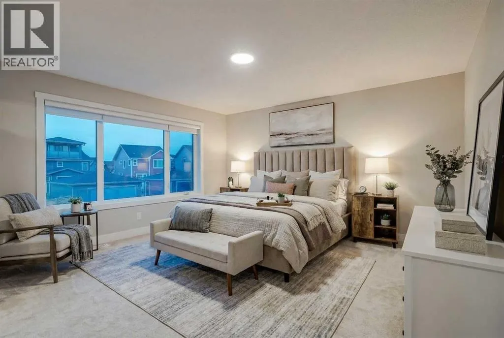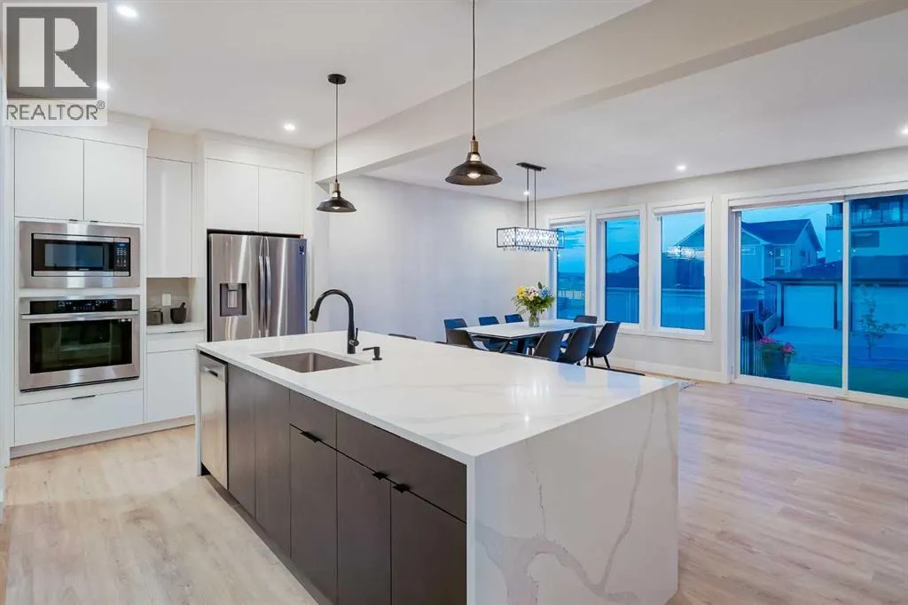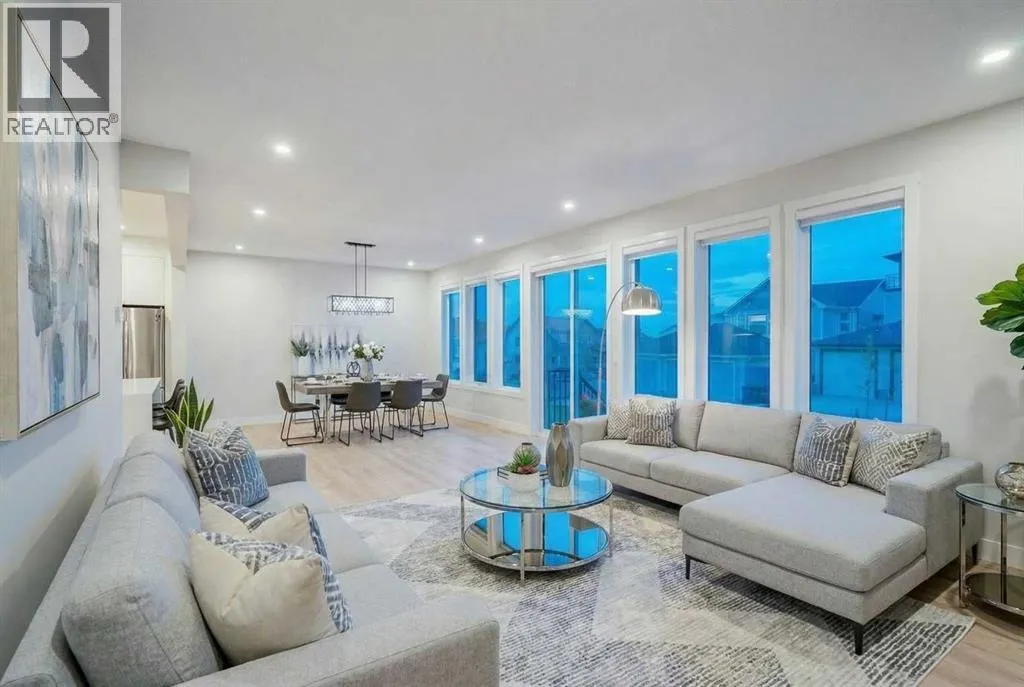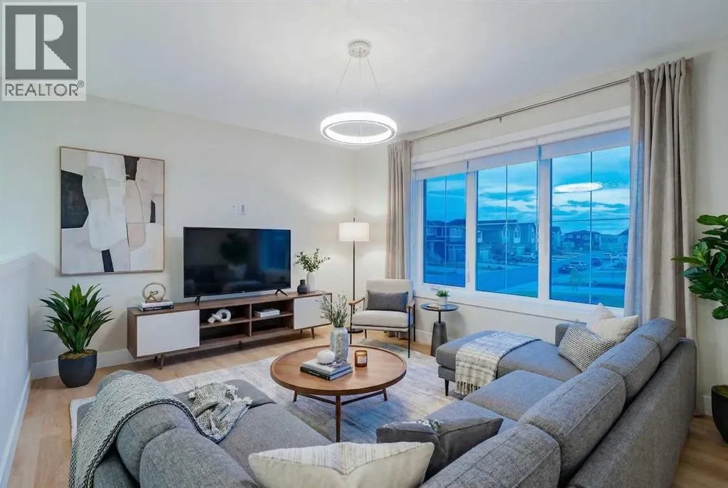 Welcome to this beautifully crafted 2022-built home in the award-winning community of Harmony, offering over 4,000 sqft of thoughtfully designed living space with luxurious finishes throughout. From the moment you walk in, youâll notice the attention to detailâlarge windows on the main floor flood the home with natural light, highlighting the elegant design of the spacious living room and dining area, perfect for family gatherings and entertaining. The main floor also features a dedicated office, ideal for working from home in peace and comfort. The heart of the home is a showstopper: a stunning kitchen with a sleek stovetop and a private spice kitchen equipped with a gas range, giving you the flexibility to cook and entertain with ease. Upstairs, youâll find a bright and open bonus room, perfect for a second lounge or kidsâ play area. The primary bedroom is a true retreat with custom-fitted closets and a spa-inspired ensuite featuring double vanities and high-end finishes. The fully developed basement offers two spacious bedrooms and has been roughed-in with all plumbing extensions in place for a future kitchen, making it an excellent option for extended family. The home also includes central air conditioning to keep you comfortable all year round. Situated in Harmony, youâll enjoy access to the lake, beach, community fire pits, beach volleyball court, skating rink, scenic pathways, parks, and an unmatched lifestyle just minutes from the city and steps from the mountains. This is more than just a homeâitâs a lifestyle. (id:27476)