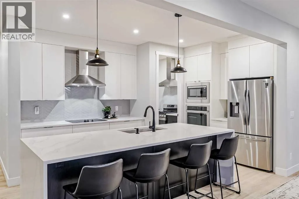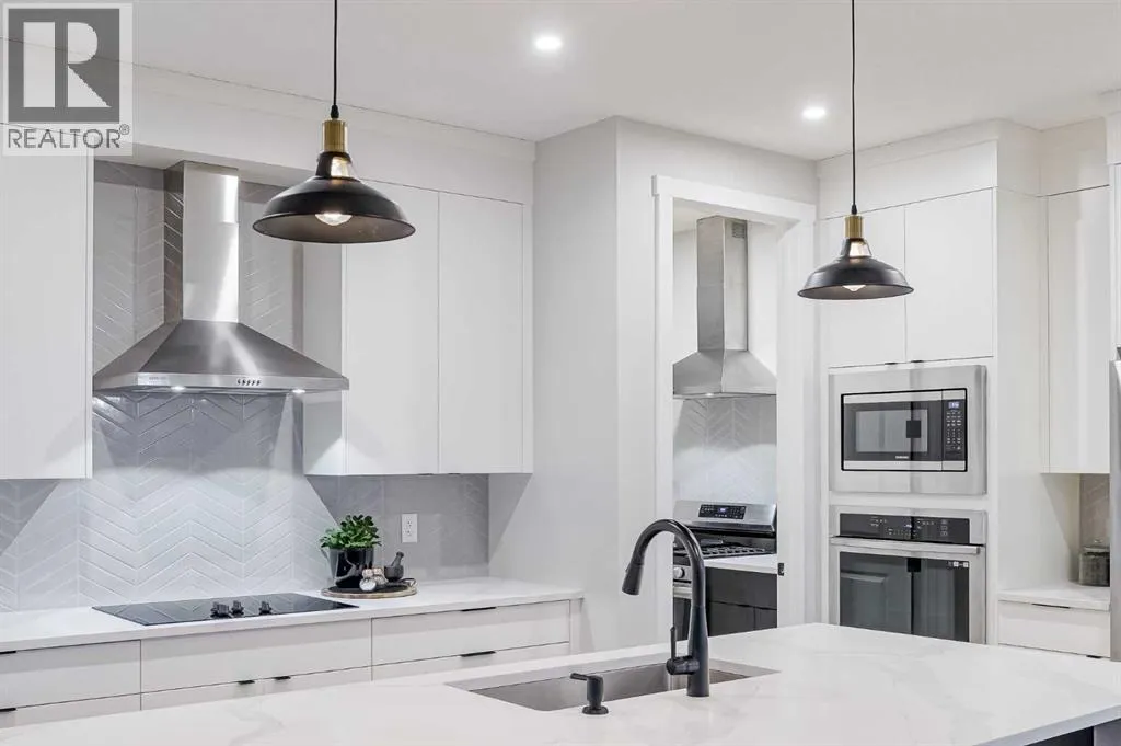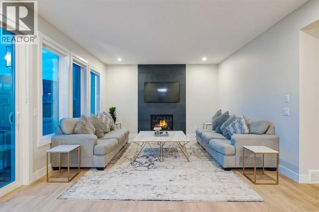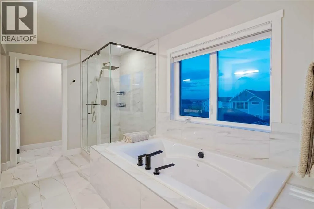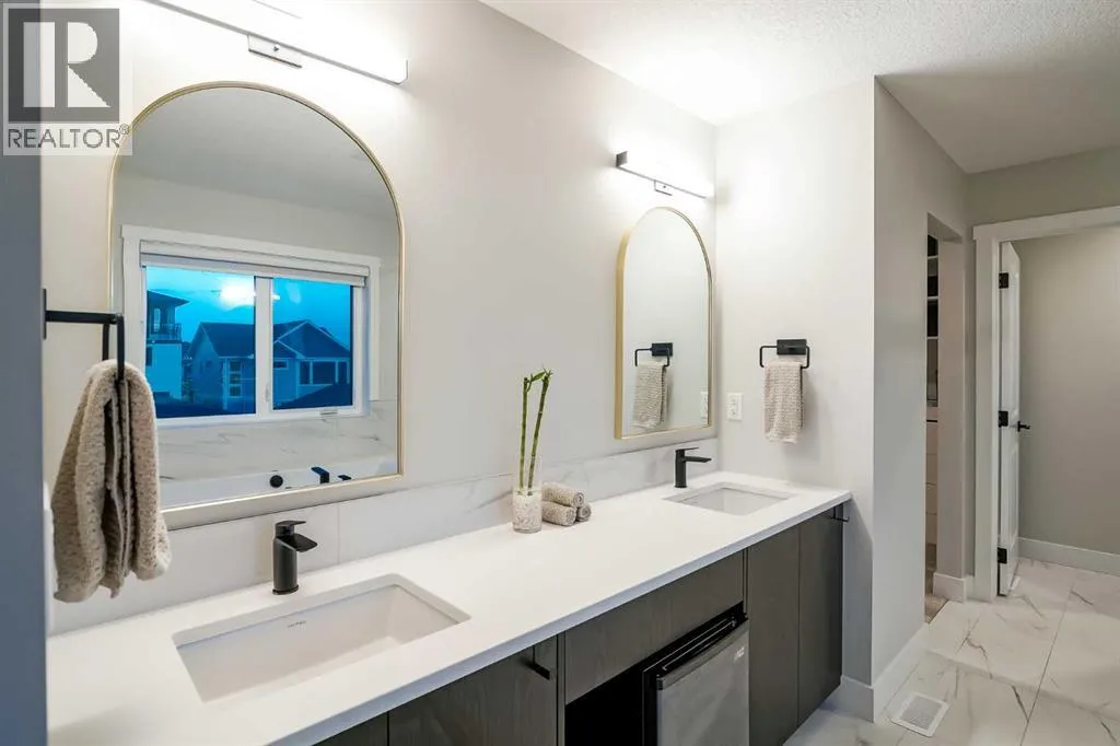 Welcome to this beautifully crafted 2022-built home in the award-winning community of Harmony, offering over 4,000 sqft of thoughtfully designed living space with luxurious finishes throughout. From the moment you walk in, youâll notice the attention to detailâlarge windows on the main floor flood the home with natural light, highlighting the elegant design of the spacious living room and dining area, perfect for family gatherings and entertaining. The main floor also features a dedicated office, ideal for working from home in peace and comfort. The heart of the home is a showstopper: a stunning kitchen with a sleek stovetop and a private spice kitchen equipped with a gas range, giving you the flexibility to cook and entertain with ease. Upstairs, youâll find a bright and open bonus room, perfect for a second lounge or kidsâ play area. The primary bedroom is a true retreat with custom-fitted closets and a spa-inspired ensuite featuring double vanities and high-end finishes. The fully developed basement offers two spacious bedrooms and has been roughed-in with all plumbing extensions in place for a future kitchen, making it an excellent option for extended family. The home also includes central air conditioning to keep you comfortable all year round. Situated in Harmony, youâll enjoy access to the lake, beach, community fire pits, beach volleyball court, skating rink, scenic pathways, parks, and an unmatched lifestyle just minutes from the city and steps from the mountains. This is more than just a homeâitâs a lifestyle. (id:27476)