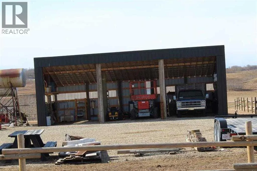 This is a mountain view full 1/4 section in the north Bearspaw/ south Lochend area north and west of Calgary. It is 6 miles north of the 1A Hwy (Crowchild Trail). Because of the access, it is very private and difficult for unknown persons to arrive unannounced . The property has a large shop with two outside covered areas for trailers or motor homes. The shop is serviced with power, well, concrete floors, sewage system, in-floor heating, washroom, and natural gas. The building has in floor heating and two large motorhome doors as well as 2man doors. There is a 24 x 40 three stall shelter with the opening to the east for equipment storage. The shop overall is 64 x 80. There are two 16 x 64 drive through sides with gravel bases with 16 x 16 openings at each end. The shop has 2 - 16 x 16 insulated equipment doors one the east and one on the west end. There are no pictures of the interior. Viewings will require realtor assistance. (id:27476)