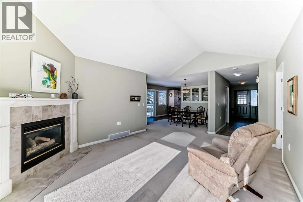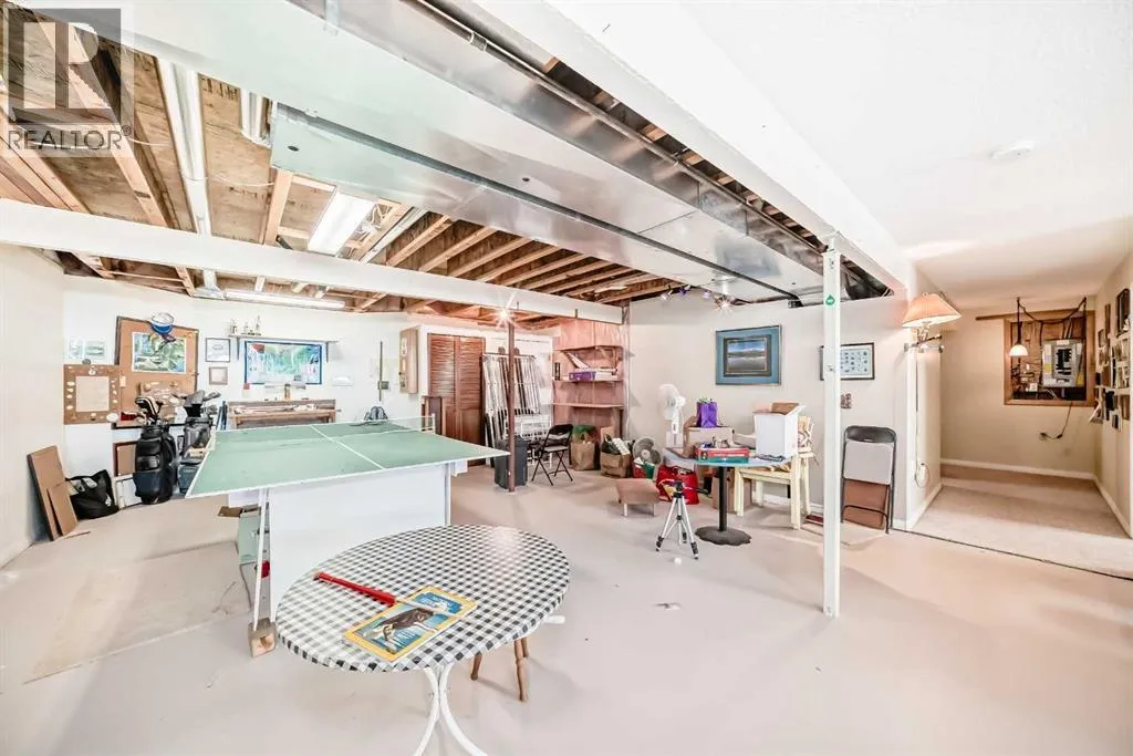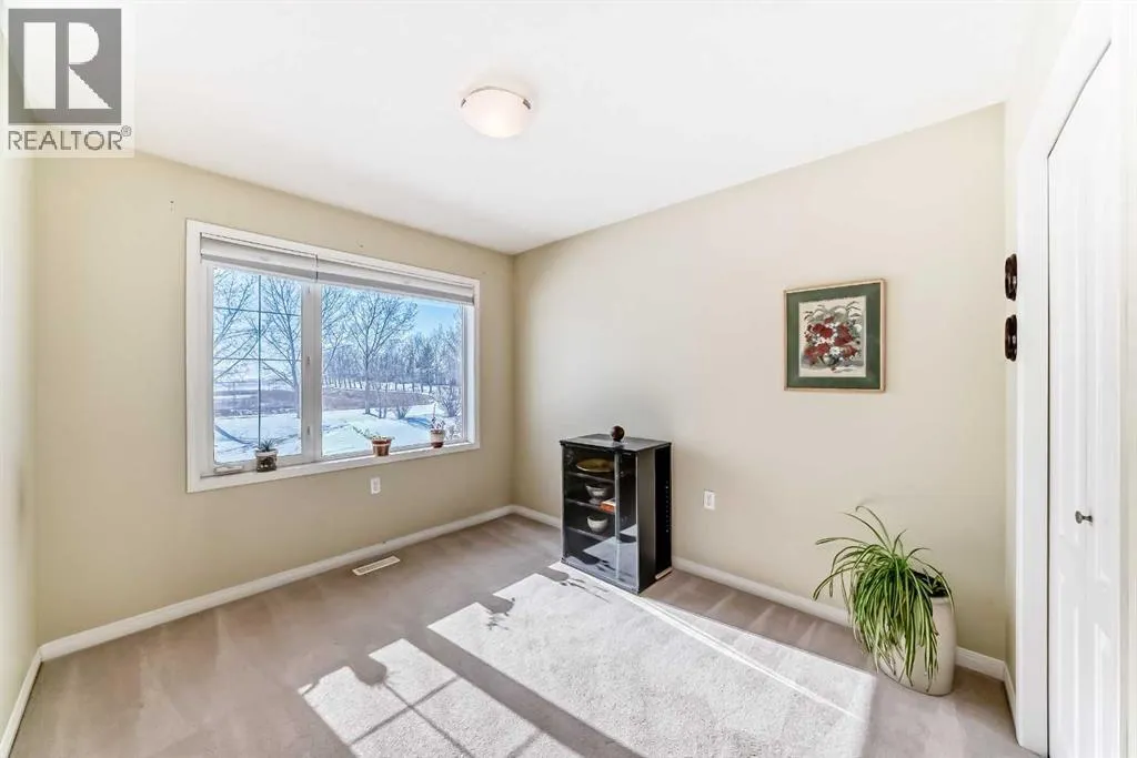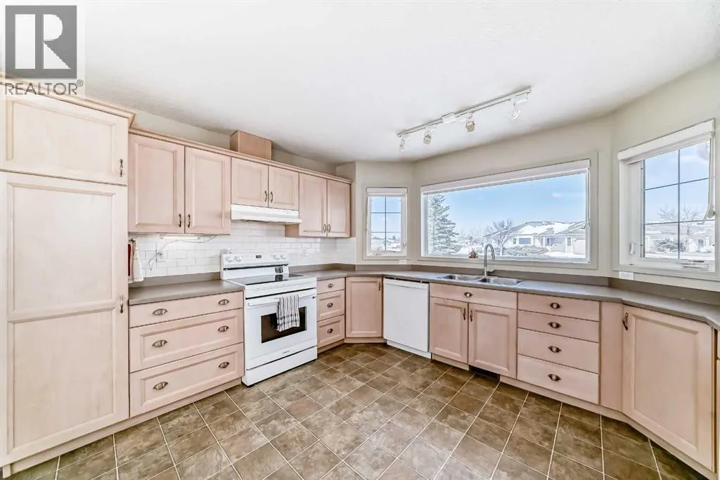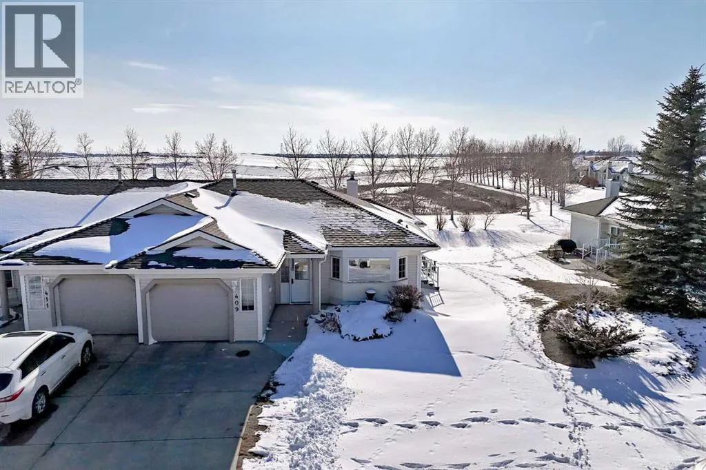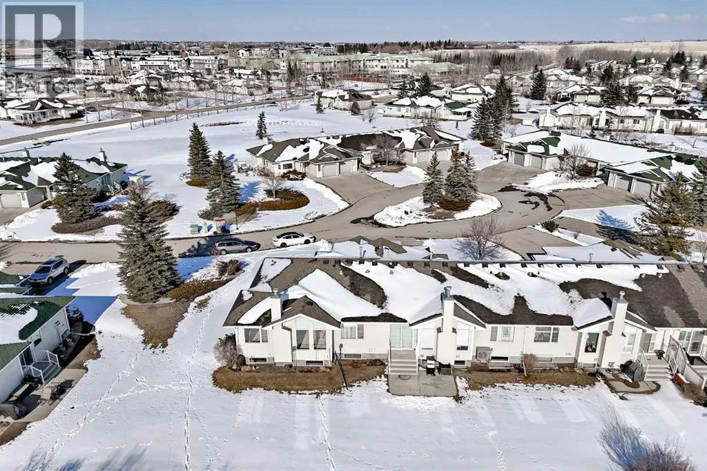 Welcome to quiet living in Prince of Peace Village. Country living beside the Calgary city limits. A 55+ adult complex with 175 bungalow villas, some times referred to as Calgary's Oasis. Close to shopping, restaurants and medical facilities etc. This bright 1168 sq.ft bungalow has 2 bedrooms, 2 full bathrooms, a spacious kitchen with plenty of cupboard space and built-ins, a bright dining room, a large living room with a gas fireplace, a laundry room, all on the main floor. A full basement, partially completed and RI plumbing for a full bathroom and a 3rd bedroom. The furnace, hot water tank and sump pump are all covered in the condo fees for repair and/or replacement. A single front drive garage has a long driveway for guest or additional parking. The location of this unit is unique in that it backs onto a natural pond and the entire village has miles of walking paths with resting benches along the way. This unit is easy to show and is available for quick possession (id:27476)