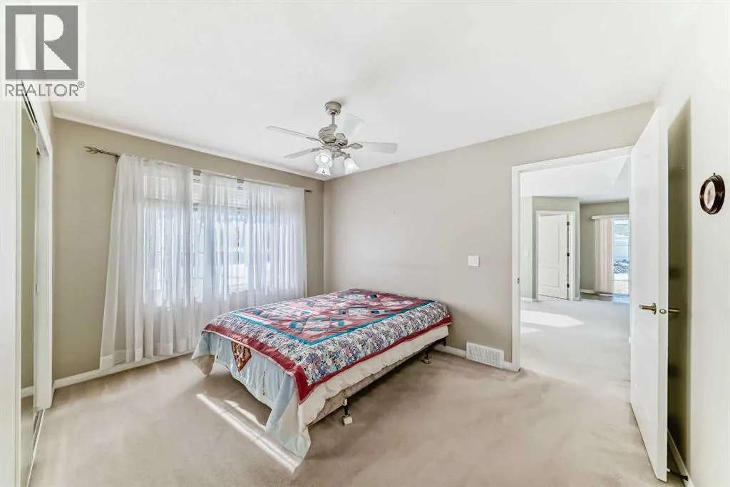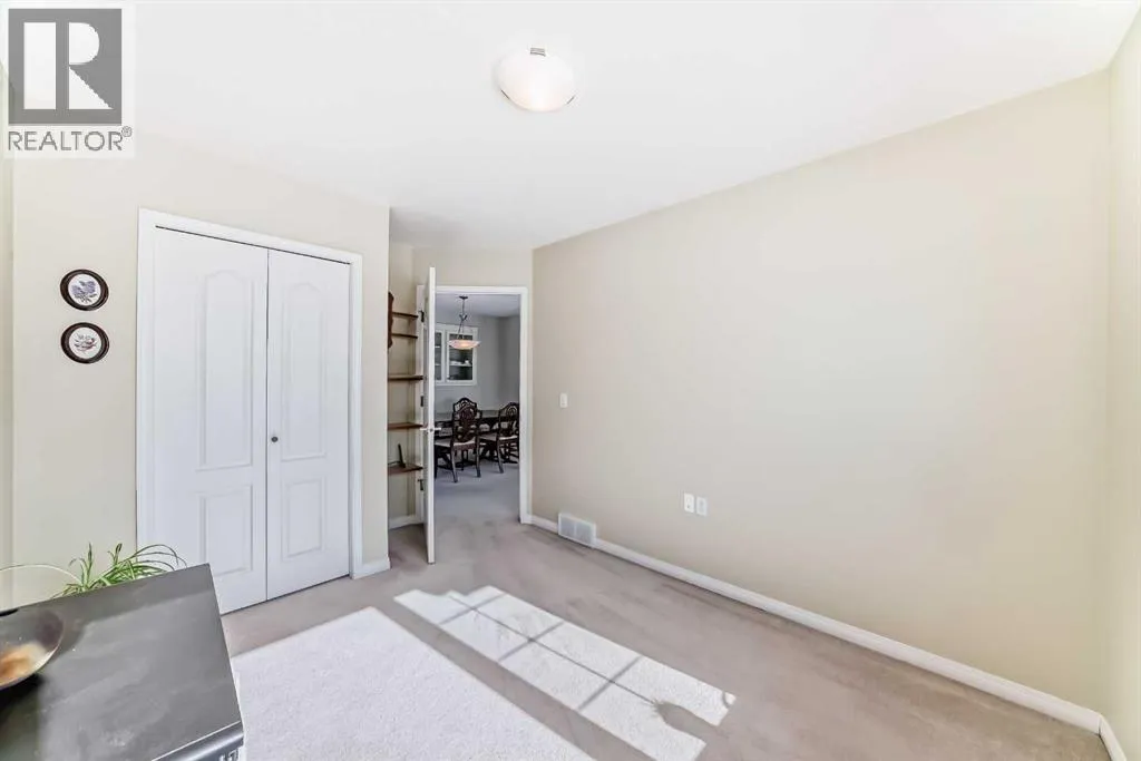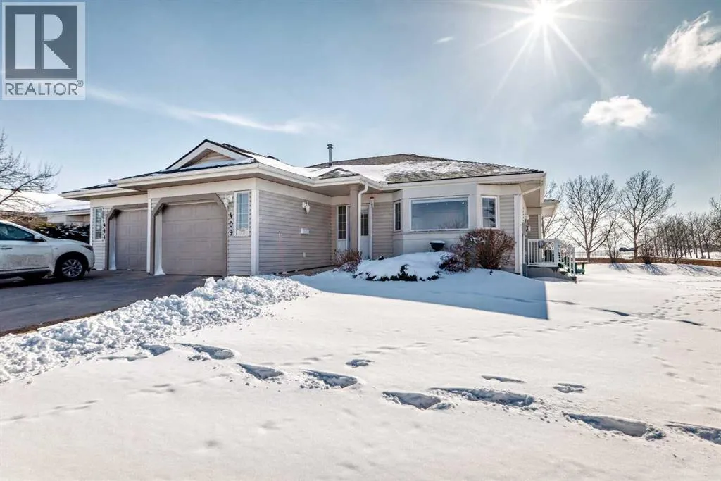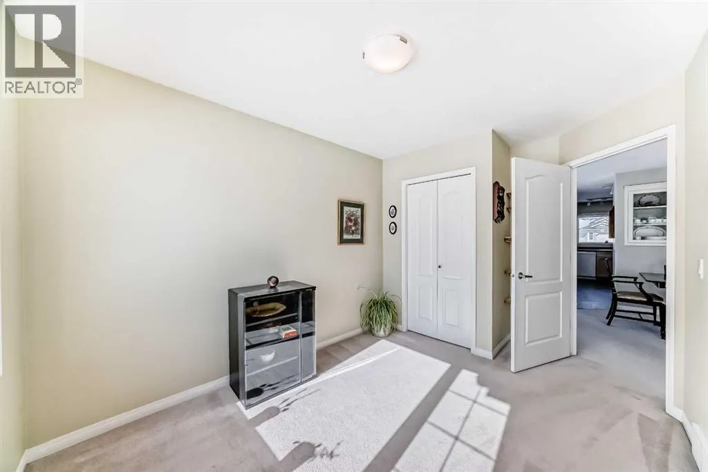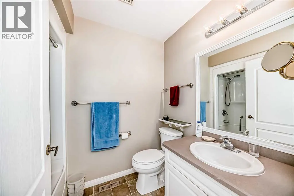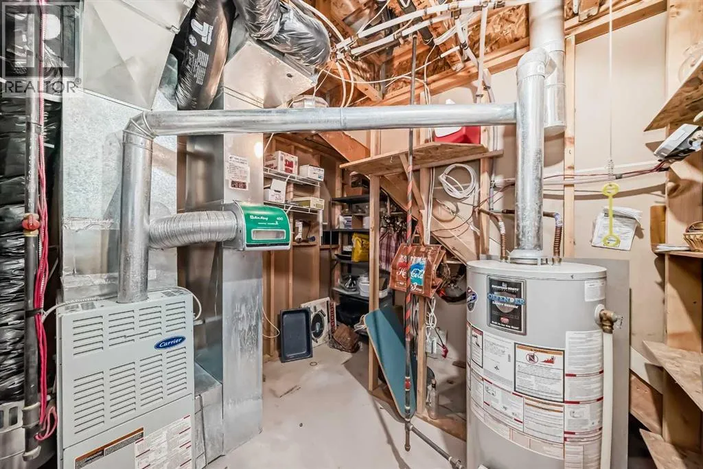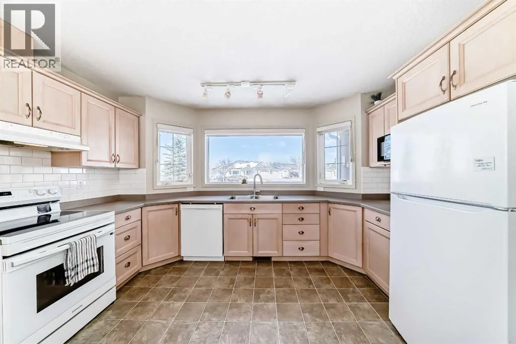 Welcome to quiet living in Prince of Peace Village. Country living beside the Calgary city limits. A 55+ adult complex with 175 bungalow villas, some times referred to as Calgary's Oasis. Close to shopping, restaurants and medical facilities etc. This bright 1168 sq.ft bungalow has 2 bedrooms, 2 full bathrooms, a spacious kitchen with plenty of cupboard space and built-ins, a bright dining room, a large living room with a gas fireplace, a laundry room, all on the main floor. A full basement, partially completed and RI plumbing for a full bathroom and a 3rd bedroom. The furnace, hot water tank and sump pump are all covered in the condo fees for repair and/or replacement. A single front drive garage has a long driveway for guest or additional parking. The location of this unit is unique in that it backs onto a natural pond and the entire village has miles of walking paths with resting benches along the way. This unit is easy to show and is available for quick possession (id:27476)