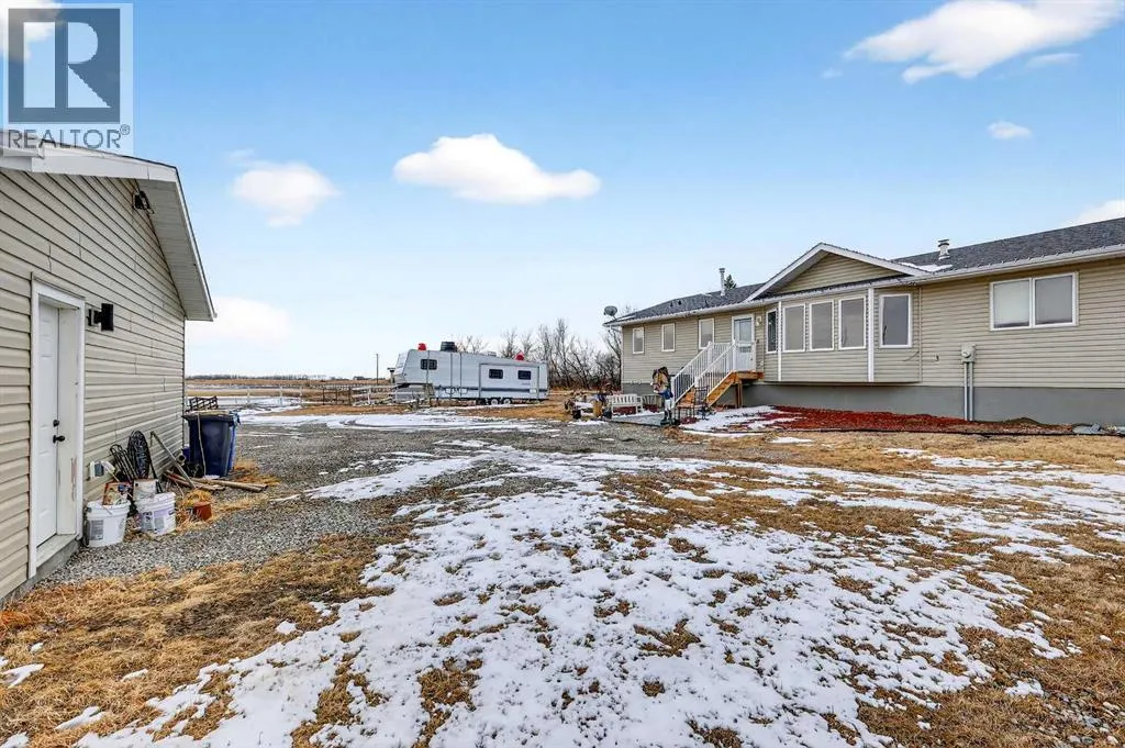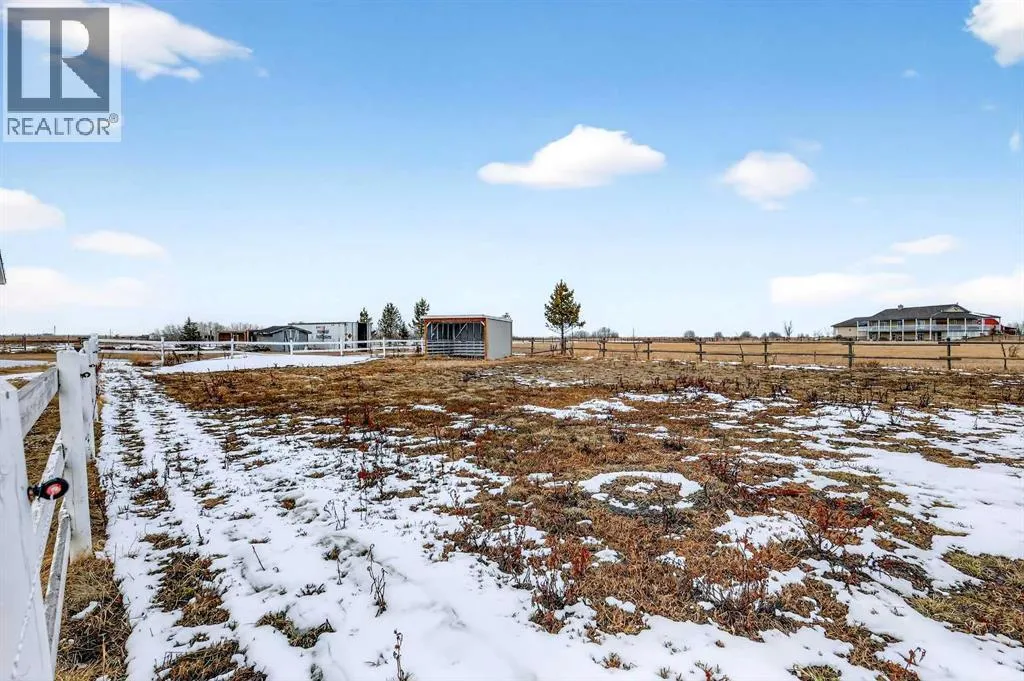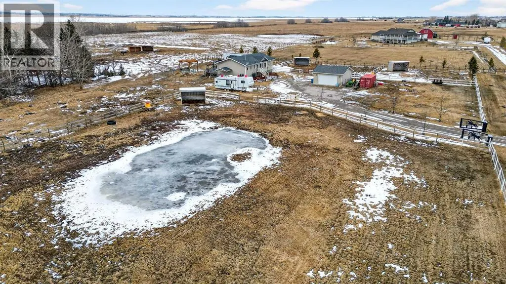 Want to raise your family in the peace & quiet of the country with room for your horses but still be within 20 minutes of Calgary?? Look no further. This 4.18 acre property comes complete with a fully finished bungalow with a walk up basement offering over 3,000 sq ft of developed living space and it is fully set up for your horses. Located just outside of Langdon youâll get the best of both worlds being fully immersed in a country lifestyle with city convenience just minutes away. The 5 bedroom bungalow was built in 2004 and includes the bonus of central air conditioning. Youâll love the super functional open plan layout with vaulted ceilings, vinyl flooring and tons of windows providing an abundance of natural light. The kitchen is finished in popular 2 tone cabinetry and black stainless steel appliances plus there is a corner pantry and an island with breakfast bar for extra seating. A generous dining area is just next to the kitchen with convenient access to the back deck for grilling and outdoor entertaining. Both the kitchen and dining room are open to the main living area which includes a cozy gas fireplace for your family to gather around in the cooler months. Youâll find 3 bedrooms on this main level including the primary with its own 5 pc ensuite, walk-in closet and private access to the spacious back deck. The other 2 bedrooms share the main 4 pc bath and the laundry room is also conveniently located on this level. The fully finished lower level with walk up has 2 more bedrooms for a grand total of 5. A nice sized recreation area and 3 pc bath make this the perfect retreat for your teenagers or other family members to call their own. In the West facing yard youâll enjoy a large stamped concrete patio with pergola in addition to your large back deck making this the ultimate place to spend time with family or entertain guests. The large double detached garage has electric heat perfect for a handyman, hobbyist or car enthusiast. There is plenty of room to pa rk all of your toys and there are hook ups for your RV or for a guest. You and your horses can live the dream on this property with several fenced paddocks of varying sizes, 3 horse shelters, year round automated waterers by Ritchie, 2 frost free water hydrants, horse tie ups behind the garage and more. This property is fully fenced with automatic gate securing your belongings. If the country is calling your name donât miss your chance to make this one home. (id:27476)