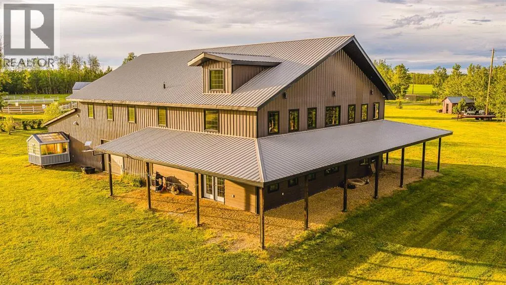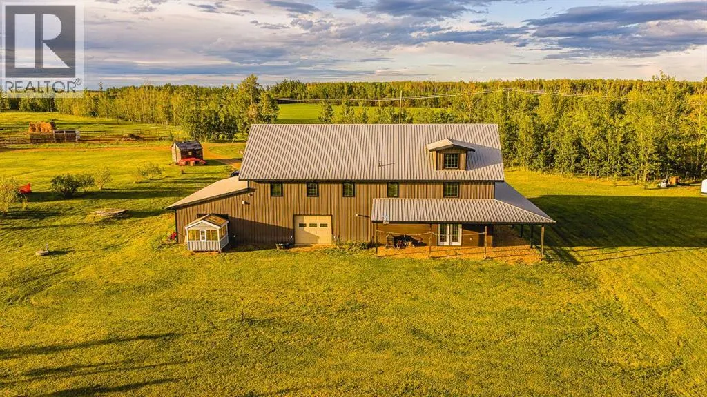Welcome to Your Private Equestrian Paradise on 160 Acres in Saddle Hills County! Dreaming of wide-open spaces, endless riding trails on your own property, and a luxurious country home? This rare 160-acre retreat offers a perfect blend of forest, fenced pastures, and everything you need for both horse lovers and outdoor enthusiasts. Built in 2014, the stunning home welcomes you with an open-concept layout featuring warm chocolate cabinetry, stainless steel appliances, granite countertops, and a massive eat-up bar that seats eight â perfect for hosting friends after a day on the trails. The spacious living room opens directly to the patio, making indoor-outdoor living a breeze. Downstairs, enjoy stamped concrete flooring with in-floor heating throughout for cozy winter nights. There's a bedroom and full 3-piece bathroom with shower, plus a functional laundry area designed for work clothes â no mess in the main living areas. Upstairs, the airy primary suite is open to below, with a luxurious ensuite boasting a dual vanity, two-person tiled shower, soaking tub, and heated floors for spa-like comfort. The primary boasts an extra-ordinary long closet and a small office area as well. Horse facilities include a heated barn with water, sand arena, exercise area, and multiple fenced pastures ready for your herd. The greenhouse and large garden make farm-to-table living easy, and two dugouts ensure plenty of water for livestock. The massive shop is a dream for any hobbyist or professional, with 18 ft ceilings, multiple oversized overhead doors (14x14 ft, 10x8 ft, and two 8x8 ft), 220V power, plumbing for in-floor heating (boiler required), overhead heater, and a huge loft mezzanine with a half bath. Additional features: Two laundry setups (one in the primary suite, one by the shop entry), Natural gas heating and water cisterns (municipal water is available and application is in progress), Greenhouse & garden for self-sufficient living. Whether you're a couple looking for a pe aceful retreat or a family dreaming of wide-open freedom and equestrian adventures, this property offers unmatched space and amenities. Why settle for ordinary when you can have your own private 160-acre oasis; perfect for work, play and relaxation. Why Saddle Hills County? Located in Albertaâs picturesque Peace Country, Saddle Hills County offers endless opportunities for outdoor adventure and peaceful rural living. Known for its strong agricultural roots and warm community spirit, the region features breathtaking wildlife, rolling hills, and nearby provincial parks like Moonshine Lake and Dunvegan West Wildland Parkâ perfect for hiking, hunting, or simply unwinding in nature. With reliable natural gas service, ongoing infrastructure improvements (including fibre internet expansion and municipal water hookups), you truly get the best of both worlds: rural serenity with modern comforts. This property delivers unmatched space, freedom, and lifestyle. (id:27476)
