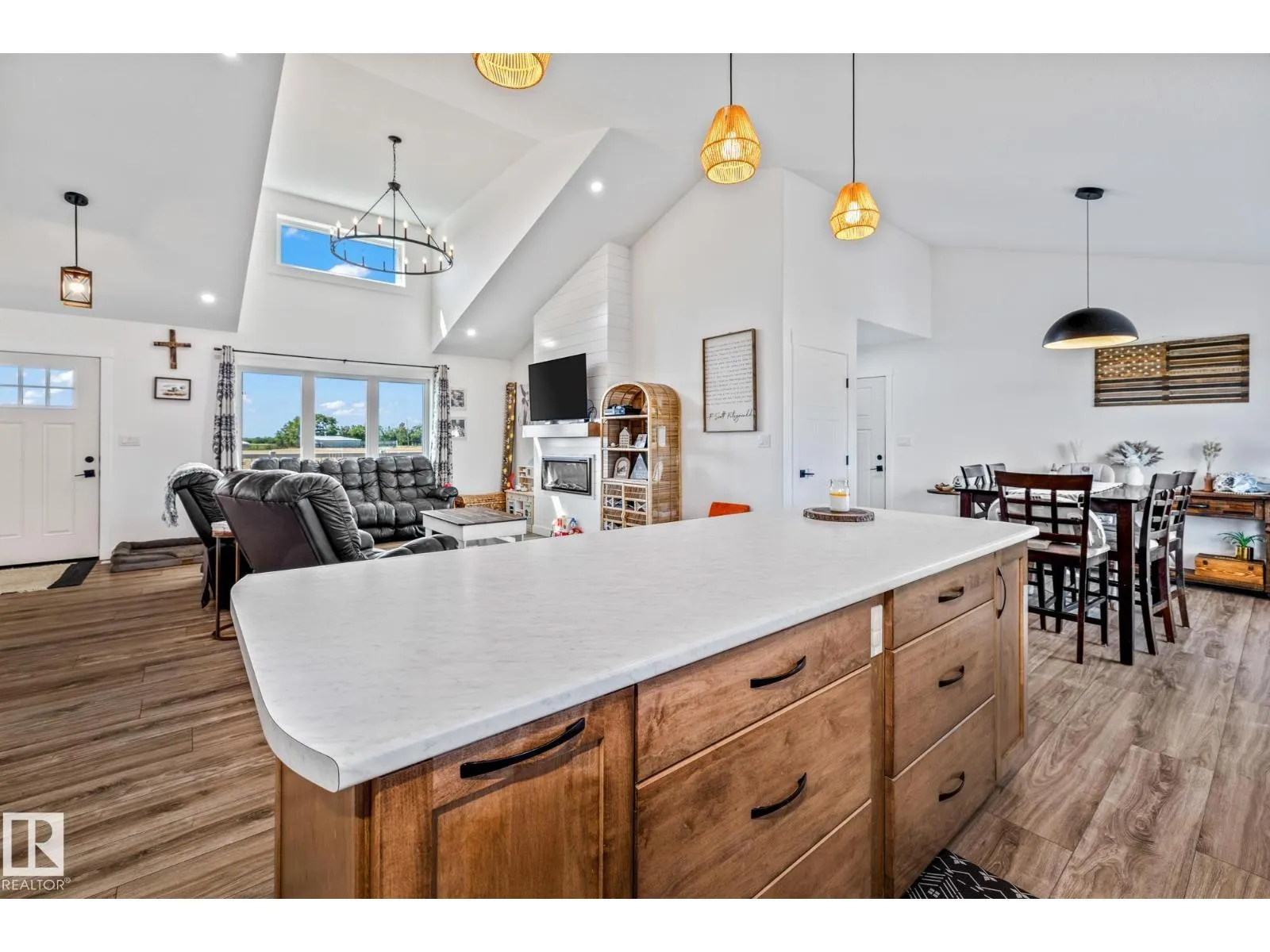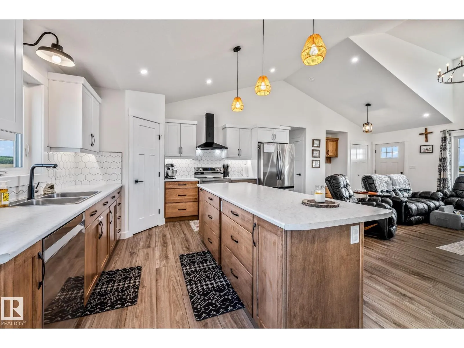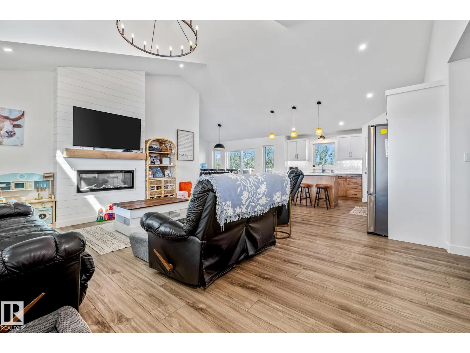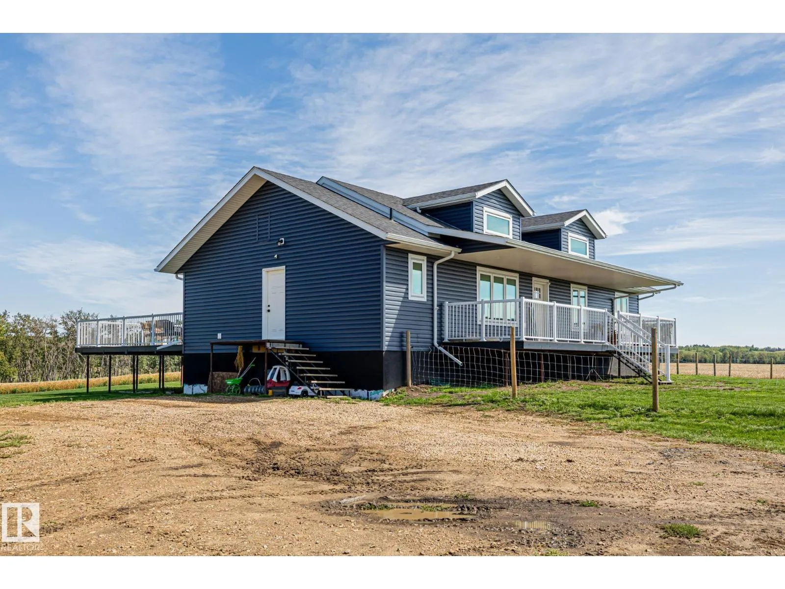 Enjoy peaceful acreage living just minutes from Smoky Lake on this stunning 12.38-acre property featuring a brand new bungalow with soaring vaulted ceilings and an abundance of natural light. This beautifully designed 3 bed, 2.5 bath home offers modern farmhouse charm with a spacious open-concept layout, beautiful countertops, luxury vinyl plank flooring, and a cozy fireplace in the living room. The bright kitchen includes stainless steel appliances, a large island with seating, and sleek two-tone cabinetry. The private primary suite offers a walk-in closet and elegant ensuite. Outside, enjoy wrap-around views of rolling fields, a massive deck, and fully fenced yard space perfect for kids or pets. Ideal for families or anyone looking to enjoy country living with modern comforts. (id:27476)