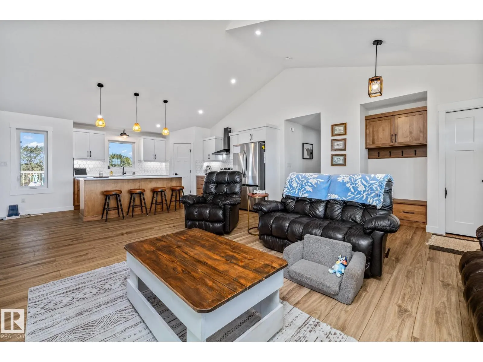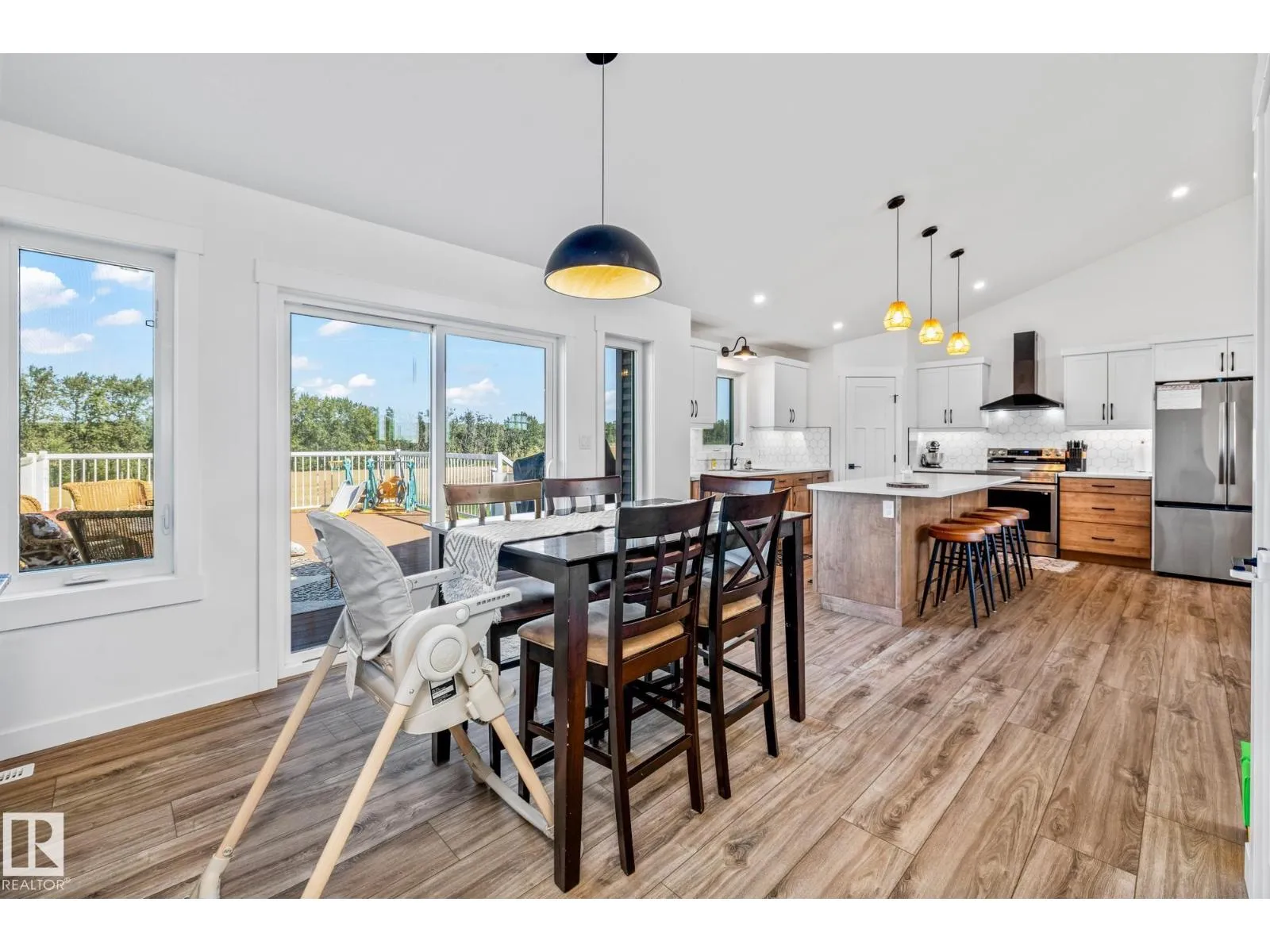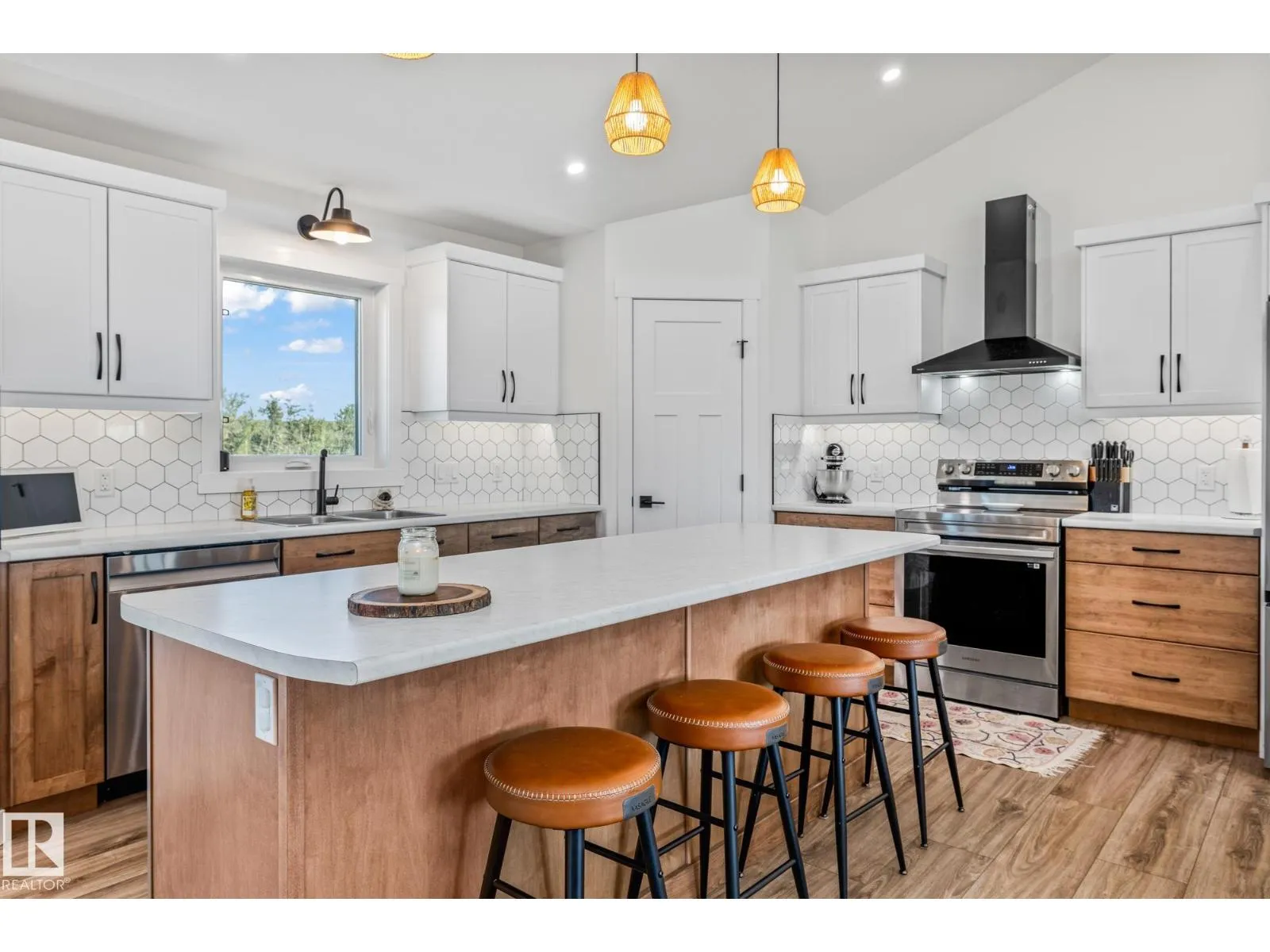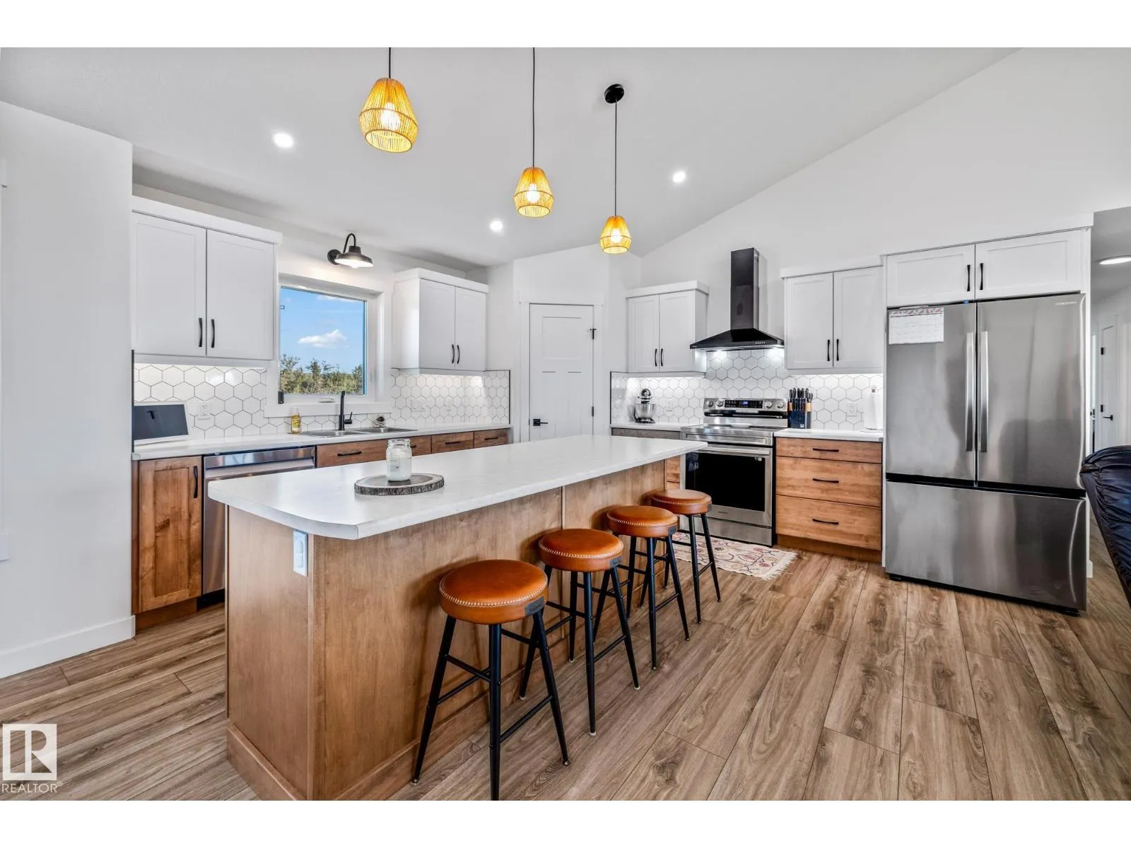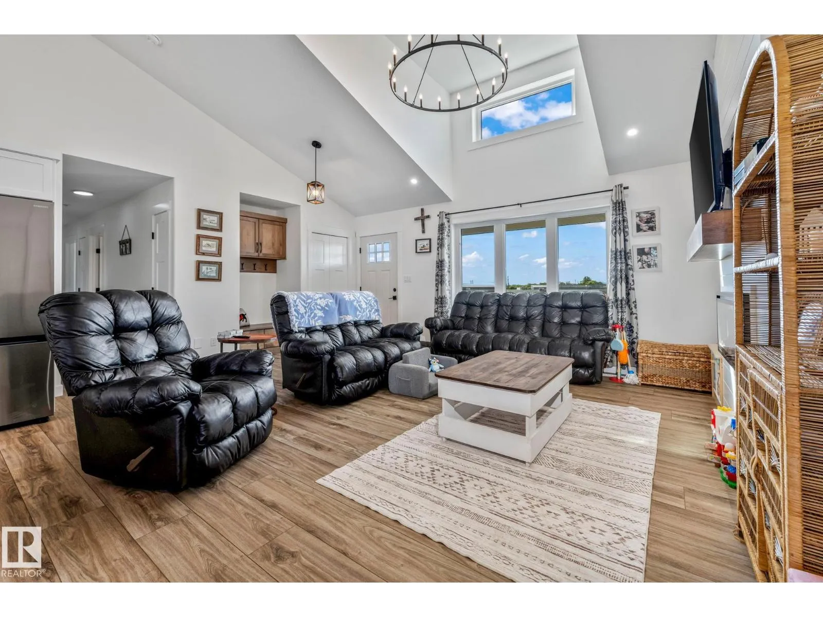 Enjoy peaceful acreage living just minutes from Smoky Lake on this stunning 12.38-acre property featuring a brand new bungalow with soaring vaulted ceilings and an abundance of natural light. This beautifully designed 3 bed, 2.5 bath home offers modern farmhouse charm with a spacious open-concept layout, beautiful countertops, luxury vinyl plank flooring, and a cozy fireplace in the living room. The bright kitchen includes stainless steel appliances, a large island with seating, and sleek two-tone cabinetry. The private primary suite offers a walk-in closet and elegant ensuite. Outside, enjoy wrap-around views of rolling fields, a massive deck, and fully fenced yard space perfect for kids or pets. Ideal for families or anyone looking to enjoy country living with modern comforts. (id:27476)