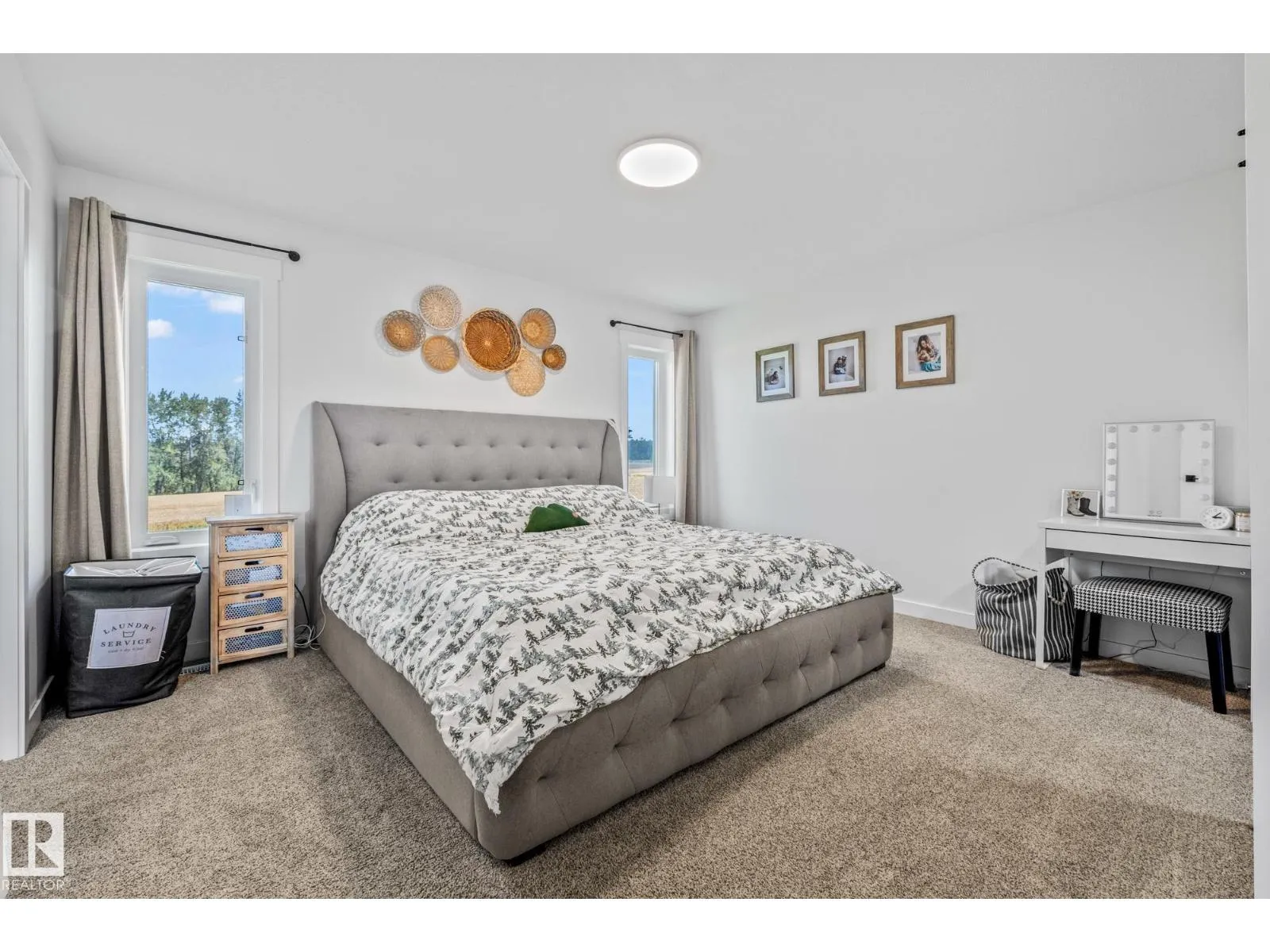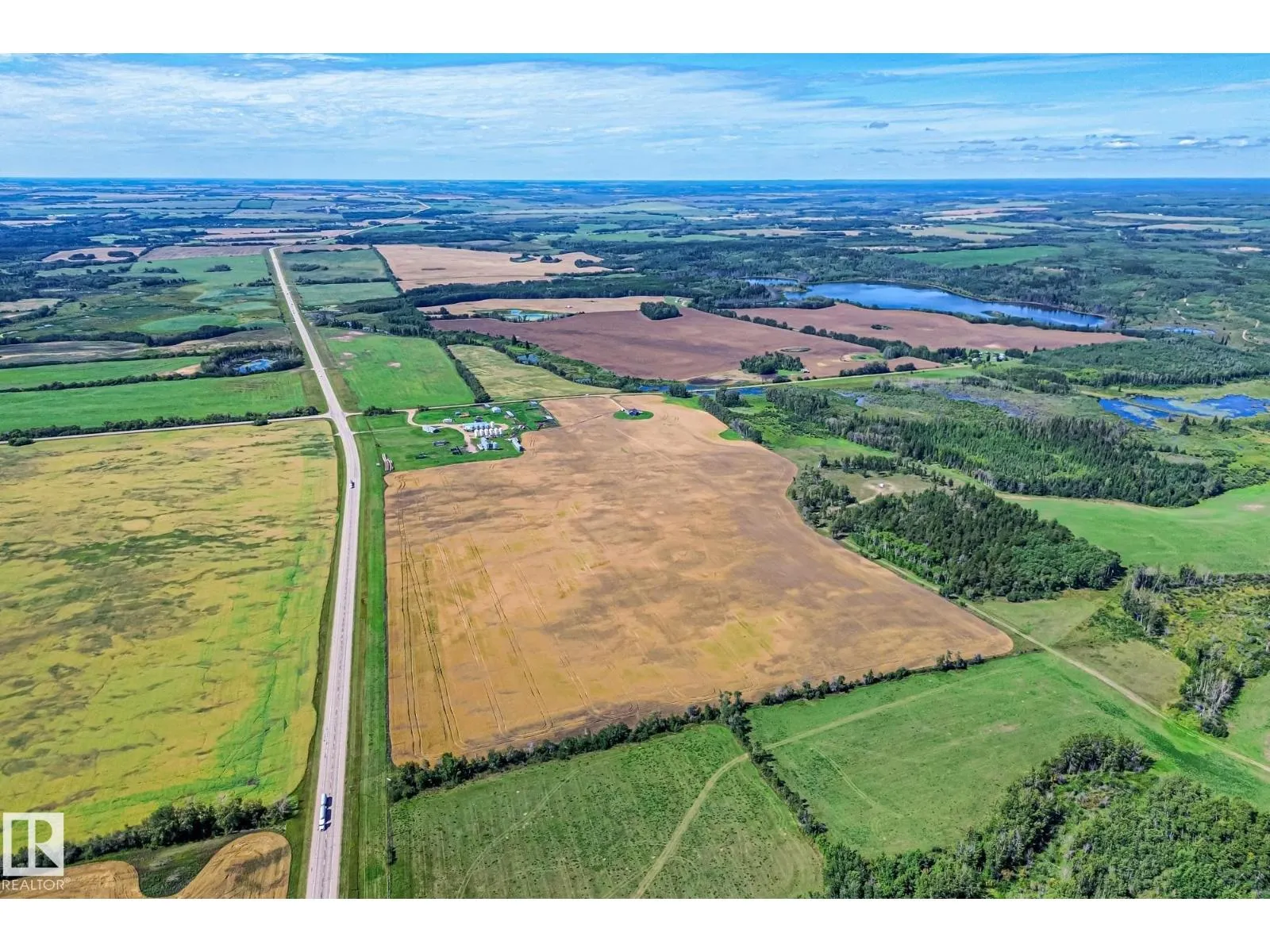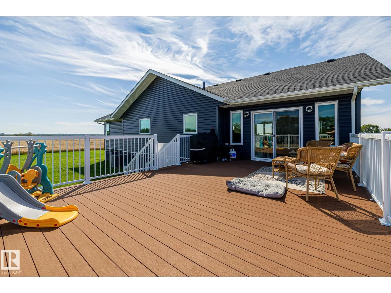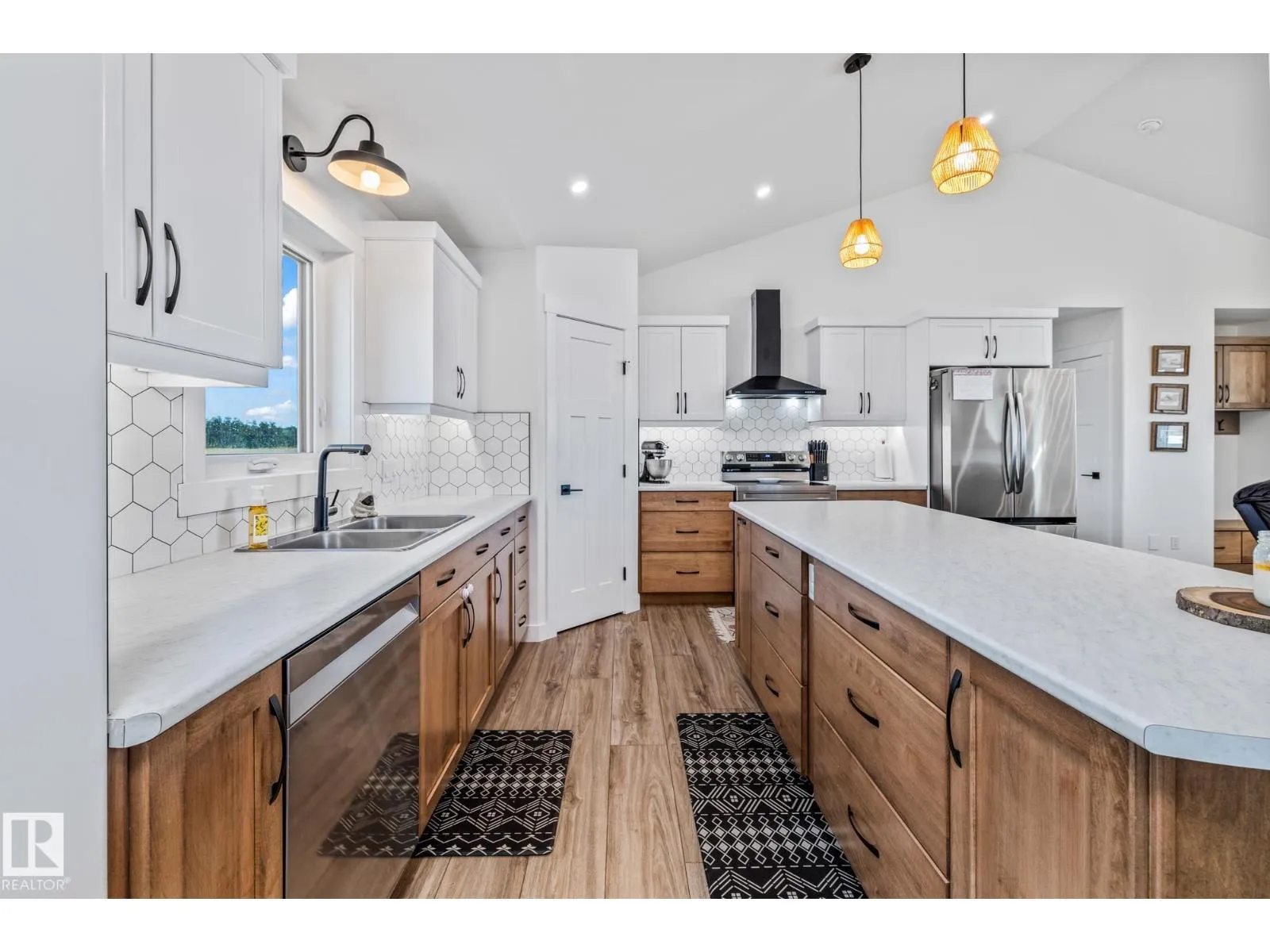Enjoy peaceful acreage living just minutes from Smoky Lake on this stunning 12.38-acre property featuring a brand new bungalow with soaring vaulted ceilings and an abundance of natural light. This beautifully designed 3 bed, 2.5 bath home offers modern farmhouse charm with a spacious open-concept layout, beautiful countertops, luxury vinyl plank flooring, and a cozy fireplace in the living room. The bright kitchen includes stainless steel appliances, a large island with seating, and sleek two-tone cabinetry. The private primary suite offers a walk-in closet and elegant ensuite. Outside, enjoy wrap-around views of rolling fields, a massive deck, and fully fenced yard space perfect for kids or pets. Ideal for families or anyone looking to enjoy country living with modern comforts. (id:27476)