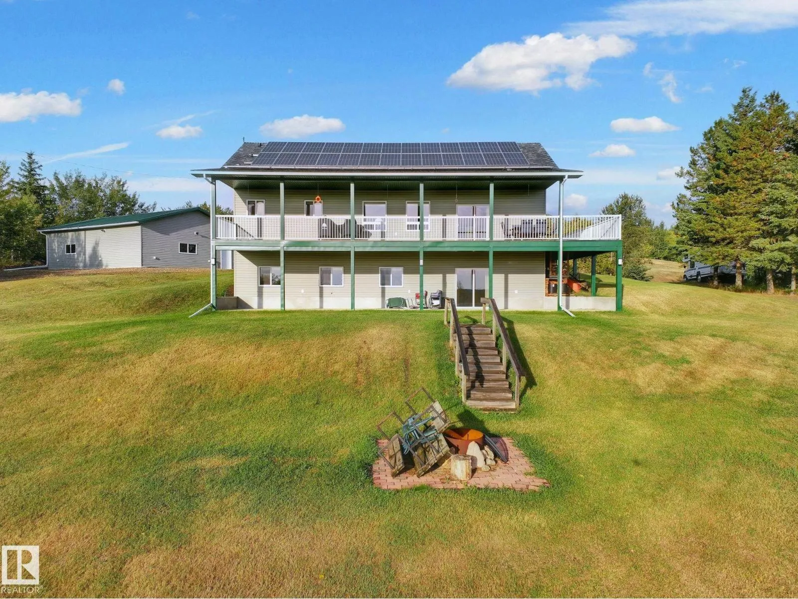 WAKE UP TO YEAR-ROUND LAKE VIEWS! This 1500 SqFt. SOLAR POWERED walkout bungalow is perched on top of a hill, steps from Mons Lake! Walk in, and youâre welcomed by vaulted ceilings, hardwood floors, and stunning lake views, paired with a bright open-concept living, dining, and kitchen area. Built for entertaining, the kitchen features granite countertops, a GAS STOVE, a corner pantry, and a large island. The main floor also features a spacious primary bedroom, 3pc. bath, laundry room, and deck with gas BBQ hook-up; enjoy your morning coffee with a view! Down the stairs, youâll find a large family room, 3 additional bedrooms, and a 2nd full bath. Step outside to find the fully spray foam insulated triple-car garage with 10â doors, 30 Amp service for your RV, and a gas line ready for future heat. This home is quality built with 10â ICF walls in the basement and 8â ICF on the main. You also wonât have to worry about your power bill; the 42/18kw solar panels eliminate your bills with potential for a return! (id:27476)
