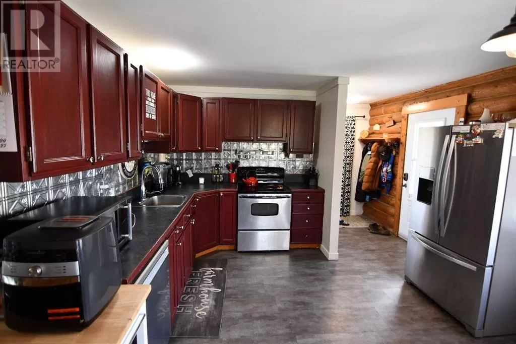 Welcome Home! This property with a 4-bedroom log home located just a few miles from the friendly town of Veteran offers a peaceful and rural lifestyle. This home has seen many upgrades over the years, the latest being new windows and shingles. The yard is well sheltered and with the wood stove, this home screams COZY (Especially at Christmas) Two bedrooms up, large kitchen, two bedrooms down with a large living room makes this home an ideal family home and provides rural living on a friendly budget. (id:27476)