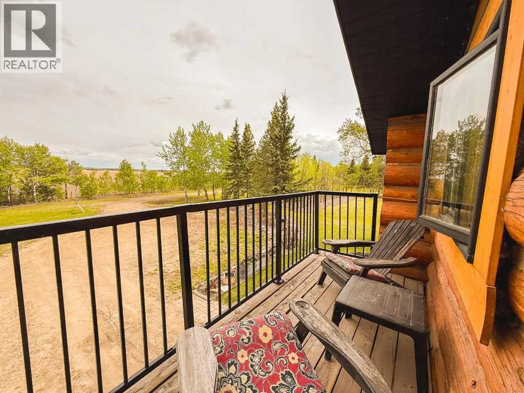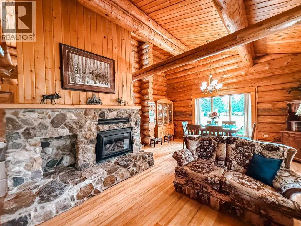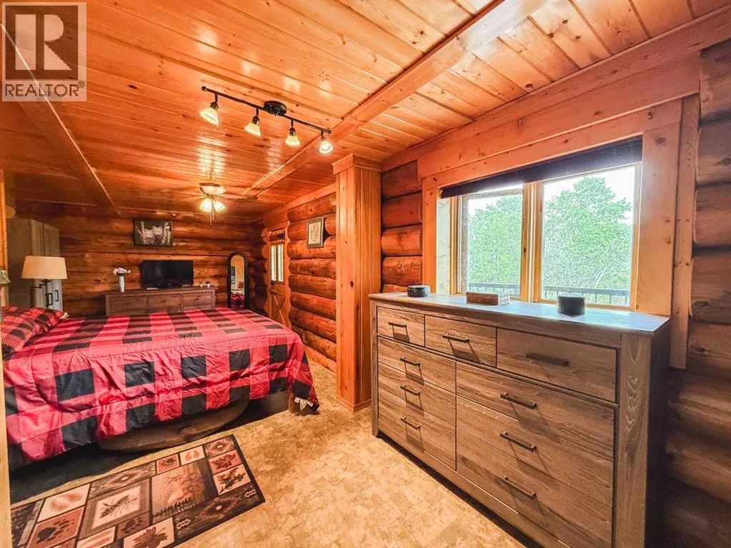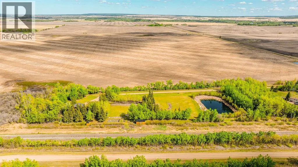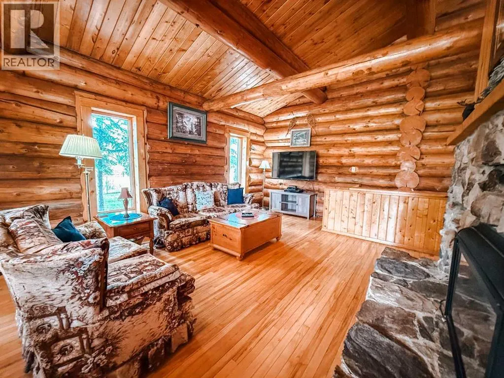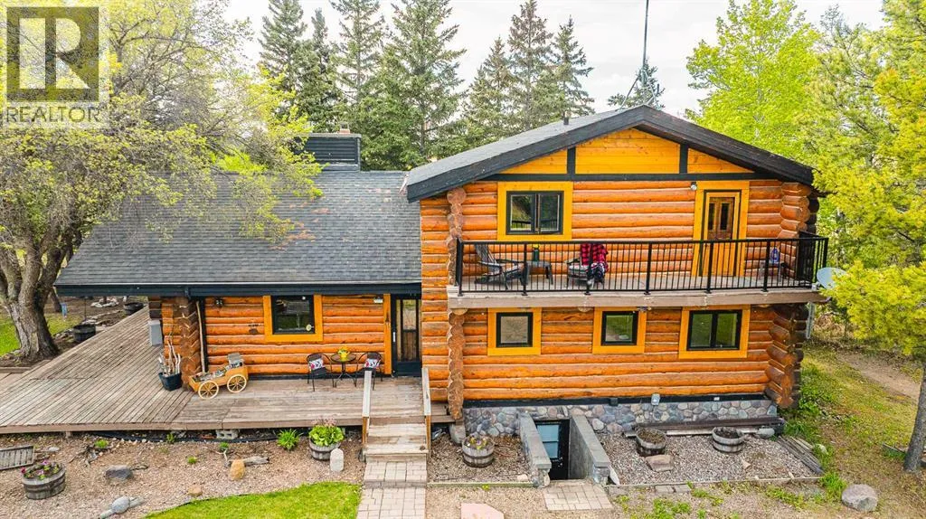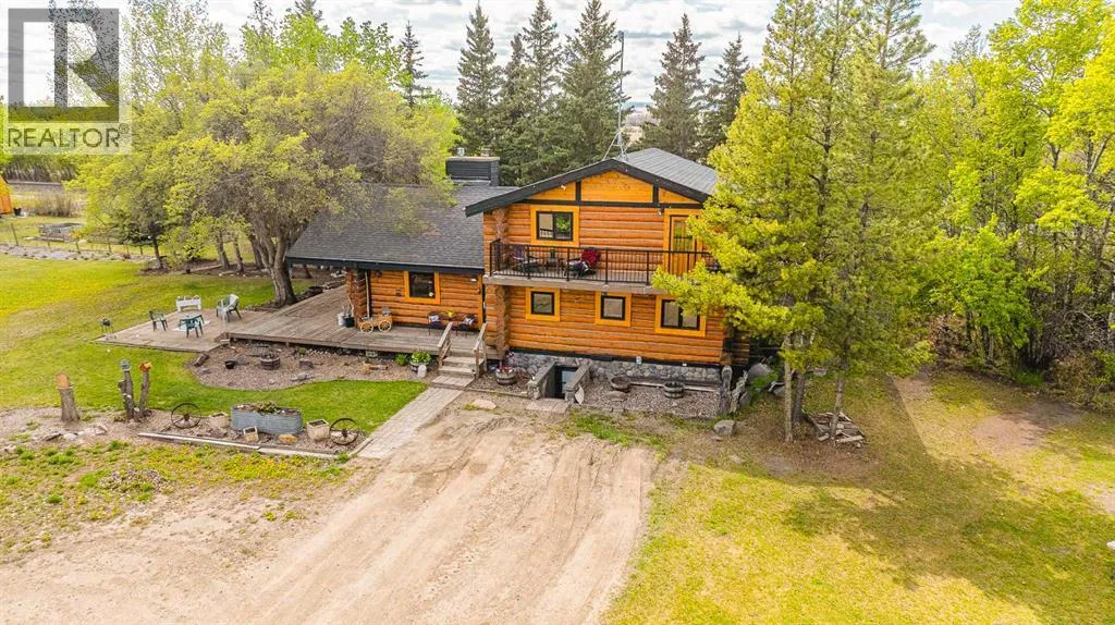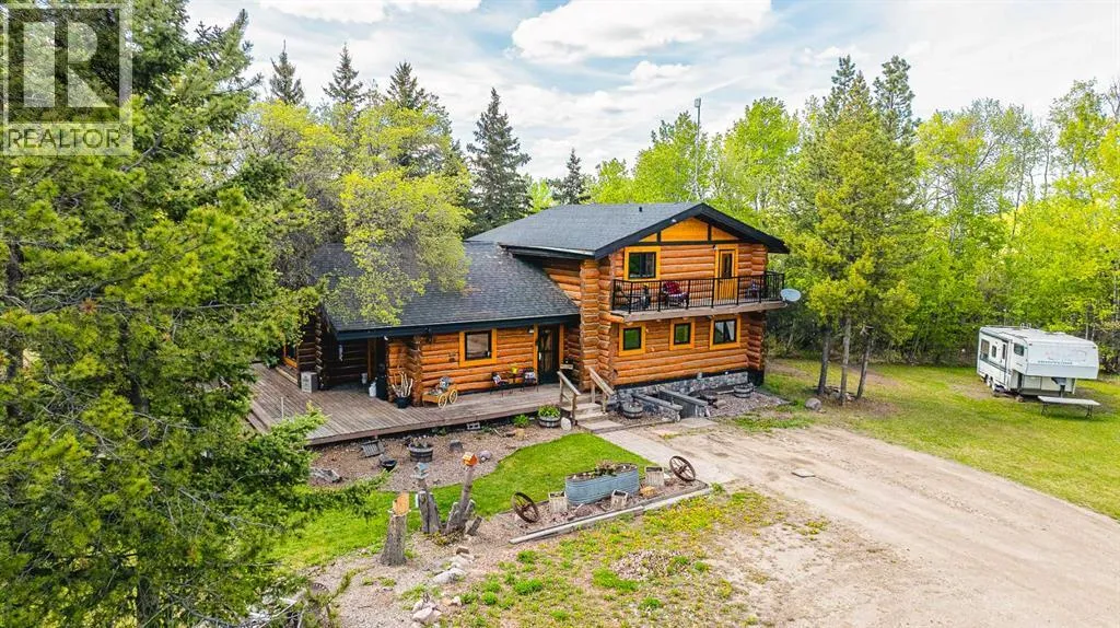 Escape to Timeless Tranquility â Log Home on 7.37 Acres in Silverwood, Alberta, just North of Sexsmith. Some places donât just house youâthey hold you. Tucked at the end of a quiet road, just 35 minutes north of Grande Prairie, 15 min South of Rycroft and only 30 min from North to the Peace River and Dunvegan boat launch. This breathtaking 7.37-acre log home acreage feels like a deep exhale from the world. From the moment you arrive, the scent of pine, the rustle of mature trees, and the stillness of nature wrap around you like a well-worn blanket. This is a home built not just with timber and stoneâbut with soul. Step inside and feel the warmth radiate from hand-hewn logs and rich hardwood floors. Gaze up to soaring vaulted ceilings, then settle in by the grand stone fireplaceâcurrently gas, but ready to return to wood if you crave the crackle of a true fire. The kitchen? Itâs where stories are shared and recipes passed down, with tile counters, gas stove, new dishwasher, and doors that open to a sun-drenched deck where hummingbirds might join you for coffee. There is one bedroom, den/office and 3pc bathroom with soaker tub additionally on the main floor. Upstairs, three more bedrooms await. The primary? It has its own private balconyâa front-row seat to the stars and Northern Lights. Downstairs, a walk-out basement offers a cozy family room, workshop space (WITH 220V X 2), additional bathroom with shower; untapped potential awaits! Outdoors, your own slice of Canadiana unfolds: complete with fenced yard for furry friends, garden boxes for your hands to sink into, family sized fire pit for s'mores and a working pond and dugout that sparkles with life. There's power near the shed and the charm of a small. This isnât just a home. Itâs a retreat, a sanctuary, and a legacy waiting to be written. HE furnace updated in 2019 Furnace, 2020 HWT and Ride on lawn mower included. Potential for property to be fenced for horses. (id:27476)