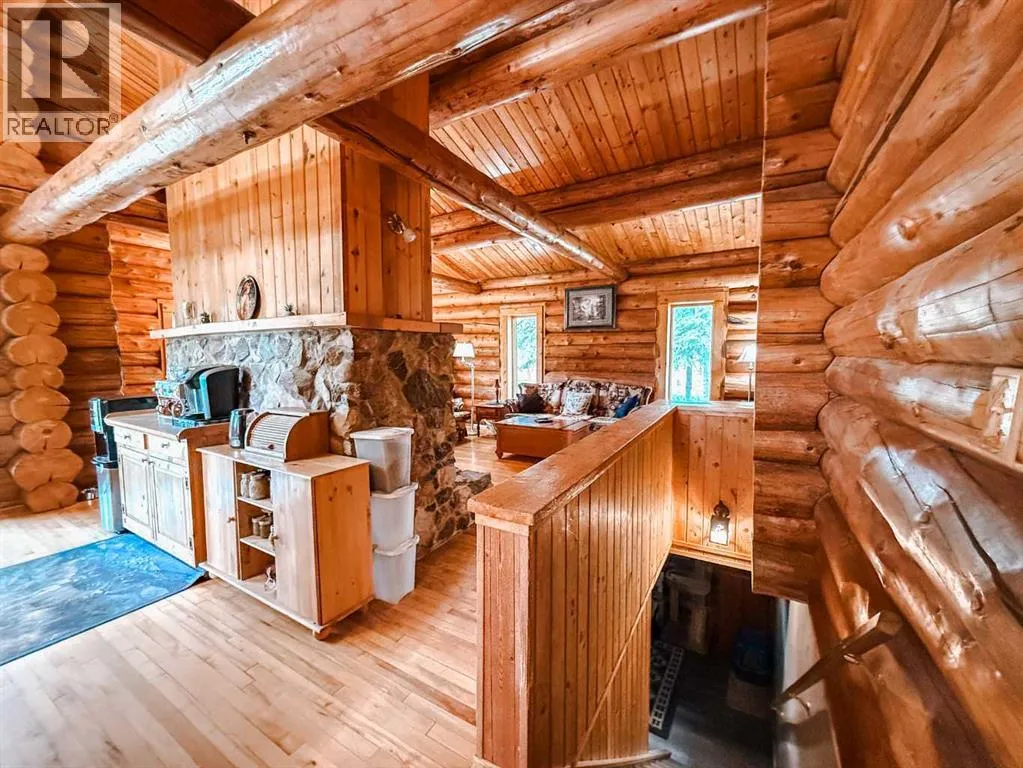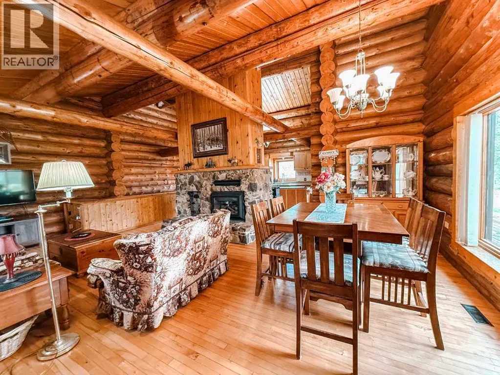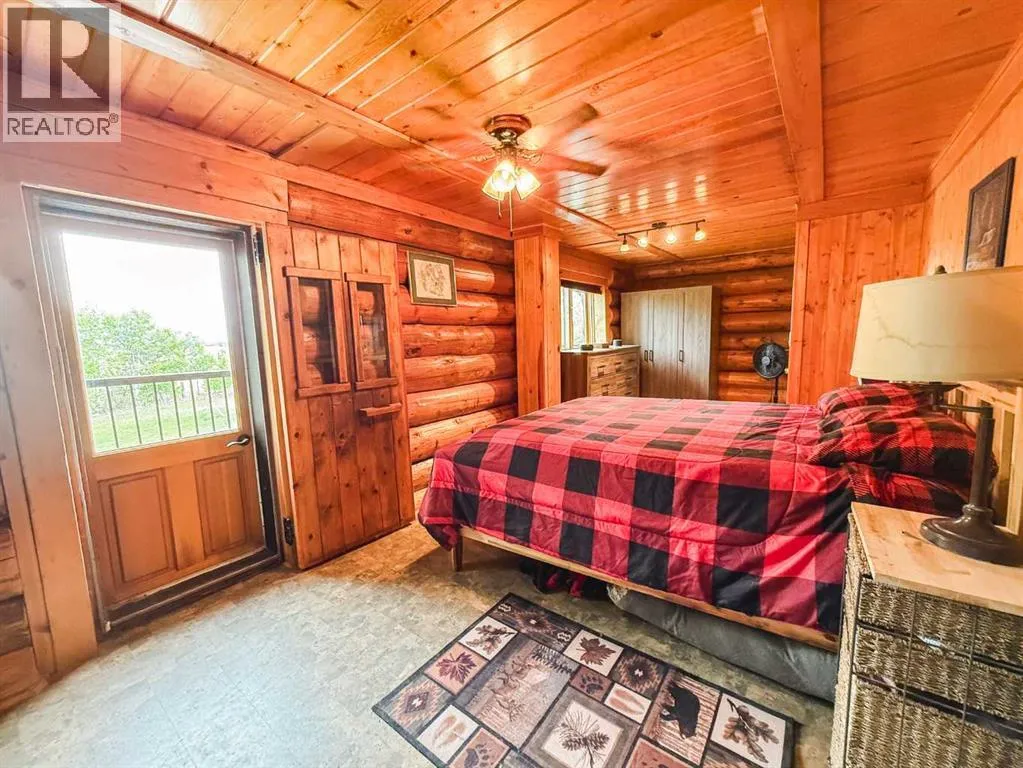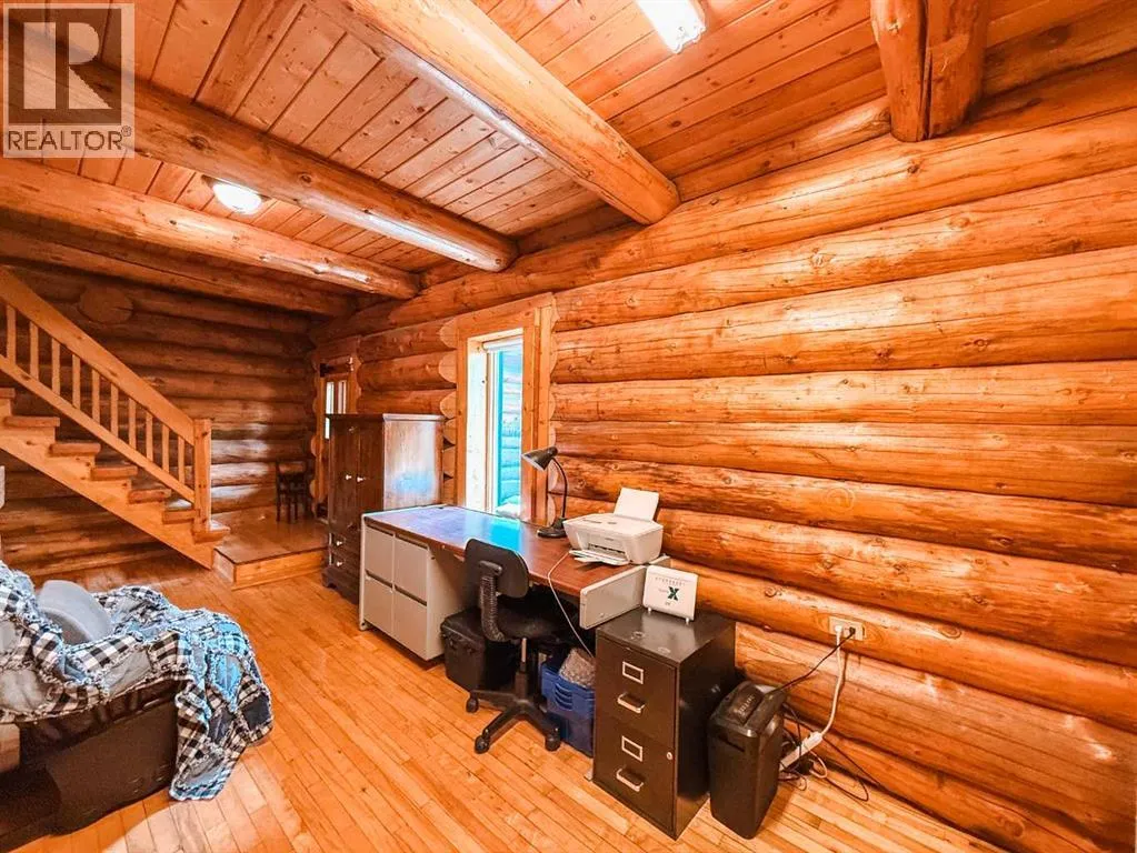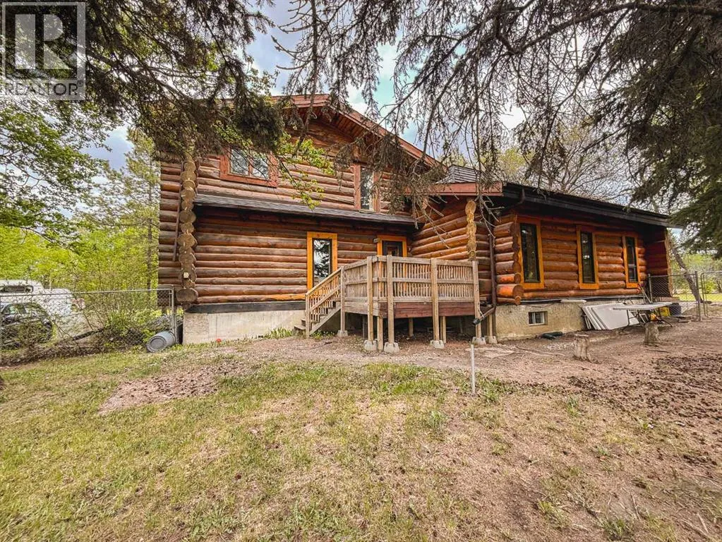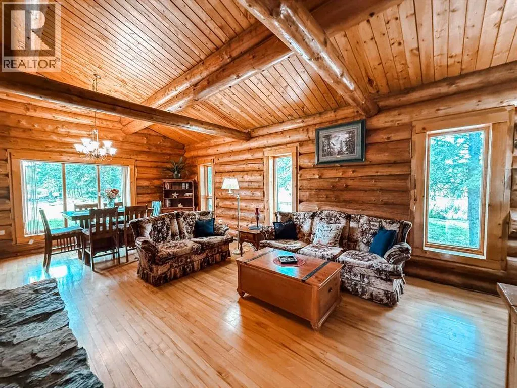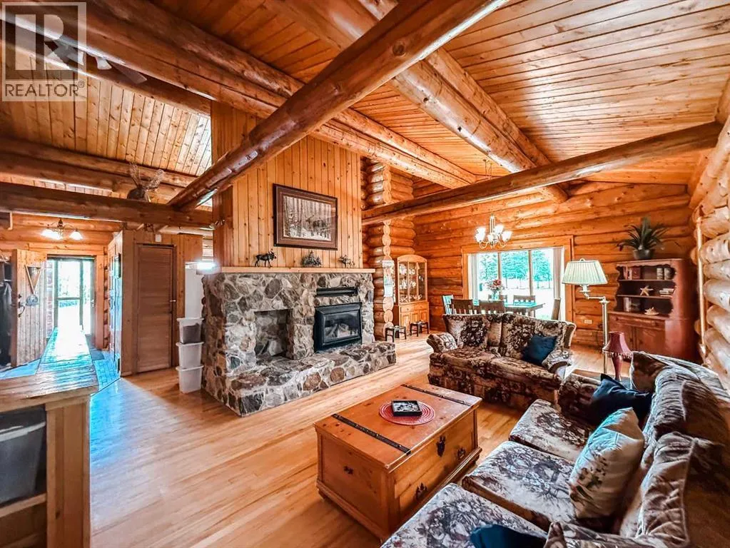 Escape to Timeless Tranquility â Log Home on 7.37 Acres in Silverwood, Alberta, just North of Sexsmith. Some places donât just house youâthey hold you. Tucked at the end of a quiet road, just 35 minutes north of Grande Prairie, 15 min South of Rycroft and only 30 min from North to the Peace River and Dunvegan boat launch. This breathtaking 7.37-acre log home acreage feels like a deep exhale from the world. From the moment you arrive, the scent of pine, the rustle of mature trees, and the stillness of nature wrap around you like a well-worn blanket. This is a home built not just with timber and stoneâbut with soul. Step inside and feel the warmth radiate from hand-hewn logs and rich hardwood floors. Gaze up to soaring vaulted ceilings, then settle in by the grand stone fireplaceâcurrently gas, but ready to return to wood if you crave the crackle of a true fire. The kitchen? Itâs where stories are shared and recipes passed down, with tile counters, gas stove, new dishwasher, and doors that open to a sun-drenched deck where hummingbirds might join you for coffee. There is one bedroom, den/office and 3pc bathroom with soaker tub additionally on the main floor. Upstairs, three more bedrooms await. The primary? It has its own private balconyâa front-row seat to the stars and Northern Lights. Downstairs, a walk-out basement offers a cozy family room, workshop space (WITH 220V X 2), additional bathroom with shower; untapped potential awaits! Outdoors, your own slice of Canadiana unfolds: complete with fenced yard for furry friends, garden boxes for your hands to sink into, family sized fire pit for s'mores and a working pond and dugout that sparkles with life. There's power near the shed and the charm of a small. This isnât just a home. Itâs a retreat, a sanctuary, and a legacy waiting to be written. HE furnace updated in 2019 Furnace, 2020 HWT and Ride on lawn mower included. Potential for property to be fenced for horses. (id:27476)