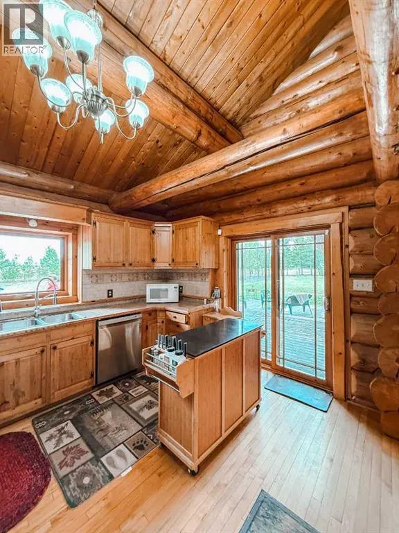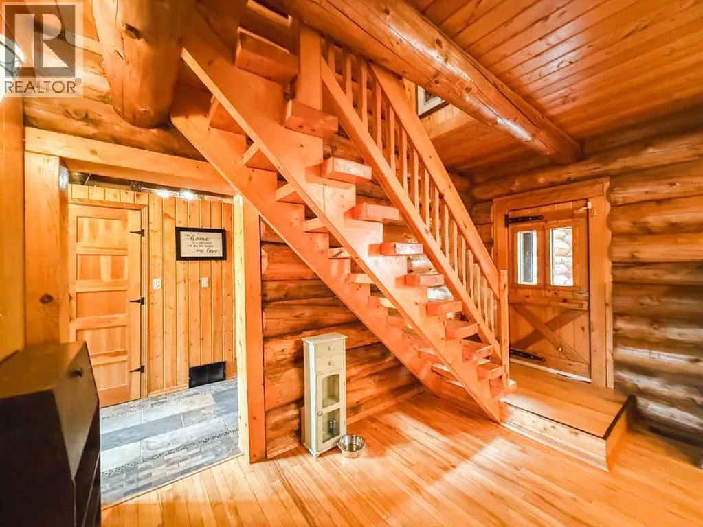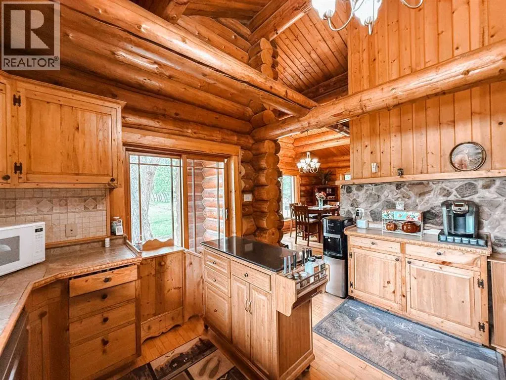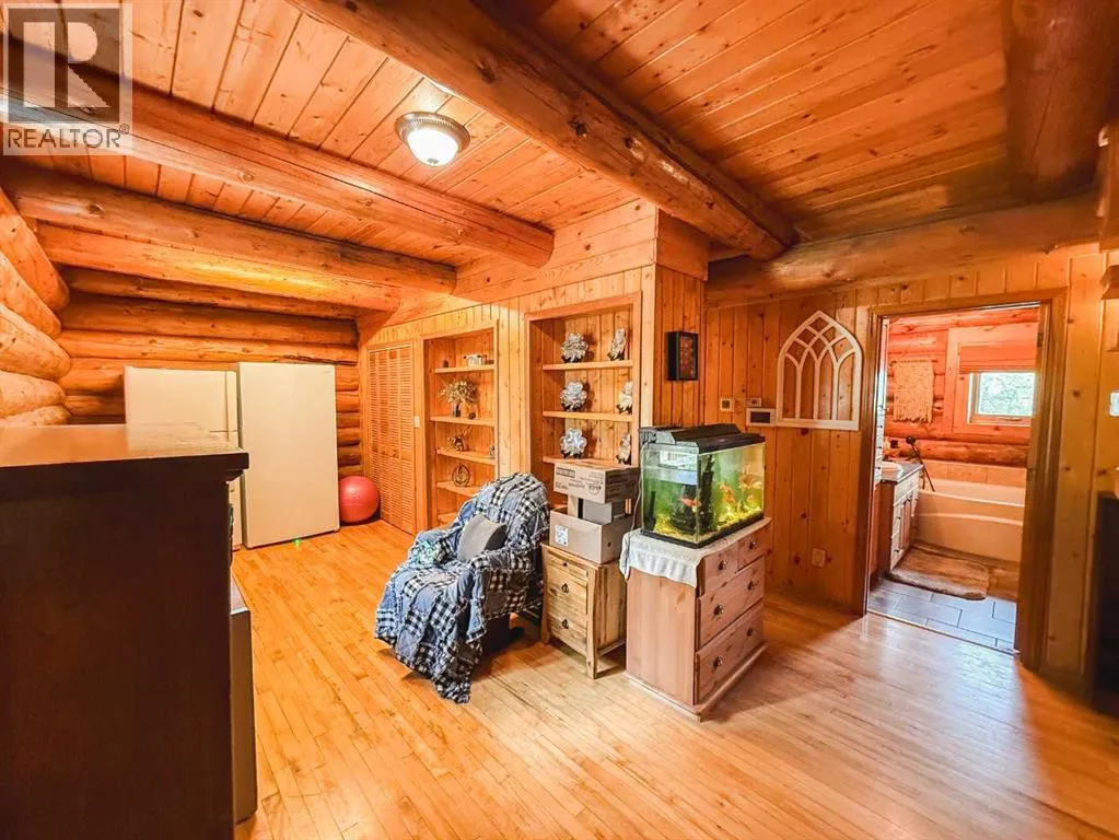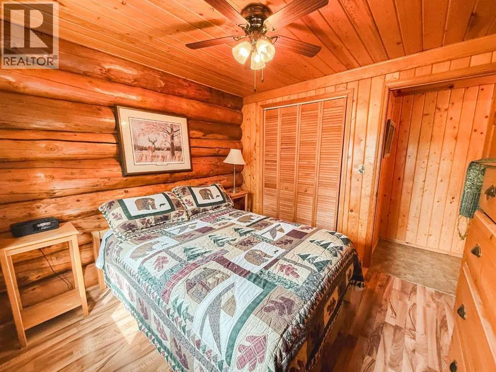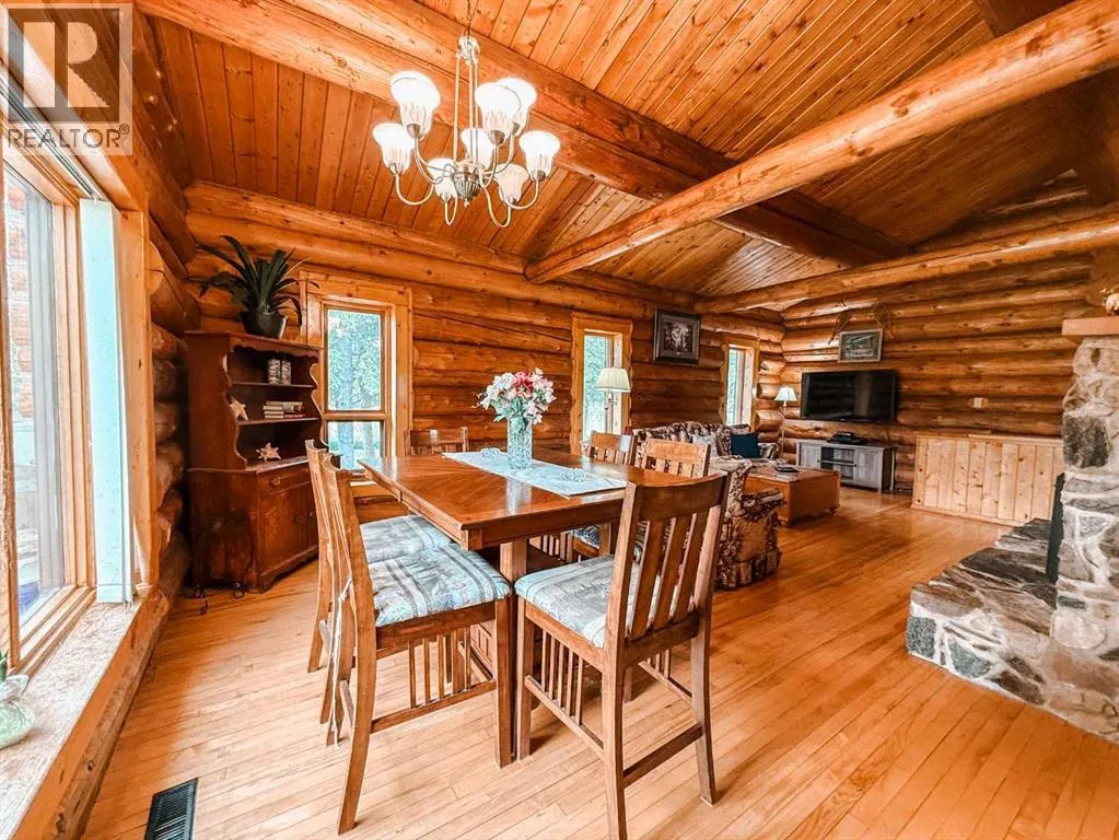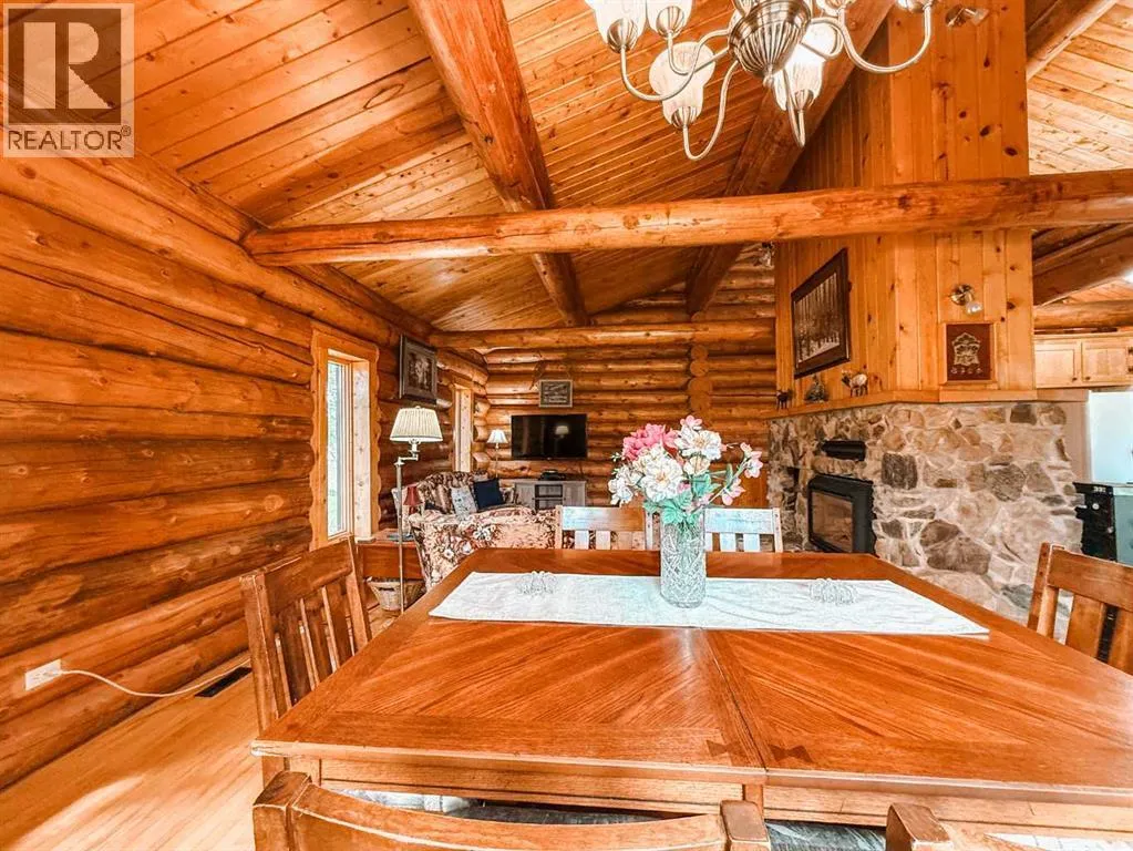 Escape to Timeless Tranquility â Log Home on 7.37 Acres in Silverwood, Alberta, just North of Sexsmith. Some places donât just house youâthey hold you. Tucked at the end of a quiet road, just 35 minutes north of Grande Prairie, 15 min South of Rycroft and only 30 min from North to the Peace River and Dunvegan boat launch. This breathtaking 7.37-acre log home acreage feels like a deep exhale from the world. From the moment you arrive, the scent of pine, the rustle of mature trees, and the stillness of nature wrap around you like a well-worn blanket. This is a home built not just with timber and stoneâbut with soul. Step inside and feel the warmth radiate from hand-hewn logs and rich hardwood floors. Gaze up to soaring vaulted ceilings, then settle in by the grand stone fireplaceâcurrently gas, but ready to return to wood if you crave the crackle of a true fire. The kitchen? Itâs where stories are shared and recipes passed down, with tile counters, gas stove, new dishwasher, and doors that open to a sun-drenched deck where hummingbirds might join you for coffee. There is one bedroom, den/office and 3pc bathroom with soaker tub additionally on the main floor. Upstairs, three more bedrooms await. The primary? It has its own private balconyâa front-row seat to the stars and Northern Lights. Downstairs, a walk-out basement offers a cozy family room, workshop space (WITH 220V X 2), additional bathroom with shower; untapped potential awaits! Outdoors, your own slice of Canadiana unfolds: complete with fenced yard for furry friends, garden boxes for your hands to sink into, family sized fire pit for s'mores and a working pond and dugout that sparkles with life. There's power near the shed and the charm of a small. This isnât just a home. Itâs a retreat, a sanctuary, and a legacy waiting to be written. HE furnace updated in 2019 Furnace, 2020 HWT and Ride on lawn mower included. Potential for property to be fenced for horses. (id:27476)