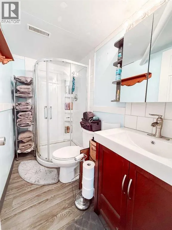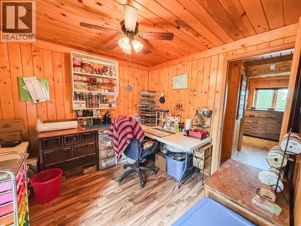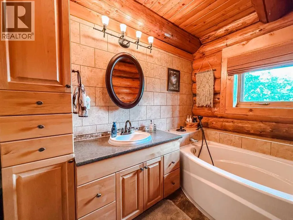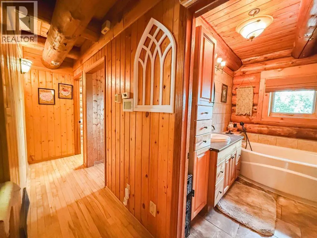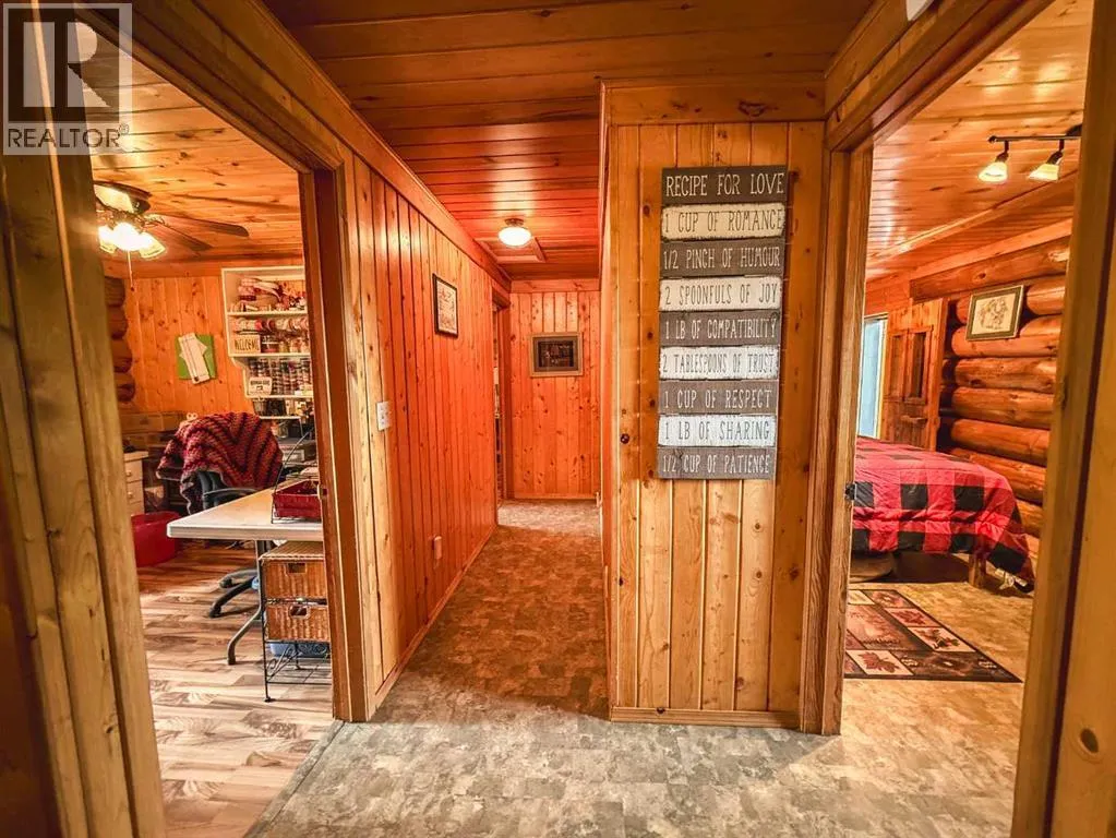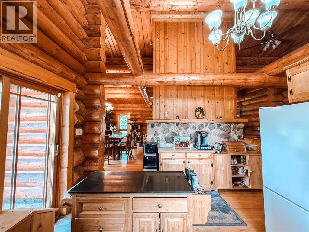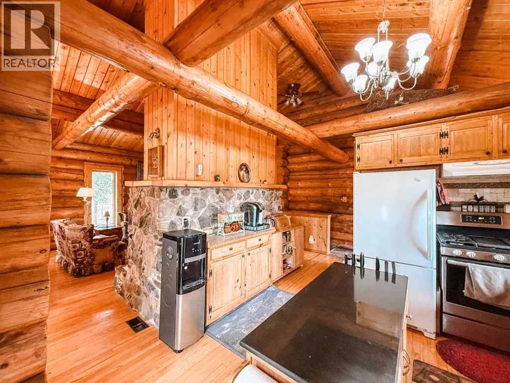 Escape to Timeless Tranquility â Log Home on 7.37 Acres in Silverwood, Alberta, just North of Sexsmith. Some places donât just house youâthey hold you. Tucked at the end of a quiet road, just 35 minutes north of Grande Prairie, 15 min South of Rycroft and only 30 min from North to the Peace River and Dunvegan boat launch. This breathtaking 7.37-acre log home acreage feels like a deep exhale from the world. From the moment you arrive, the scent of pine, the rustle of mature trees, and the stillness of nature wrap around you like a well-worn blanket. This is a home built not just with timber and stoneâbut with soul. Step inside and feel the warmth radiate from hand-hewn logs and rich hardwood floors. Gaze up to soaring vaulted ceilings, then settle in by the grand stone fireplaceâcurrently gas, but ready to return to wood if you crave the crackle of a true fire. The kitchen? Itâs where stories are shared and recipes passed down, with tile counters, gas stove, new dishwasher, and doors that open to a sun-drenched deck where hummingbirds might join you for coffee. There is one bedroom, den/office and 3pc bathroom with soaker tub additionally on the main floor. Upstairs, three more bedrooms await. The primary? It has its own private balconyâa front-row seat to the stars and Northern Lights. Downstairs, a walk-out basement offers a cozy family room, workshop space (WITH 220V X 2), additional bathroom with shower; untapped potential awaits! Outdoors, your own slice of Canadiana unfolds: complete with fenced yard for furry friends, garden boxes for your hands to sink into, family sized fire pit for s'mores and a working pond and dugout that sparkles with life. There's power near the shed and the charm of a small. This isnât just a home. Itâs a retreat, a sanctuary, and a legacy waiting to be written. HE furnace updated in 2019 Furnace, 2020 HWT and Ride on lawn mower included. Potential for property to be fenced for horses. (id:27476)