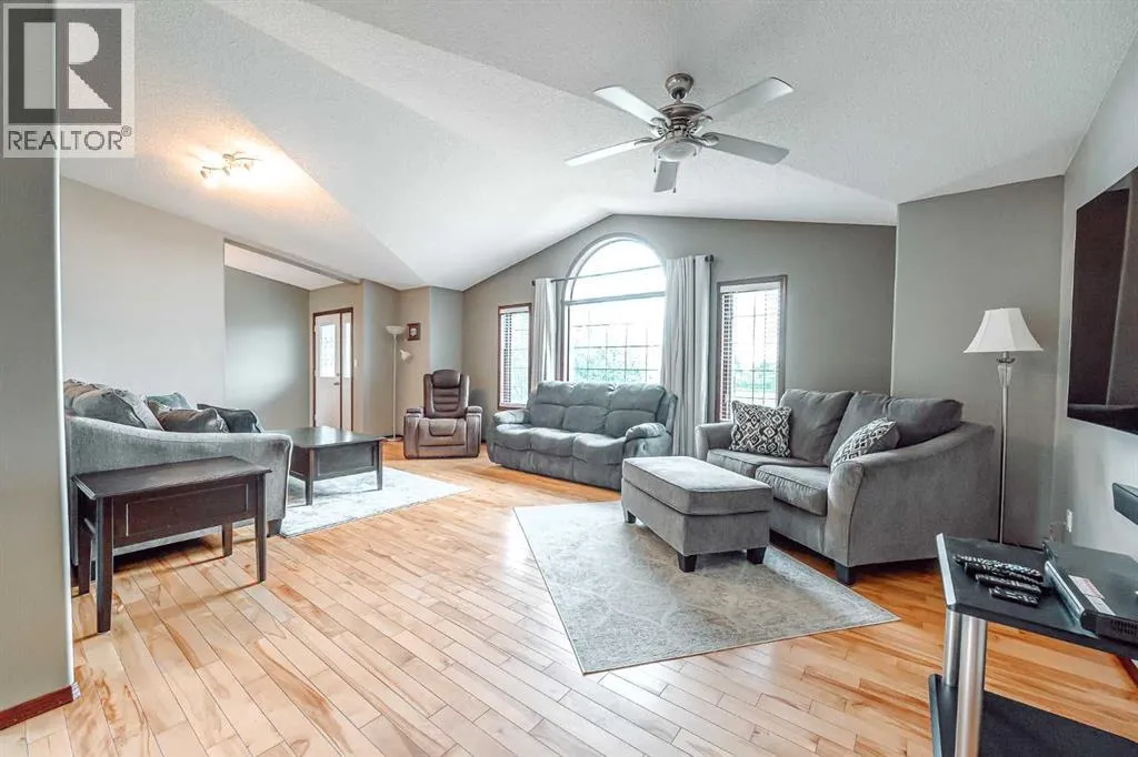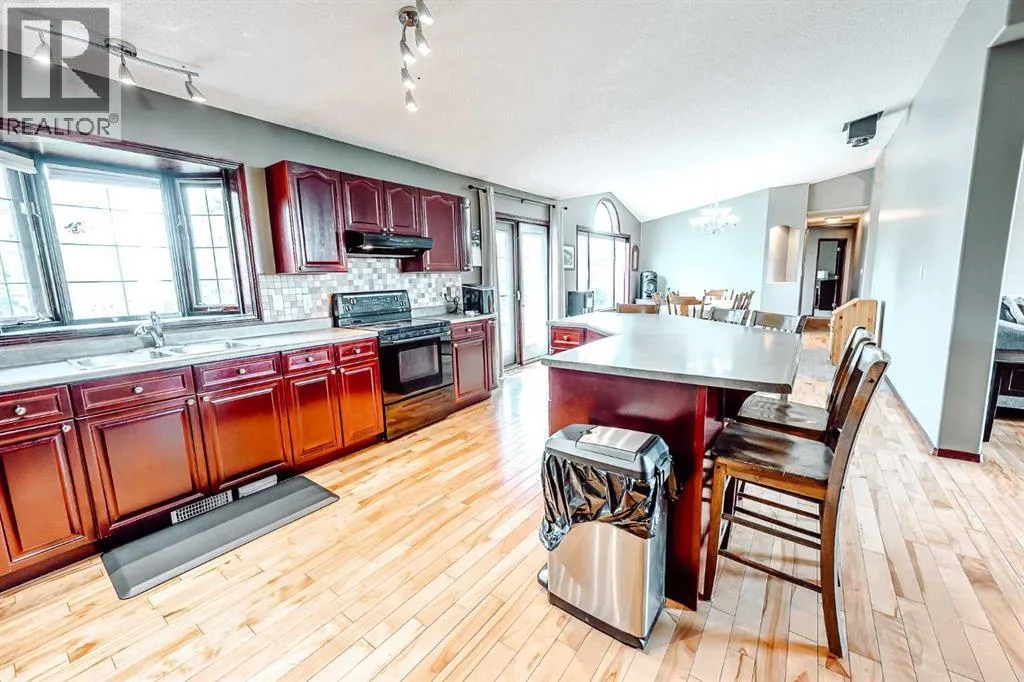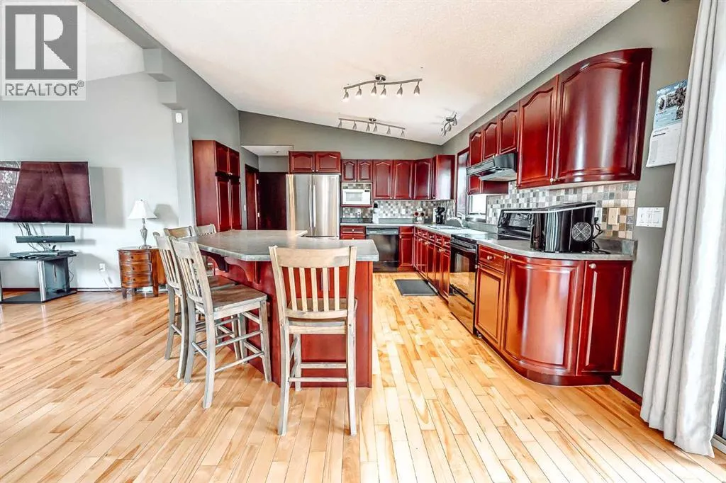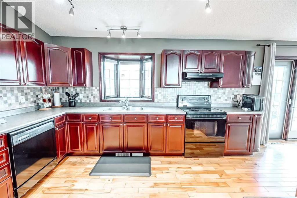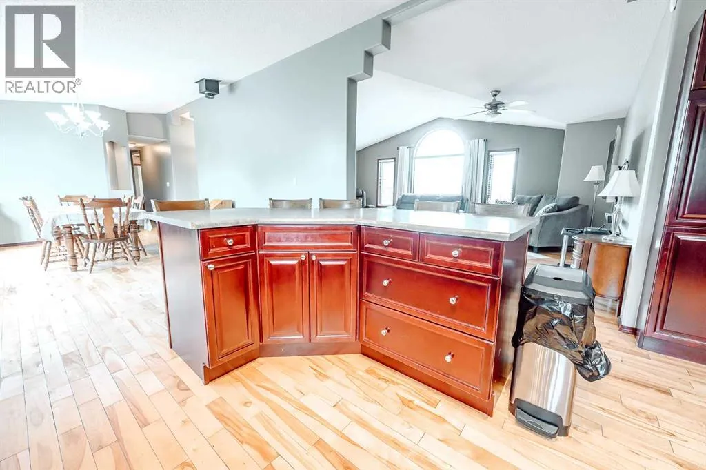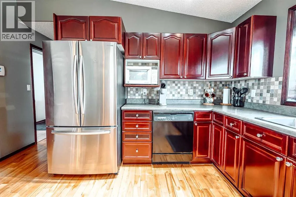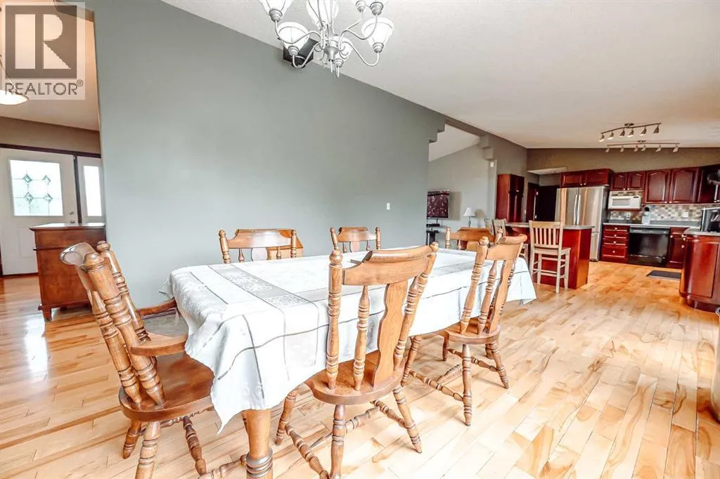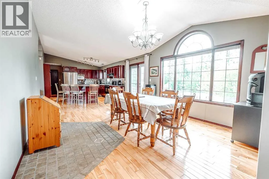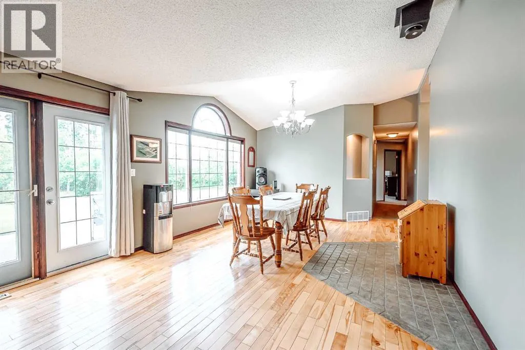 Nestled on 24 serene acres just a stoneâs throw or a few minutes from Rycroftâthis striking 5-bedroom, 3-bathroom bungalow with a finished basement blends graceful countryside living with thoughtful modern touches. Vaulted ceilings, bay windows and an open-concept design define the heart of the home, where a chefâs kitchen, outfitted with rich cherry oak cabinetry, black and stainless steel appliances, and a cozy eat-up bar, flows seamlessly into a dining area spacious enough for memorable family gatherings (fitted for wood stove also). French doors open onto a deck with a natural gas BBQ hookupâperfect for summer celebrations against a backdrop of tall trees, a fire pit, and lush hay fields. The tranquil primary suite offers private morning escapes with its own deck, walk-in closet, and a spa-like ensuite featuring a corner jetted tub and separate shower and ceramic tile flooring. At the other end of the home, a large boot room and conveniently located main-floor laundry serve the household well, and a three-piece washroom off the back entrance keeps mudroom traffic flowing. Downstairs, discover a versatile space with its own entranceâideal for conversion into a rental suite or in-law accommodation. It includes an entertainment room, two additional bedrooms, a spacious foyer, and plenty of unfinished storage space thatâs prepped and plumbed for another bathroomâoffering endless potential. Practical updates include a brand-new high-efficiency furnace (2025), Culligan water treatment system, in-floor heating in basement, and shingles replaced in 2021. The property is currently on gravel roads, with paving slated for the near future. Located roughly 45 minutes from Grande Prairie, this home sits amidst agricultural landscapes and minutes from essential and enriching amenities in nearby Spirit River and Rycroft. Book your private showing today! (id:27476)