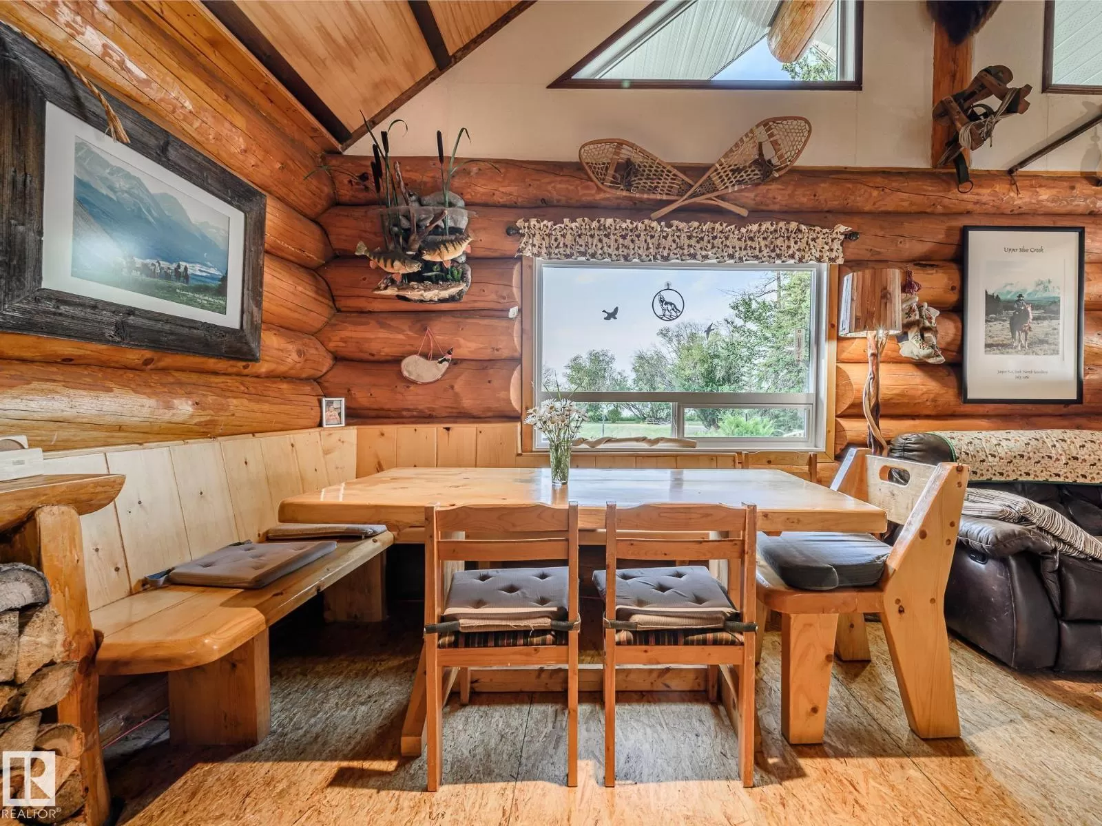 Kehiwin Lake Ranch, a beautiful 42 acres with an abundance of trees, a quarter acre of meadow that produce's hay, over 3000 feet of private waterfront, right to the water! Only once in a lifetime does something like this come available. Be the owner of the ONLY lakefront home on this lake. A dream for any outdoorsman, this land is home to deer, moose, bear, elk and many more beautiful animals. Kehiwin Lake is spring fed, you'll enjoy fishing for Jack, Perch, Walleye and white fish right out your front door. The countryside surrounding this property is breathtaking, with rolling hills and thick forest. The log home is built on a 10 reinforced concrete slab, covered in breathtaking timbers, features custom hand crafted handles, railings, tables, chairs and more. Enjoy a large upper primary bedroom, main floor second bedroom, high efficient wood stove with thermostat capability, wood finished floors, a three piece washroom and a beautiful view of the lake. This is the real meaning of ONE OF A KIND! (id:27476)