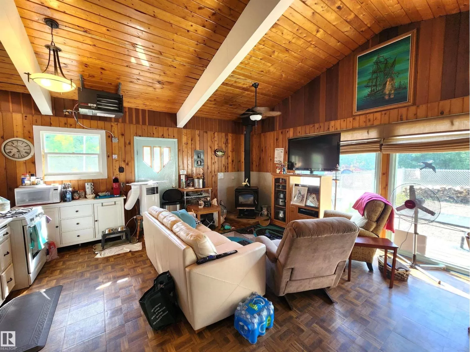 Charming 3 bedroom LAKEFRONT CABIN on Lower Mann Lake with vaulted ceilings and numerous updates, including a NEW HOT WATER TANK, PRESSURE TANK, METAL ROOF, WINDOWS, AND UPDATED BATHROOM. This property is fully furnished and offers a fenced yard, fire pit area, and large covered deck, making it ideal for outdoor enjoyment. Utilities include a private well (rare in the area), a 1,000-gallon septic holding tank, plus both a wood stove and propane forced-air furnace for heating. The adjacent vacant waterfront lot E4454317(listed for $25,000) is also available, with the sellers preferring to sell both together. Located about 2 hours from Edmonton and near the Iron Horse Trail, this cabin makes the perfect lakefront getaway. (id:27476)